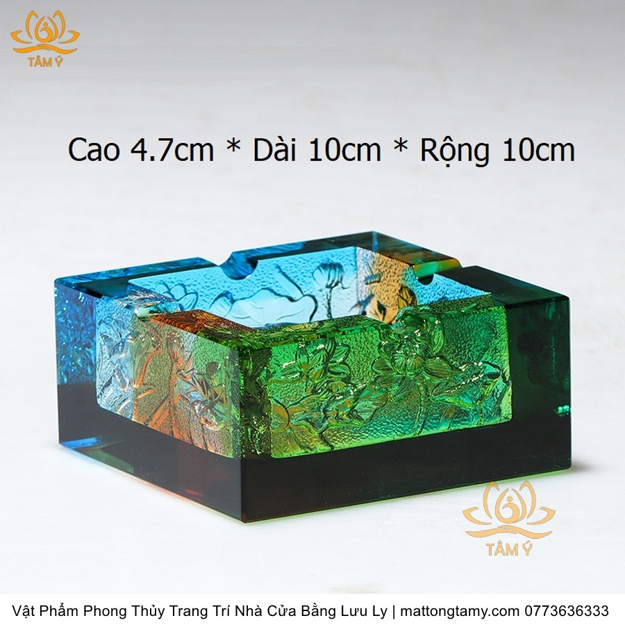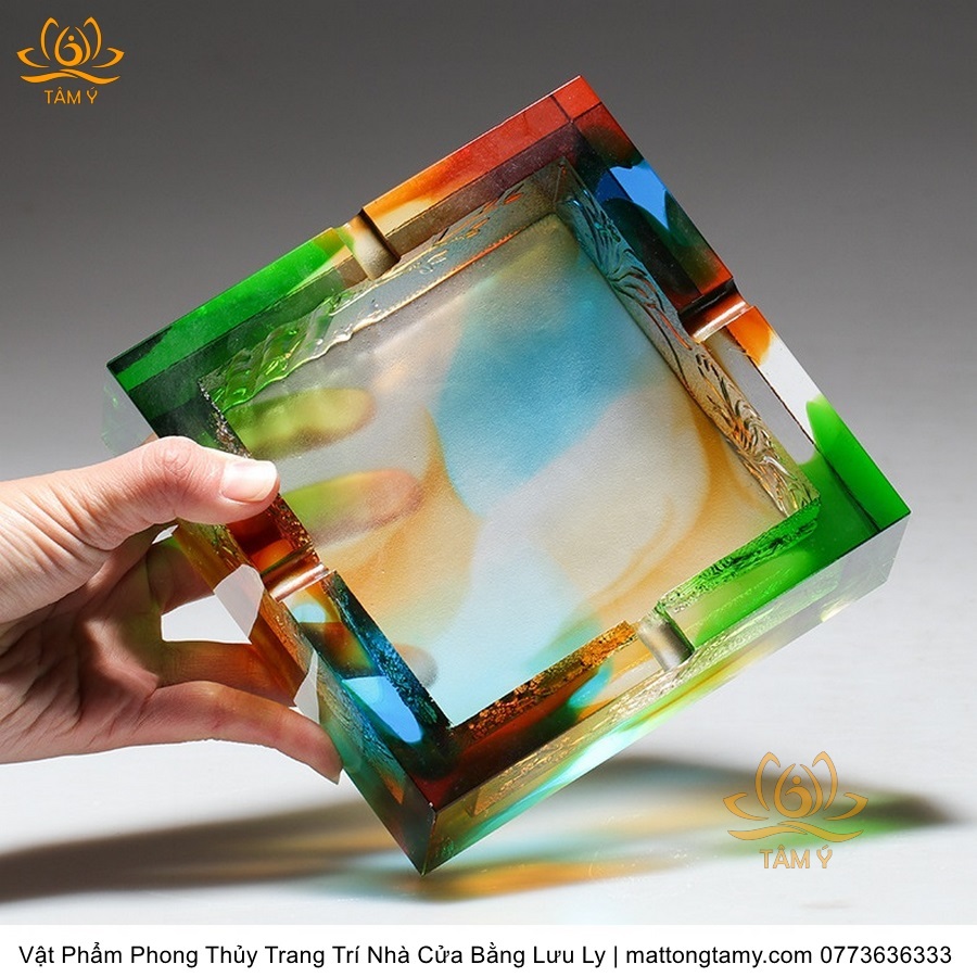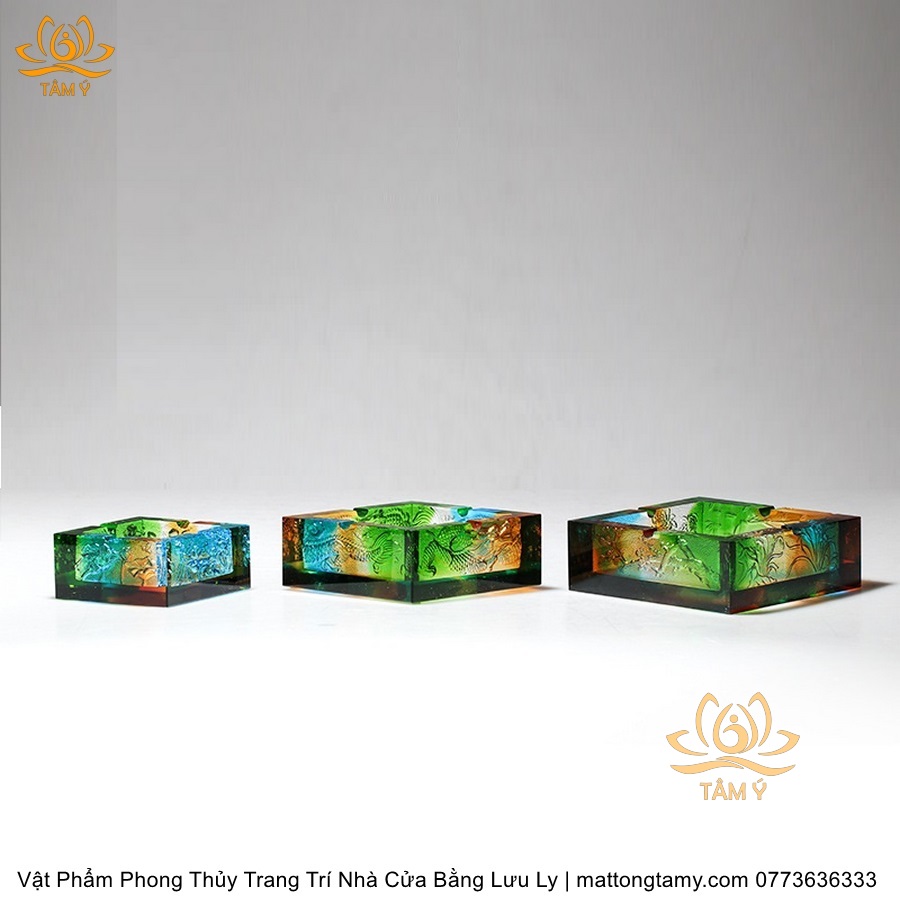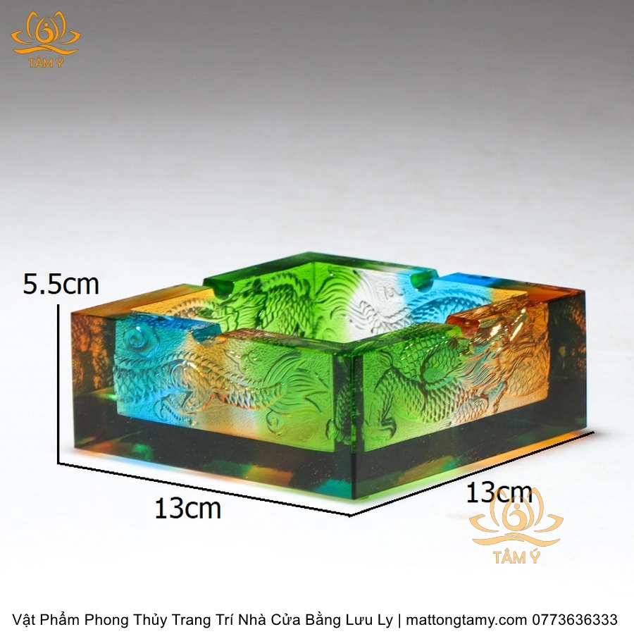 Gạt Tàn Hình Vuông Khắc Chìm Hình Con Rồng Bằng Lưu Ly Cao Cấp Trang Trí Nhà Cửa Vật Phẩm Phong Thủy DTT244