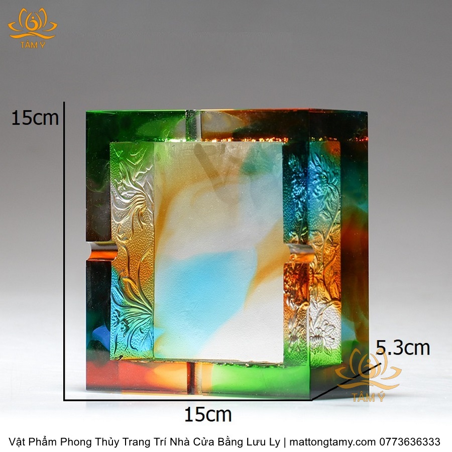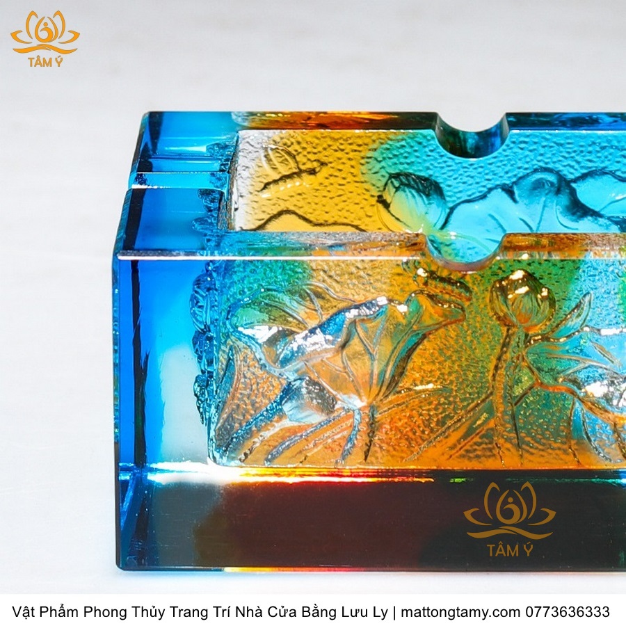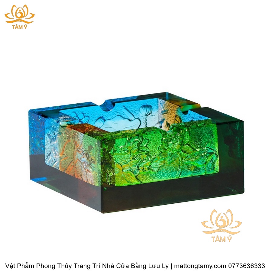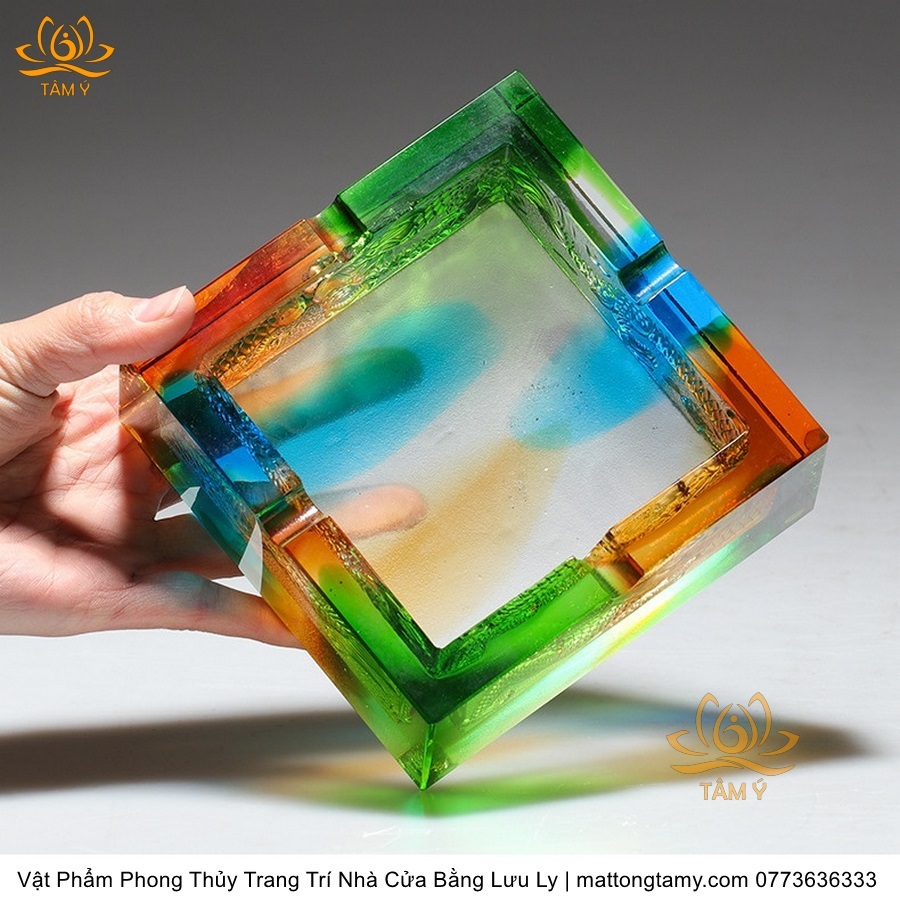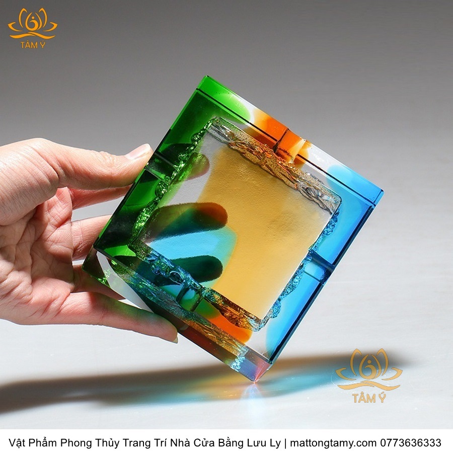 Gạt Tàn Hình Vuông Khắc Chìm Hình Con Rồng Bằng Lưu Ly Cao Cấp Trang Trí Nhà Cửa Vật Phẩm Phong Thủy DTT244