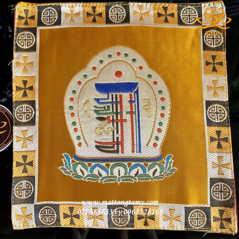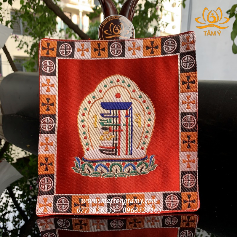 Tâm Ý xin giới thiệu: Khăn Gấm Biểu Tượng Kalachakra (Thập Tự Tại) (Thời Luân Kim Cang) 22x22cm