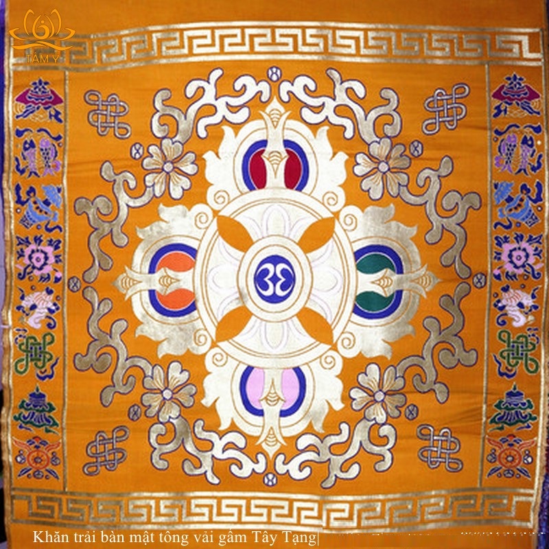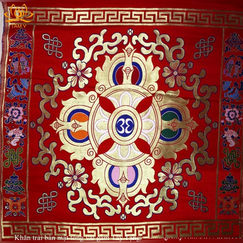 Khăn trải bàn chày kim cang bát cát tường rất đẹp Mật Tông vải gấm Tây Tạng nhiều kích thước có lớp lót vải lụa KTB02