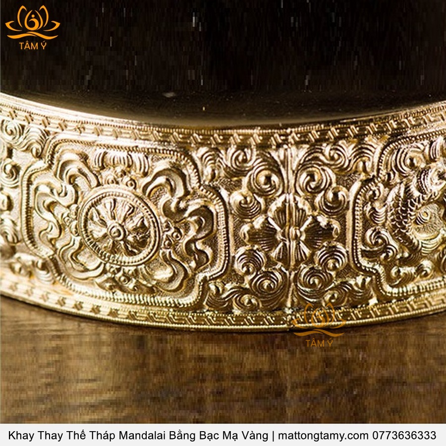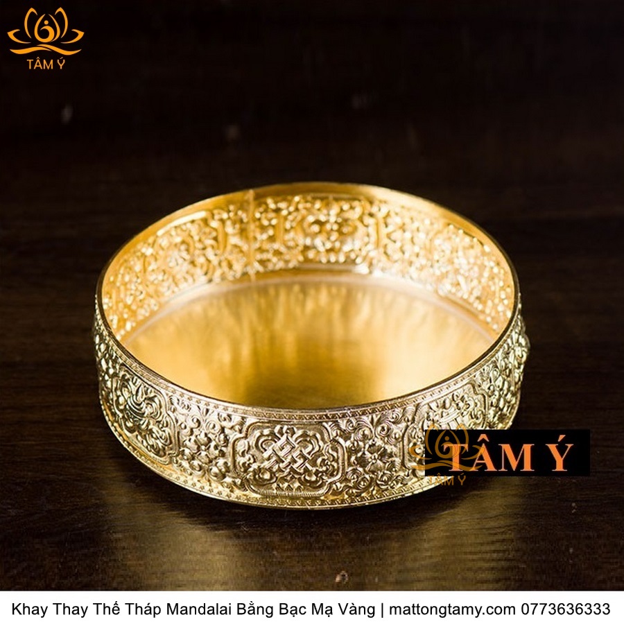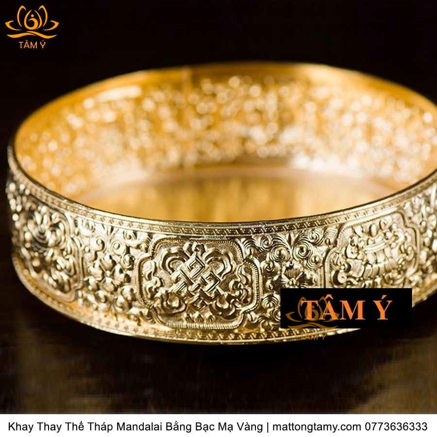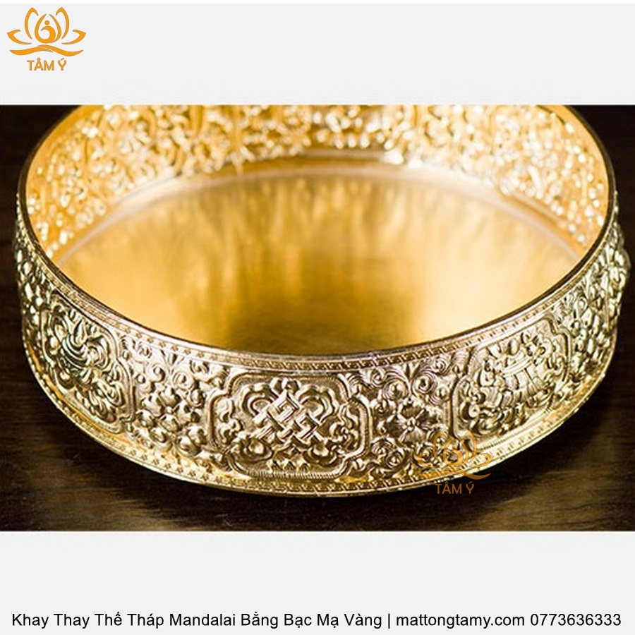 Khay Thay Thế Cho Tháp Madala - Núi Tu Di, Bằng Bạc Nguyên Chất Mạ Vàng, Thiết Kế Sang Trọng TMDL55