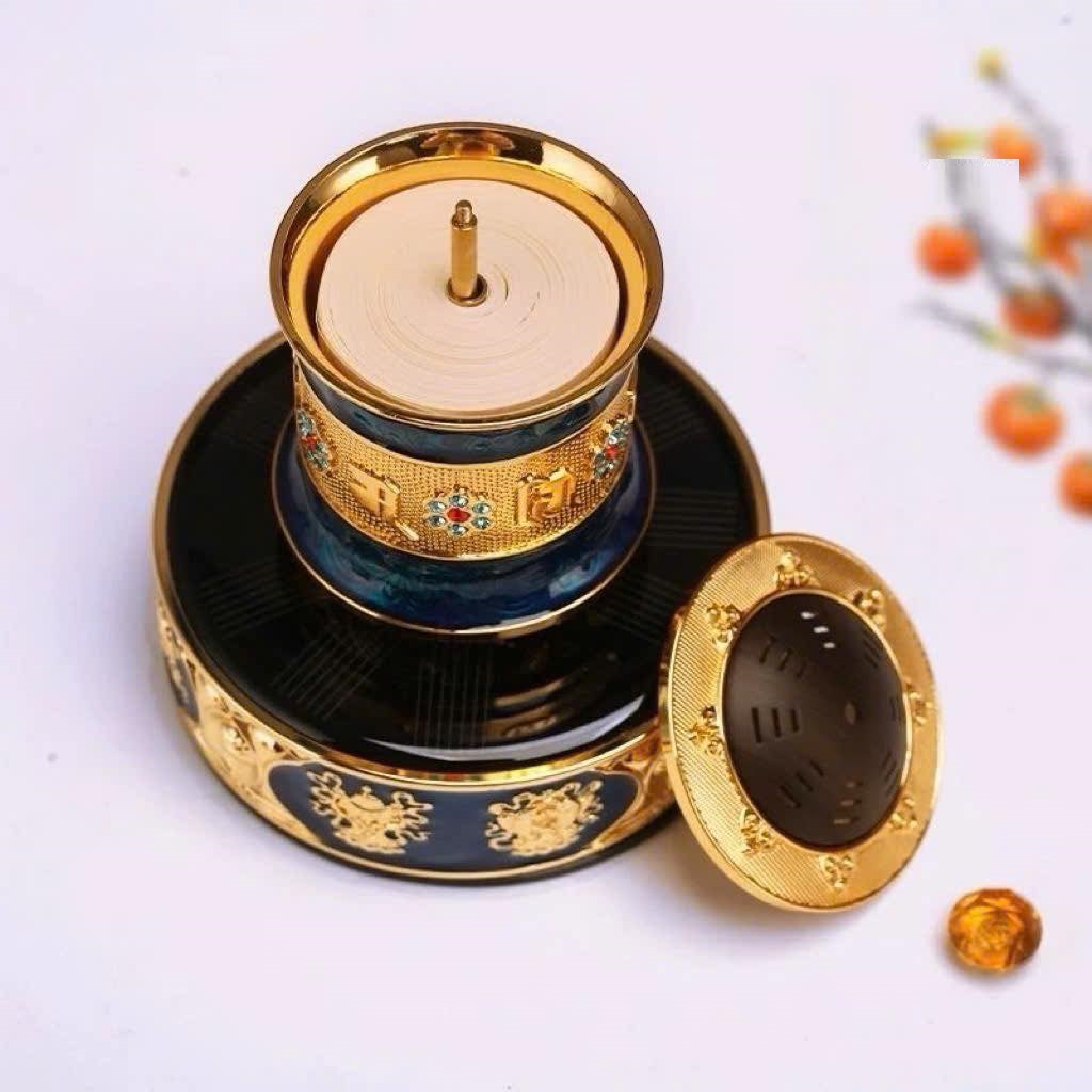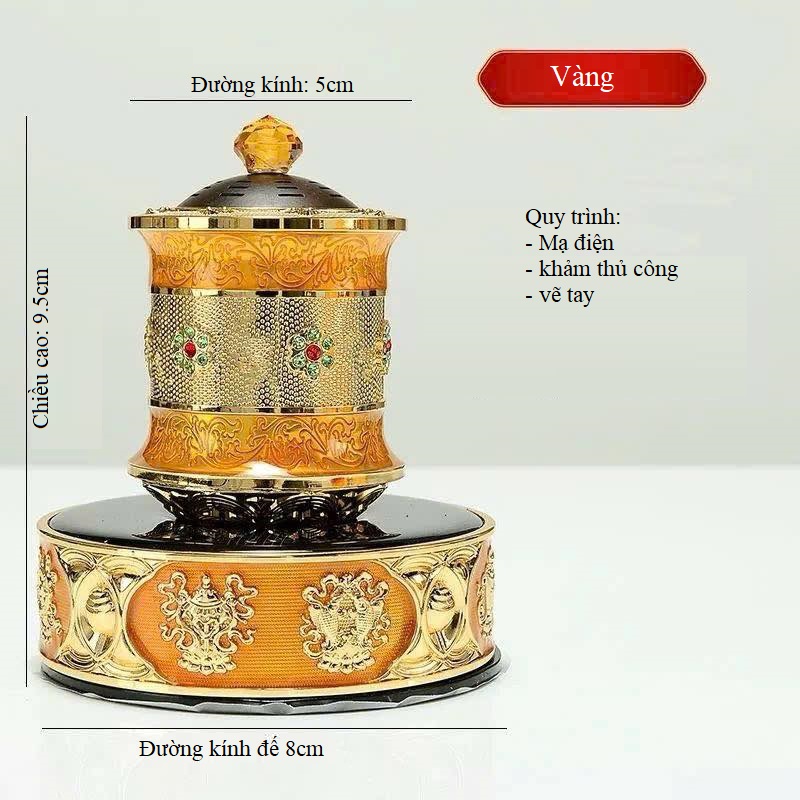 Kích thước: cao 9.5cm, đường kính kinh luân 5cm, đường kính đế 8cm.