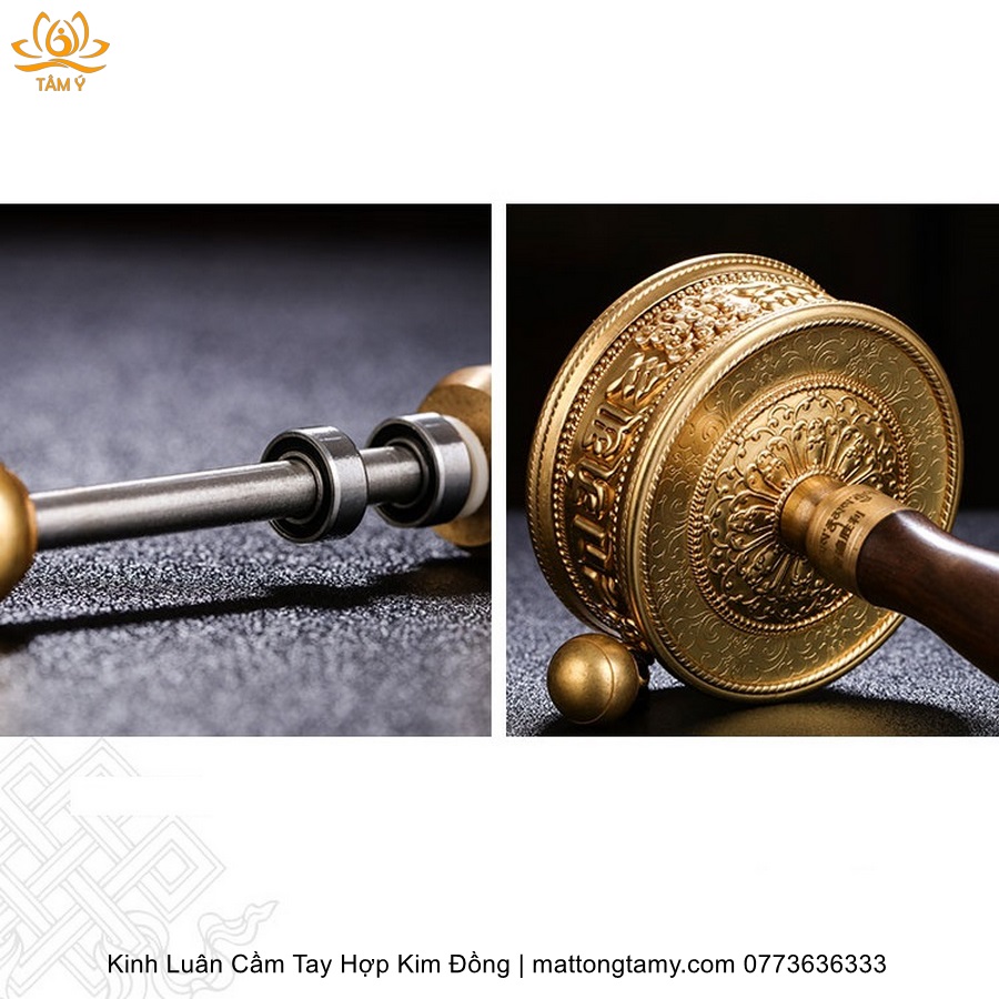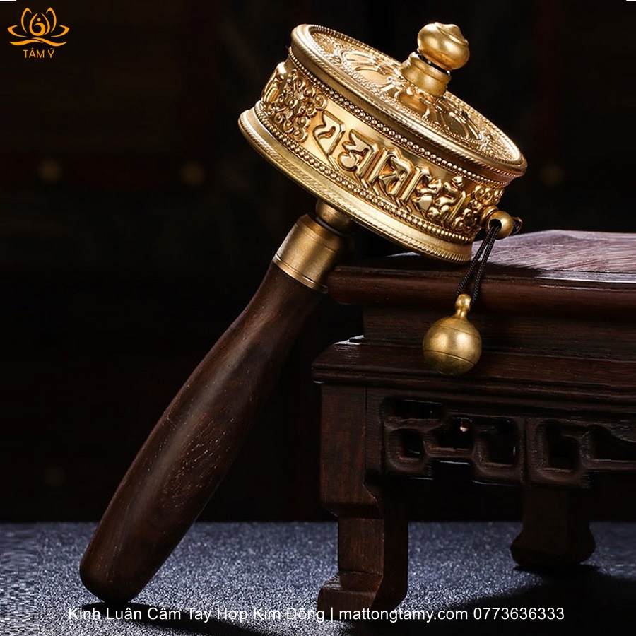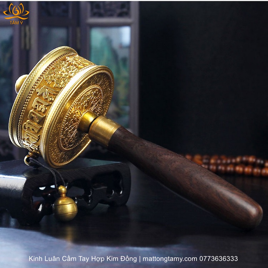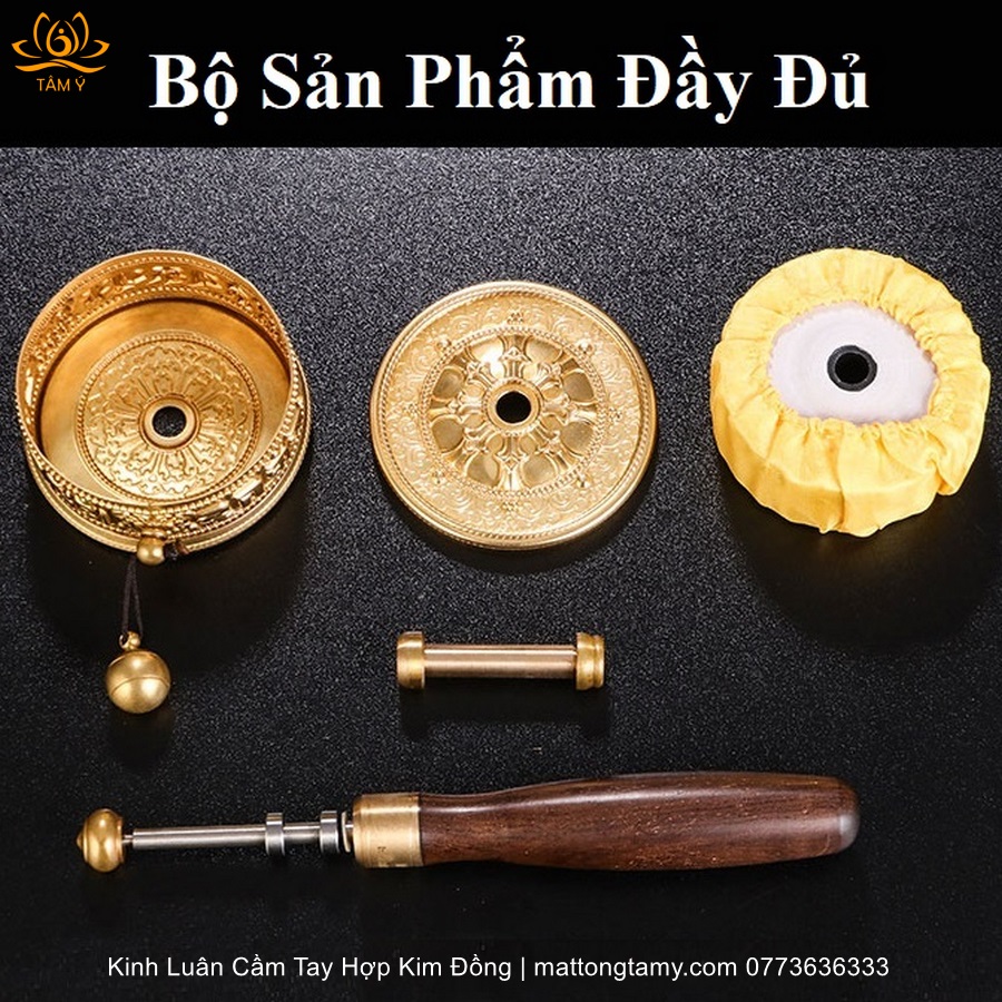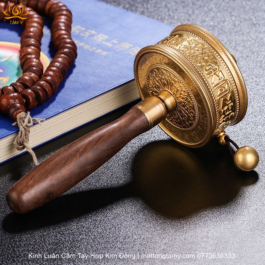 |Lõi Giấy| Kinh Luân Cầm Tay Bằng Hợp Kim Đồng, Cán Bằng Gỗ Quý KLCT05
