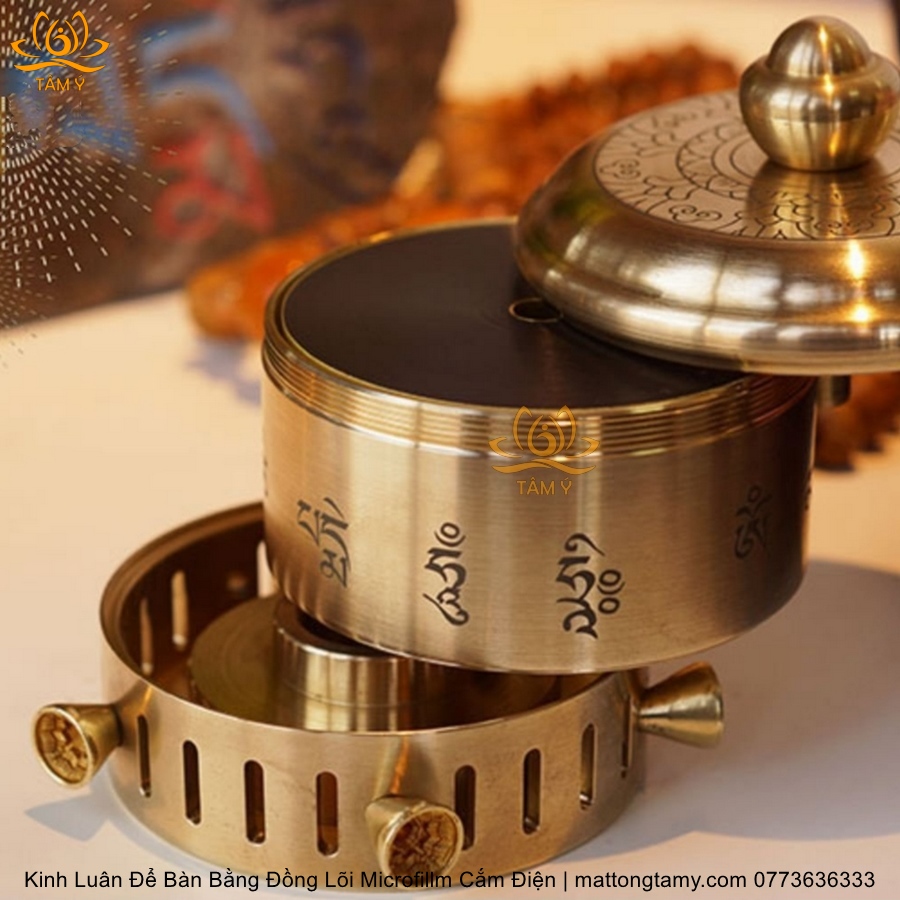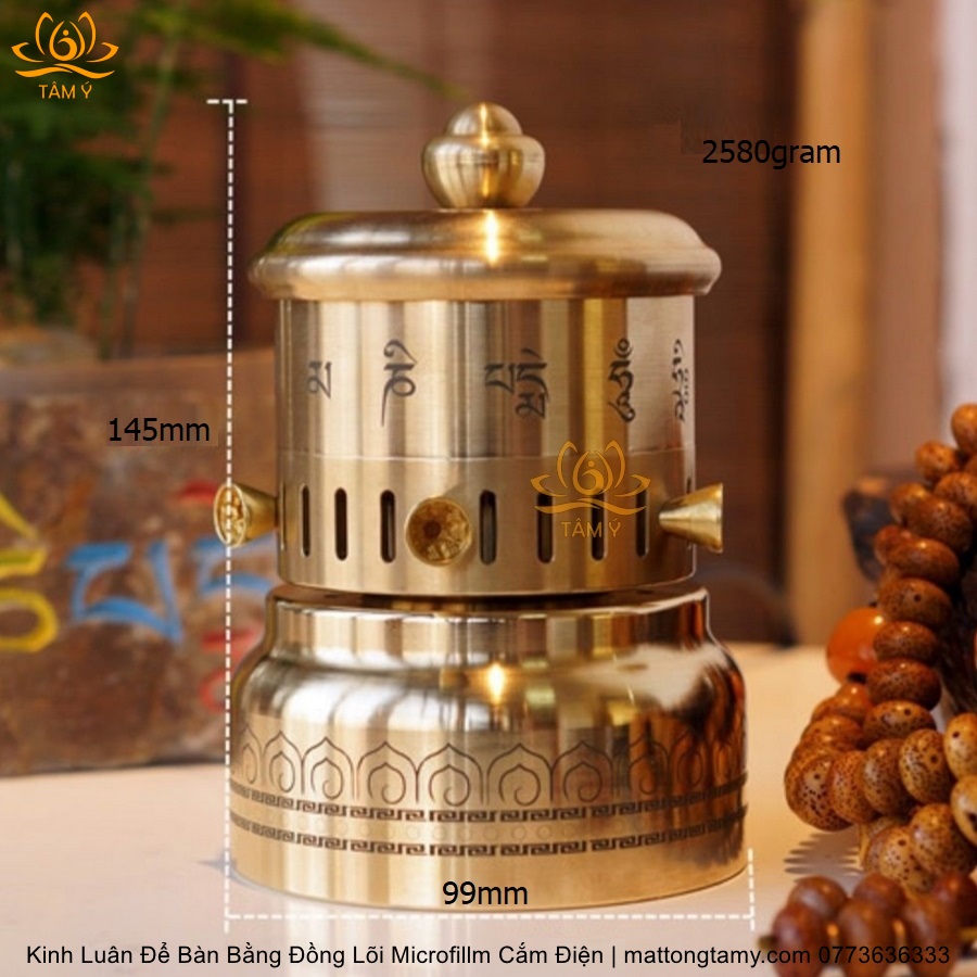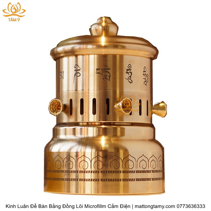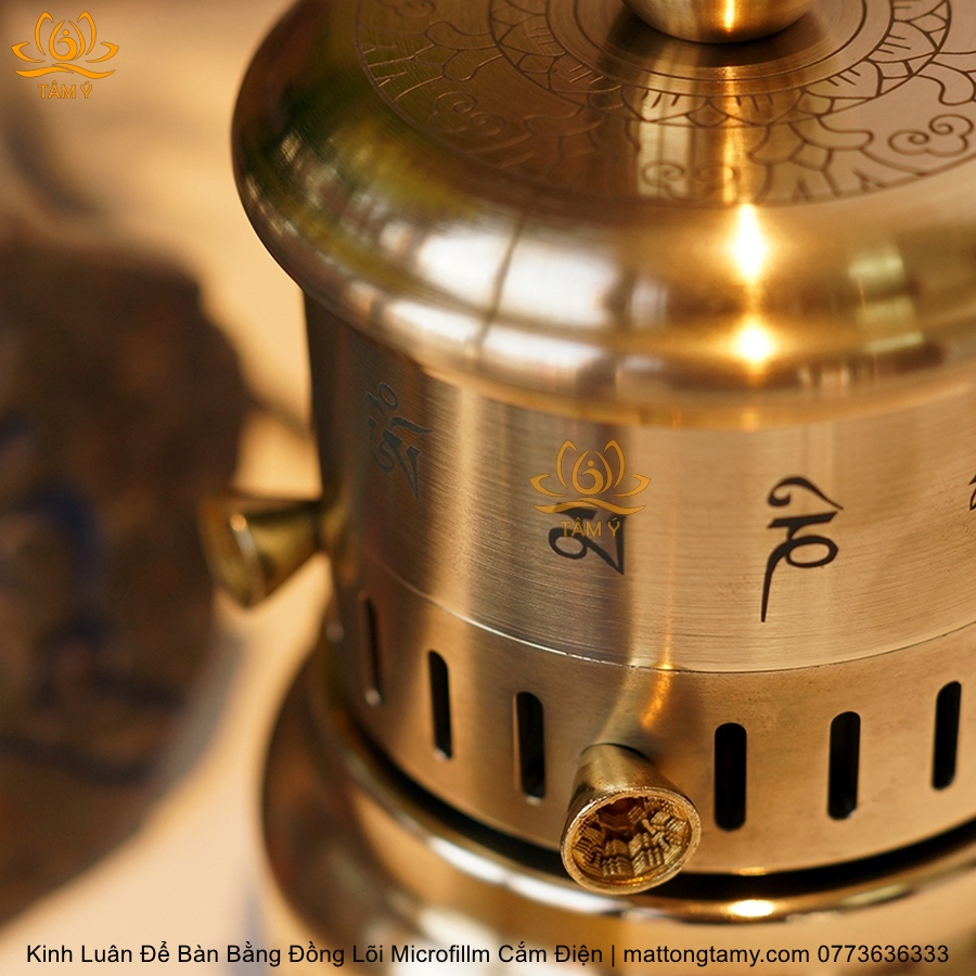 |Lõi Microfilm| Kinh Luân Để Bàn Bằng Bằng Đồng Hình Trụ, Có Chuông, Cắm Điện Trược Tiếp Với Nhiều Kinh Chú Khác KLD12
