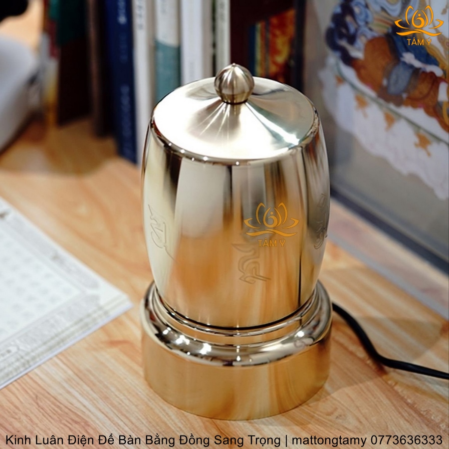 Chất Liệu: Đồng Nguyên Chất Tiện CNC. Kinh luân cắm điện không phát nhạc. Kích Thước: 21.4cmx11.9cm. Khối Lượng: 5200gram. Kinh Chú: gần 60 Loại (Liên hệ shop để thỉnh). Lõi kinh luân là 3 cuộn Microfilm.