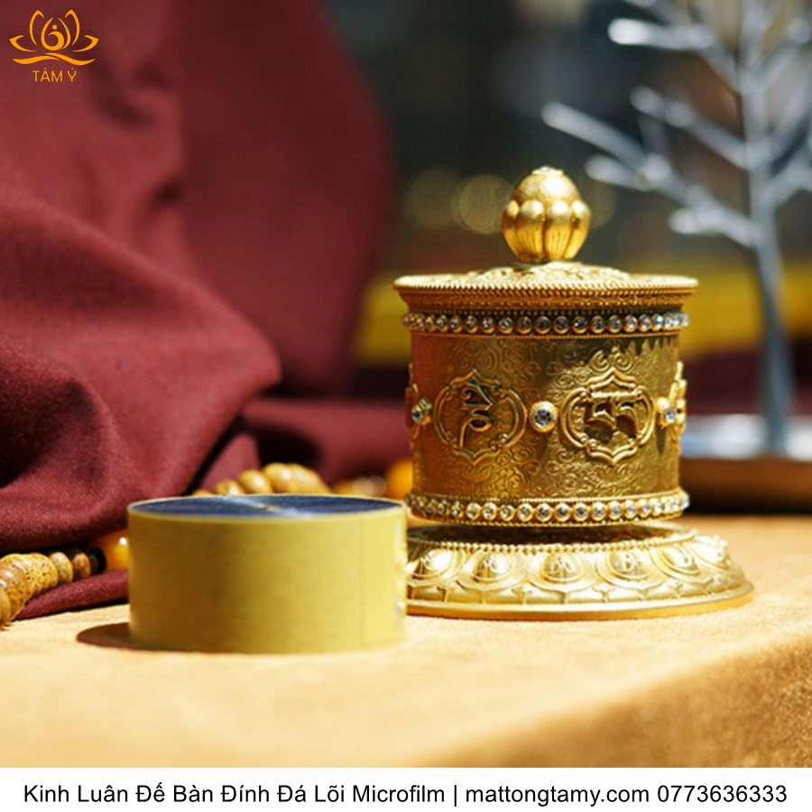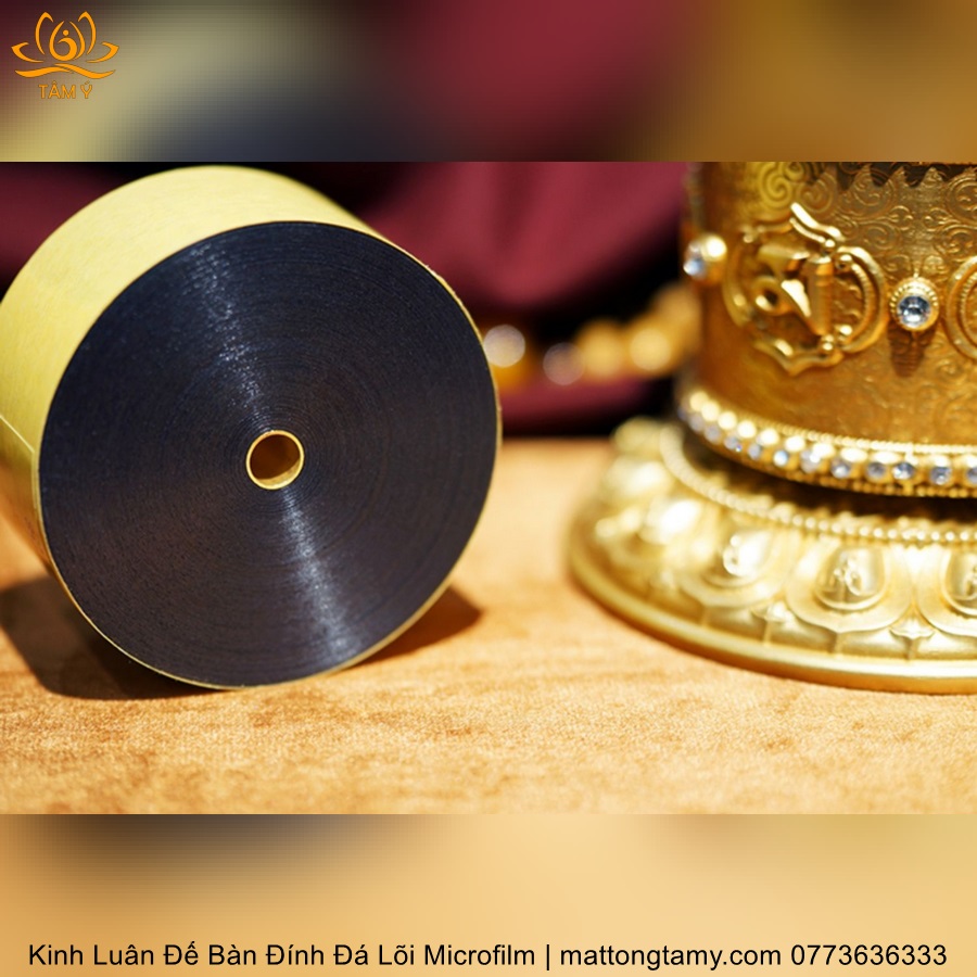 - Lõi kinh luân là 1 cuộn Microfilm, dùng công nghệ nano ghi chữ kinh văn lên các tấm film sau đó cho vào máy cuộn thật chặt lại. (quý khách lưu ý: không mở cuộn film ra vì máy cuộn nén rất chặt để thu nhỏ kích thước tối đa, nếu mở ra thì film bung ra sẽ không thể cuộn lại như ban đầu).