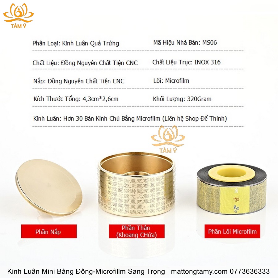 |Lõi Microfilm| Kinh Luân Cầm Tay Mini Vỏ Bằng Đồng Tiện Công Nghệ Cao CNC Cách Điệu Cực Đẹp Và Sang Trọng KLCT07