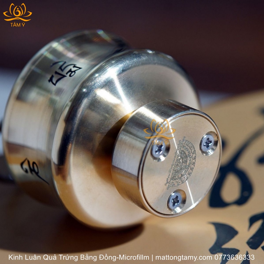 - Lõi kinh luân là 1 cuộn Microfilm, dùng công nghệ nano ghi chữ kinh văn lên các tấm film sau đó cho vào máy cuộn thật chặt lại. (quý khách lưu ý: không mở cuộn film ra vì máy cuộn nén rất chặt để thu nhỏ kích thước tối đa, nếu mở ra thì film bung ra sẽ không thể cuộn lại như ban đầu).