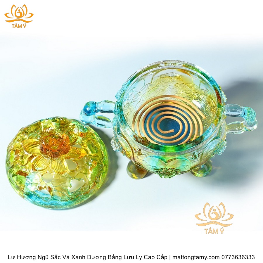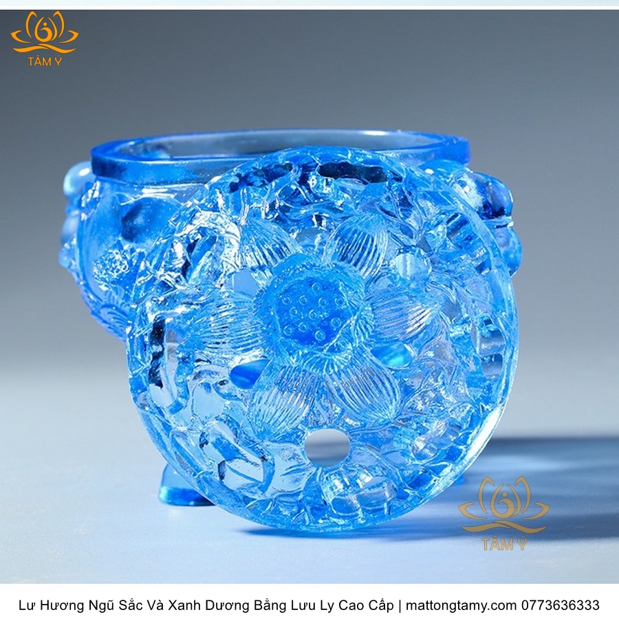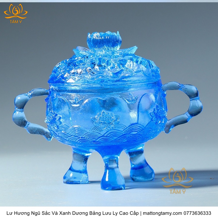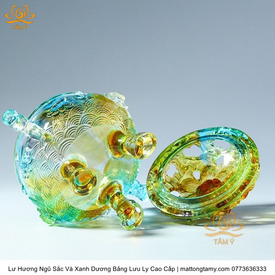 Lư Hương Có Nắp Lưu Ly Hình Đóa Sen Của Quan Âm Bồ Tát Mini Nhỏ Gọn, Họa Tiết Công Phu, Bắt Mắt