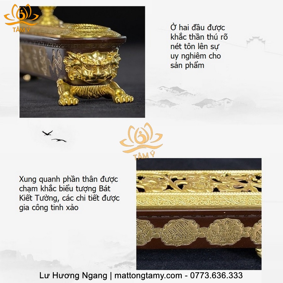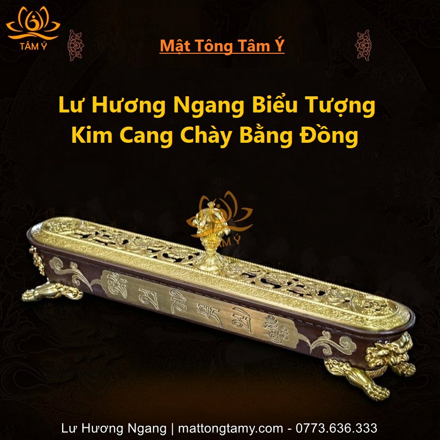 Lư hương Ngang Biểu Tượng Chày Kim Cang Bằng Đồng Nguyên Chất LHN08