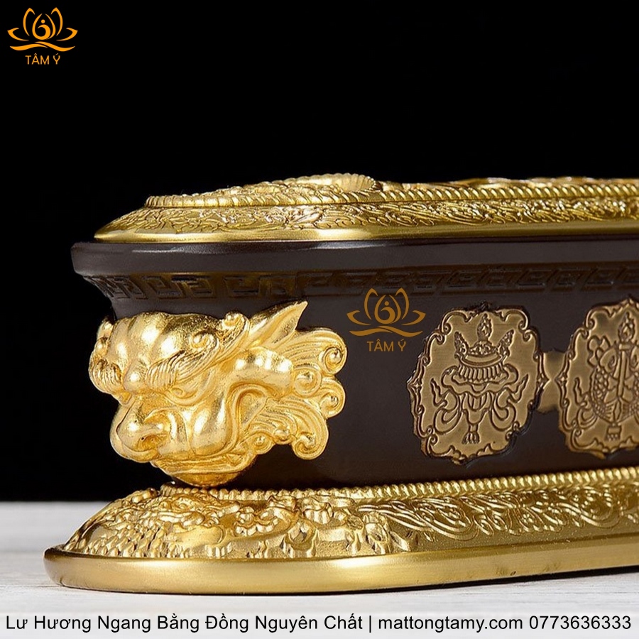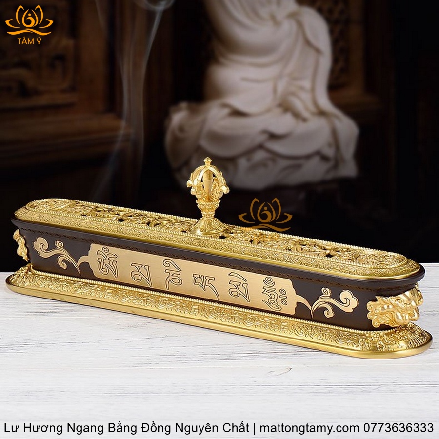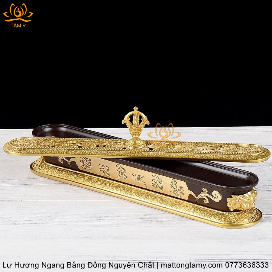Lư hương Ngang Biểu Tượng Chày Kim Cang Bằng Đồng Nguyên Chất LHN07