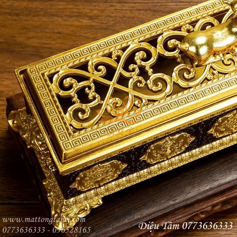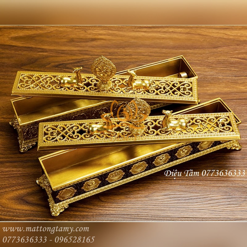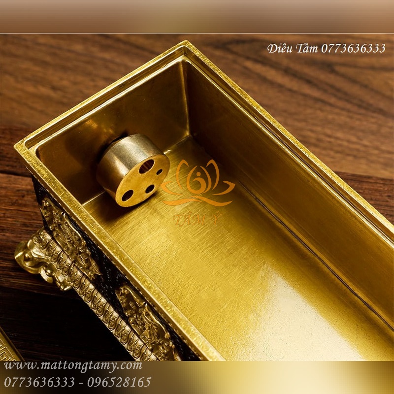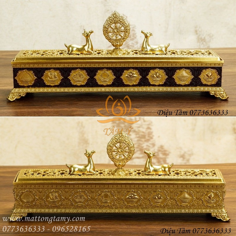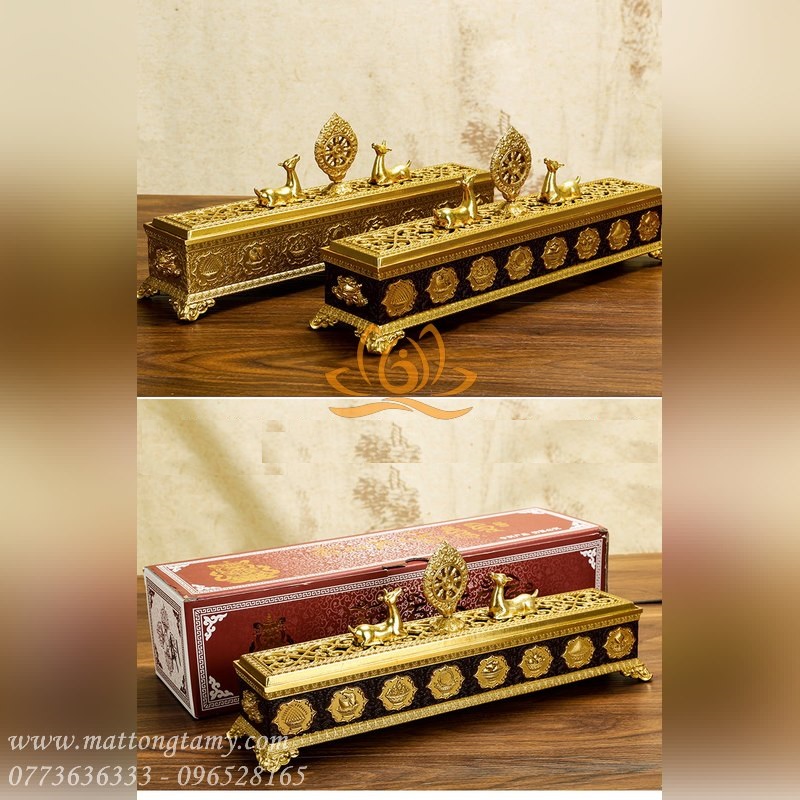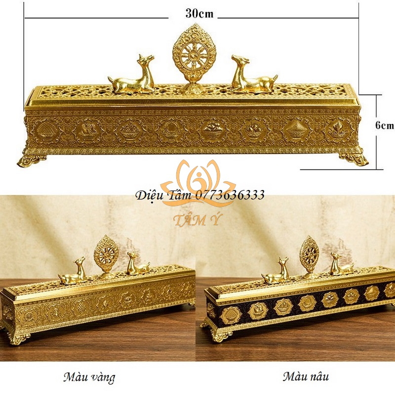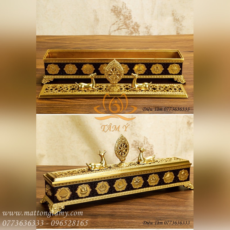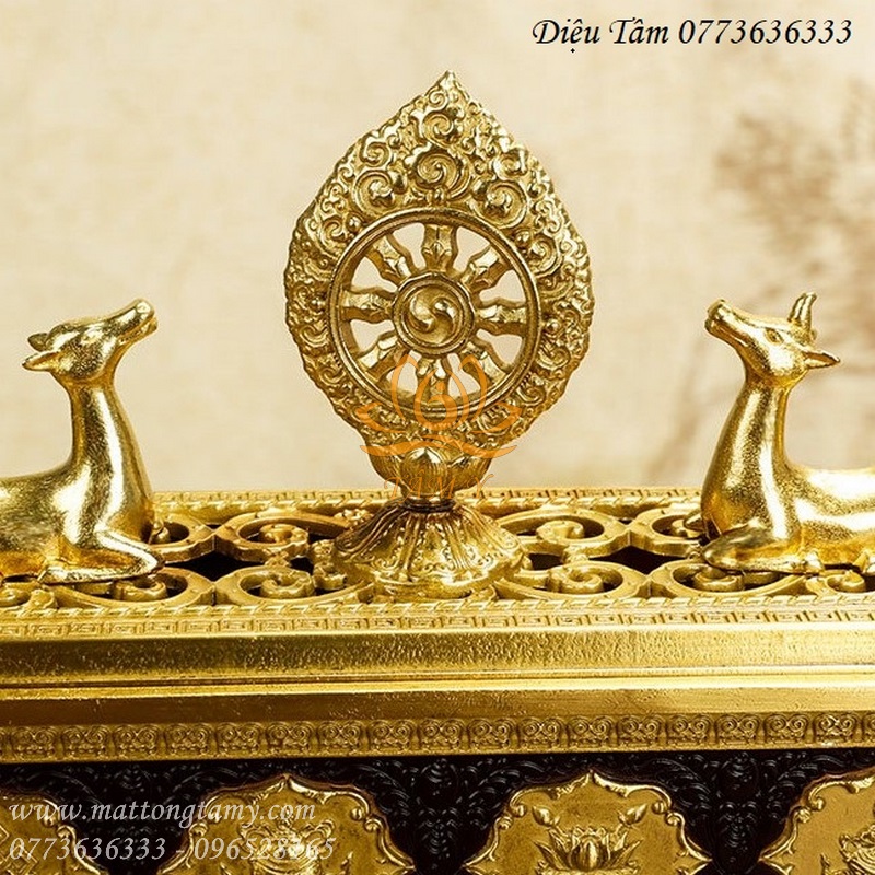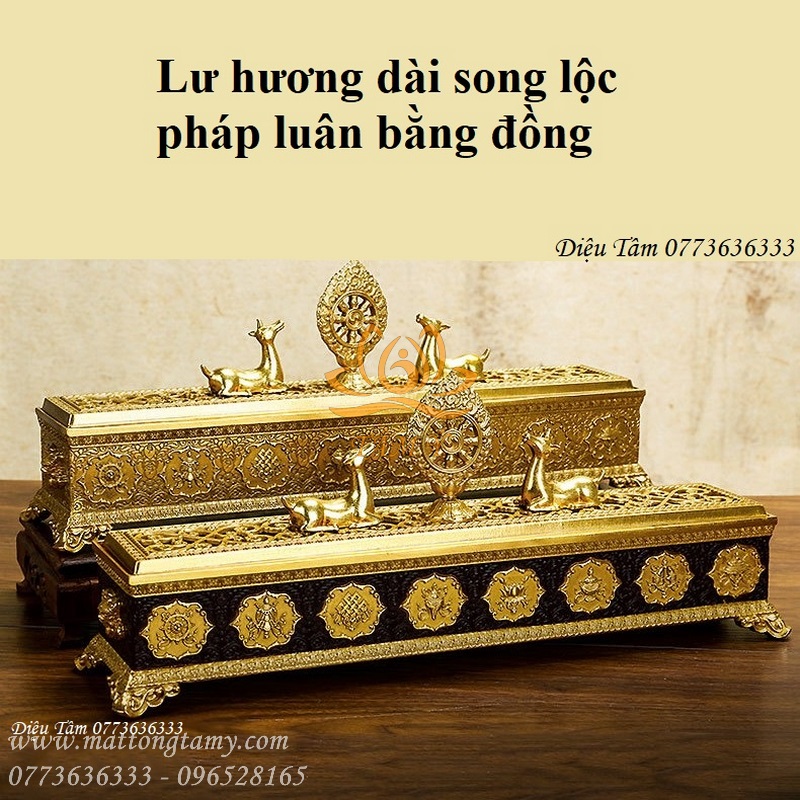 Lư hương ngang song lộc pháp luân bằng đồng LHN02