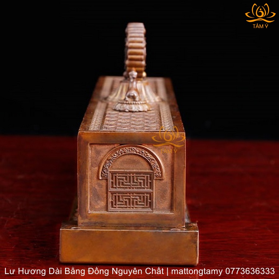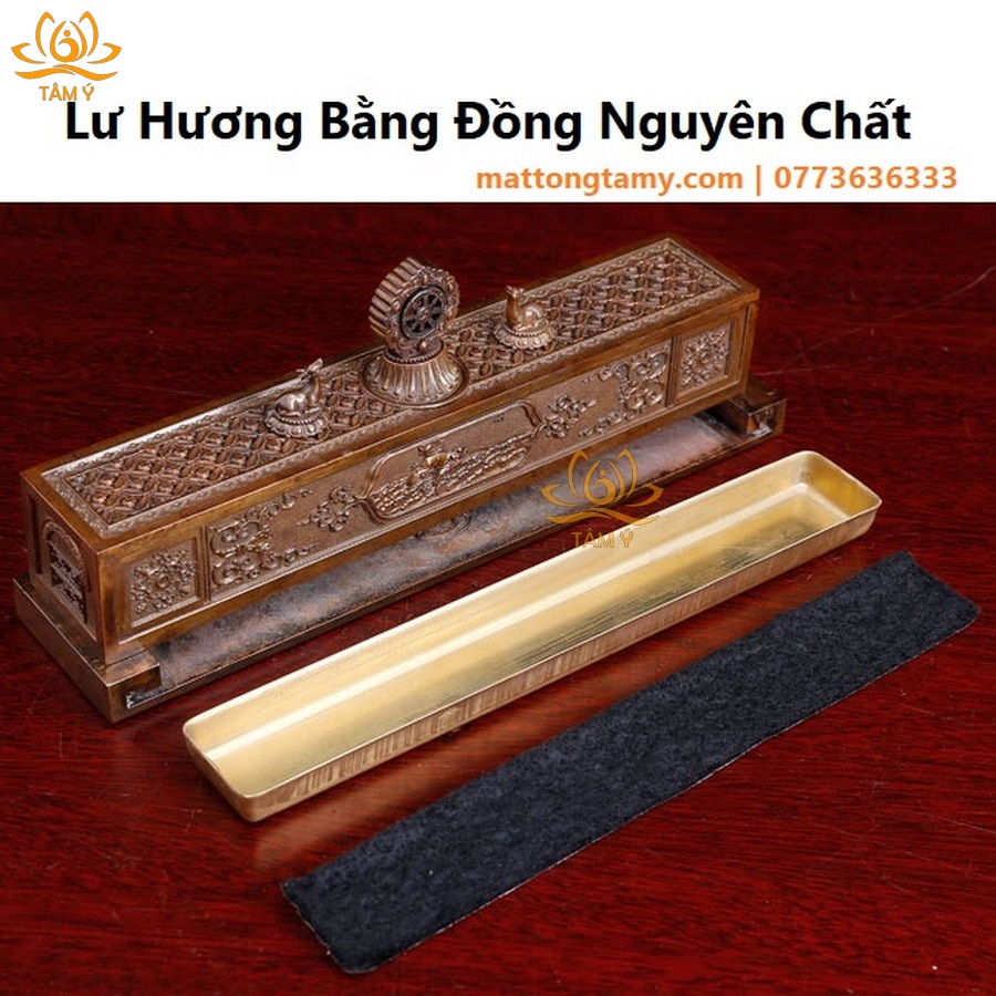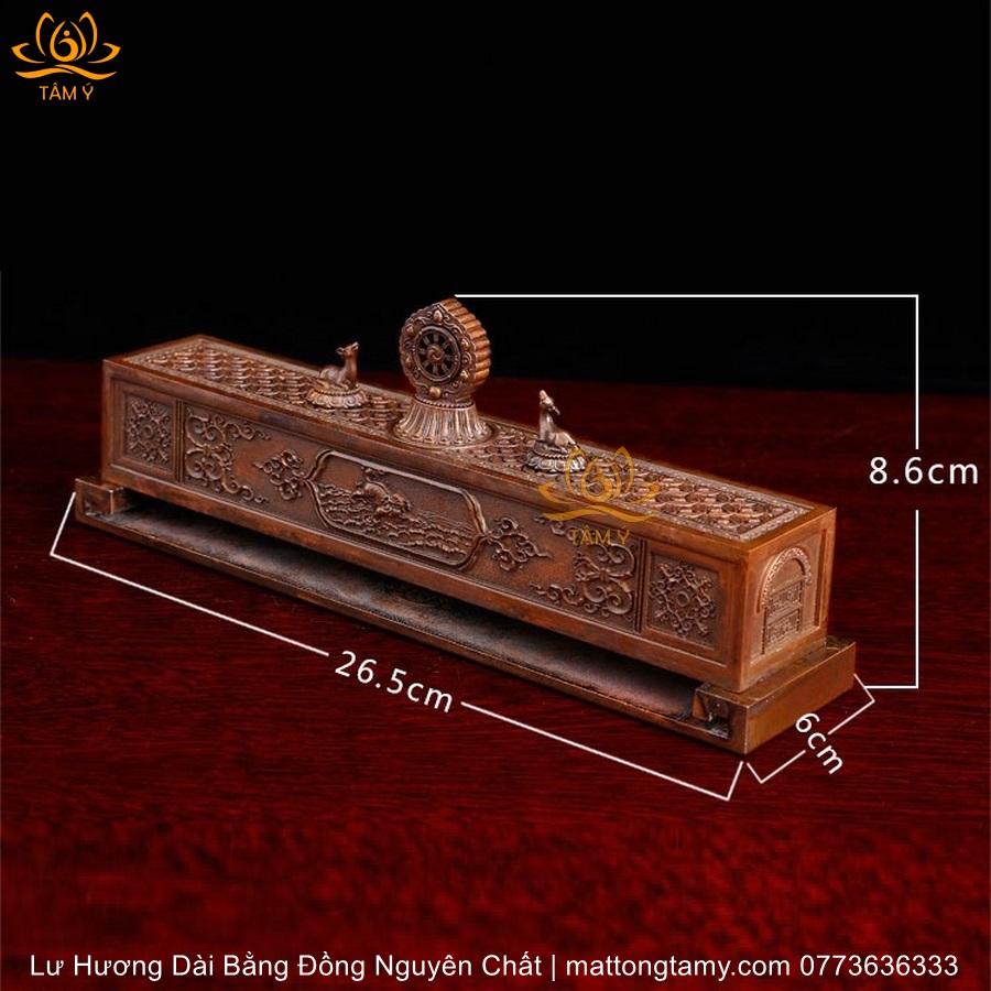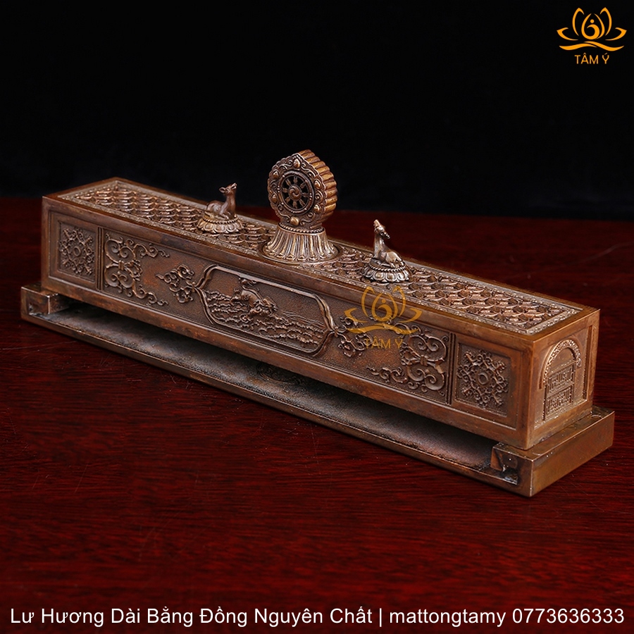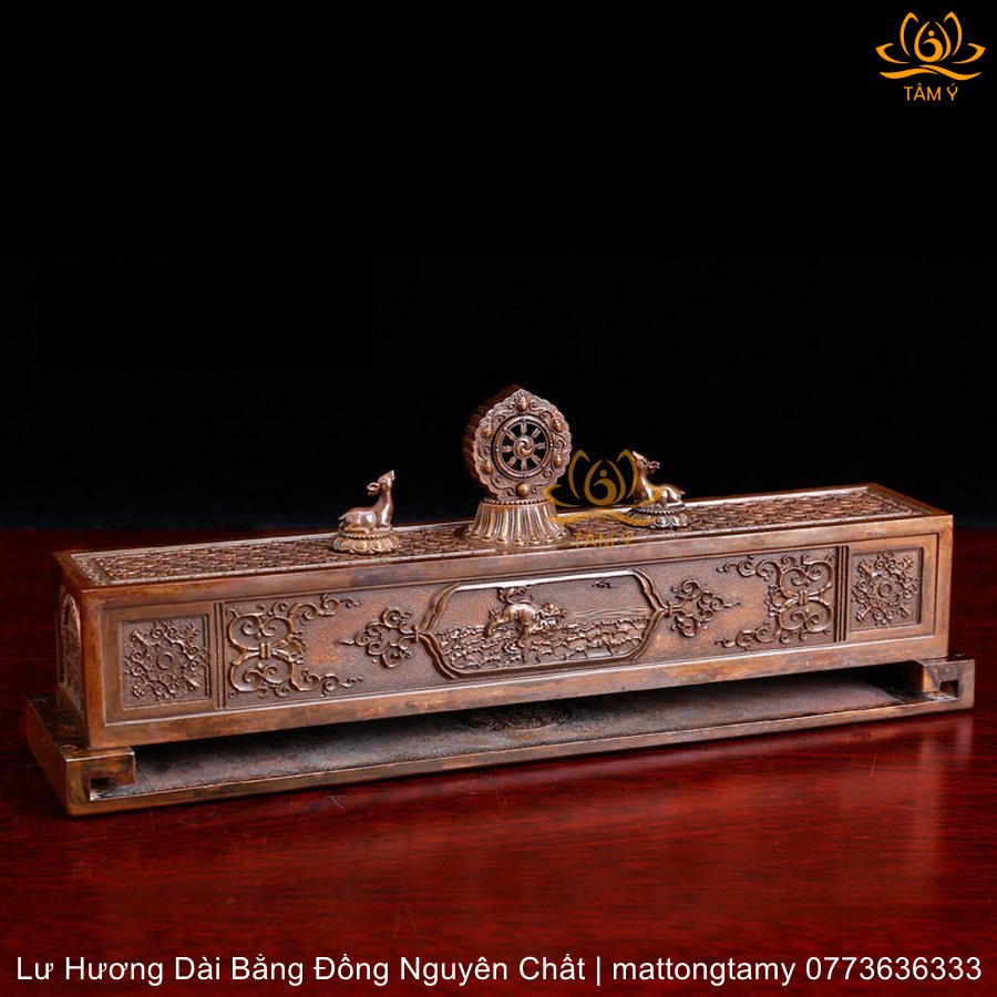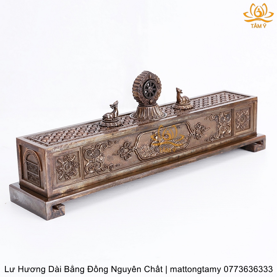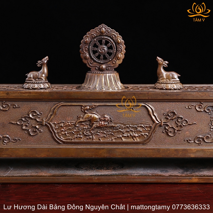 Lư hương ngang song lộc pháp luân bằng đồng LHN06