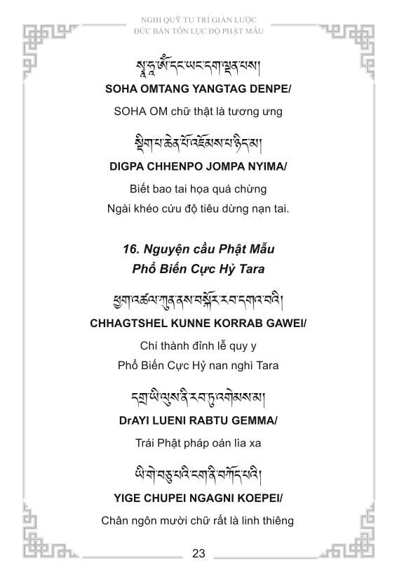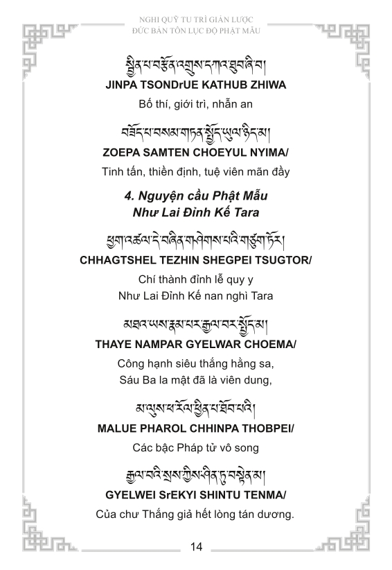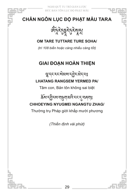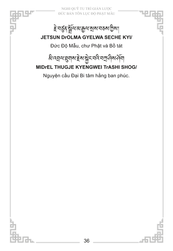 NGHI QUỸ TU TRÌ LỤC ĐỘ PHẬT MẪU (BẢN CỦA DÒNG TRUYỀN THỪA DRUKPA)