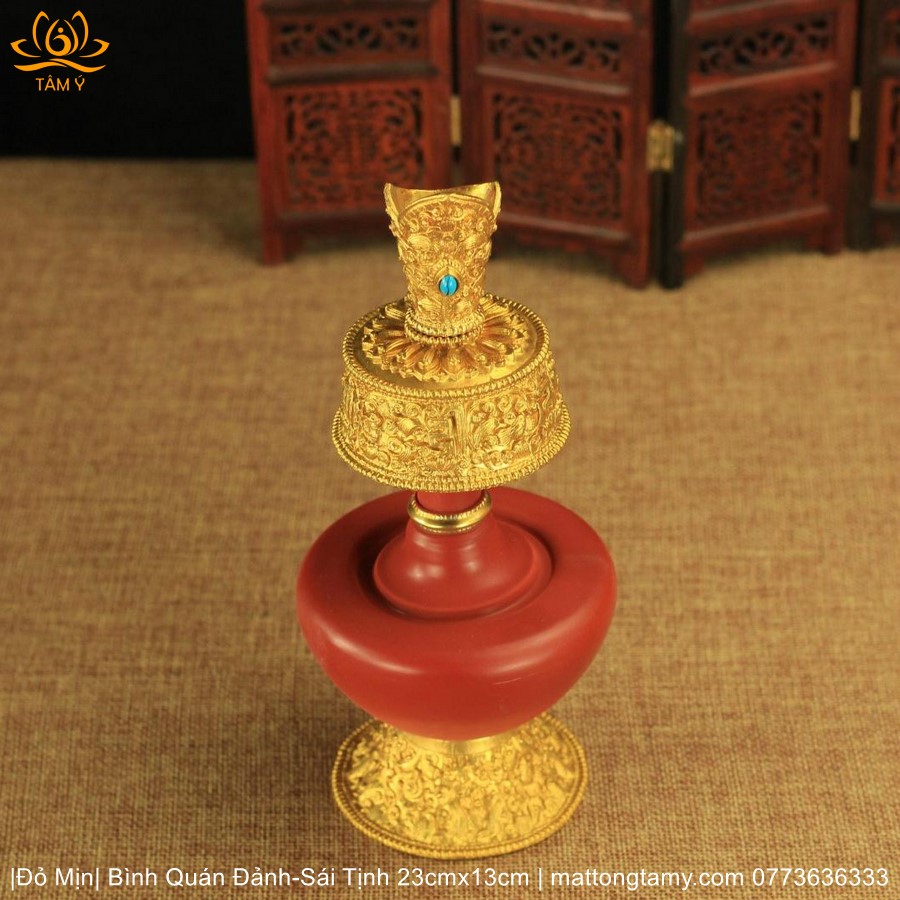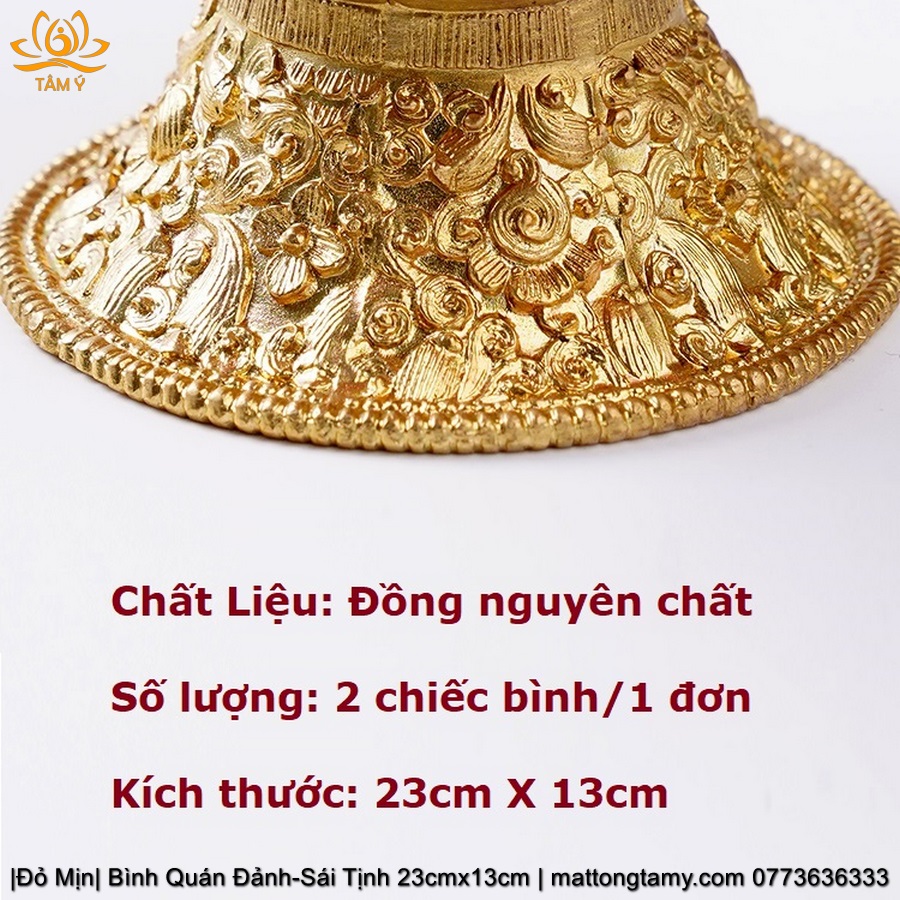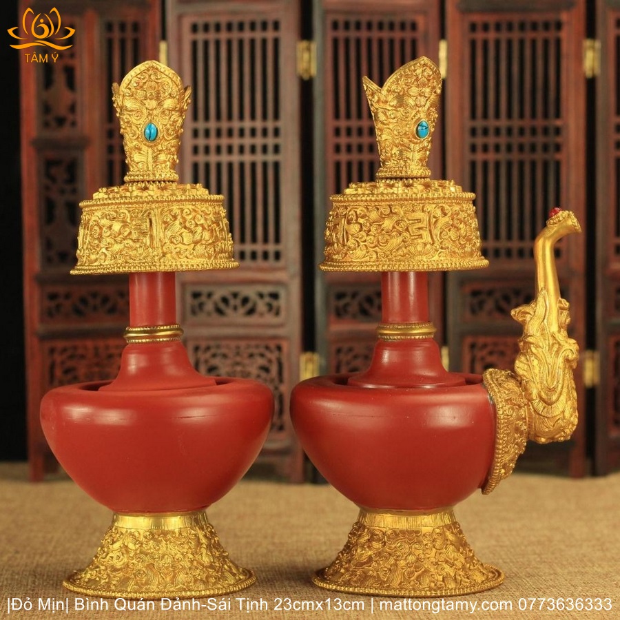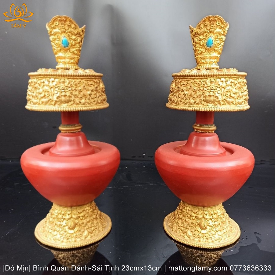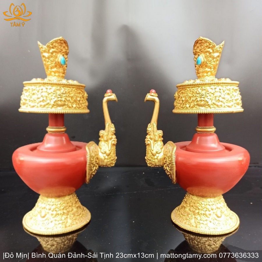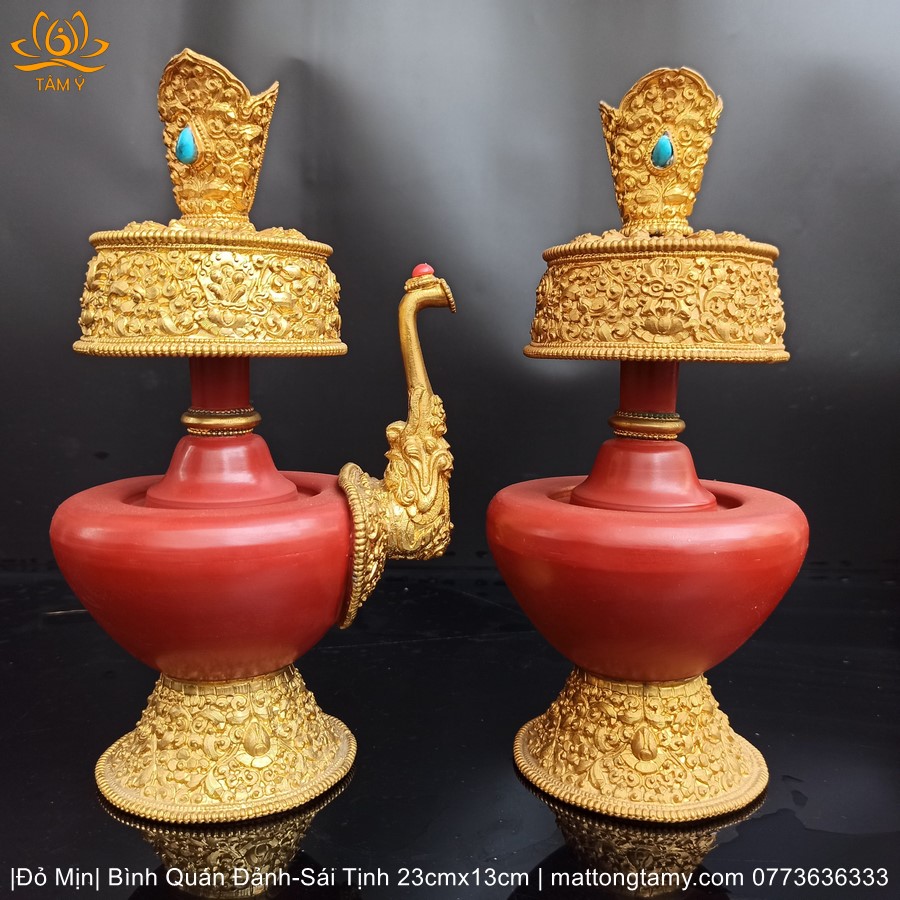 |Màu Đỏ Mịn| Bộ Đôi Bình Quán Đảnh - Sái Tịnh Bằng Đồng Nguyên Chất, Hàng Thủ Công Nepal 23cmX13cm