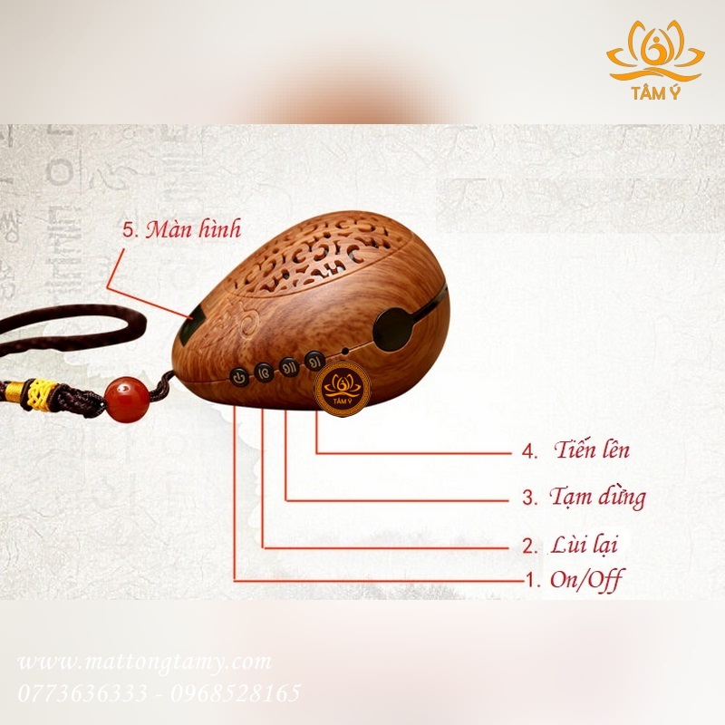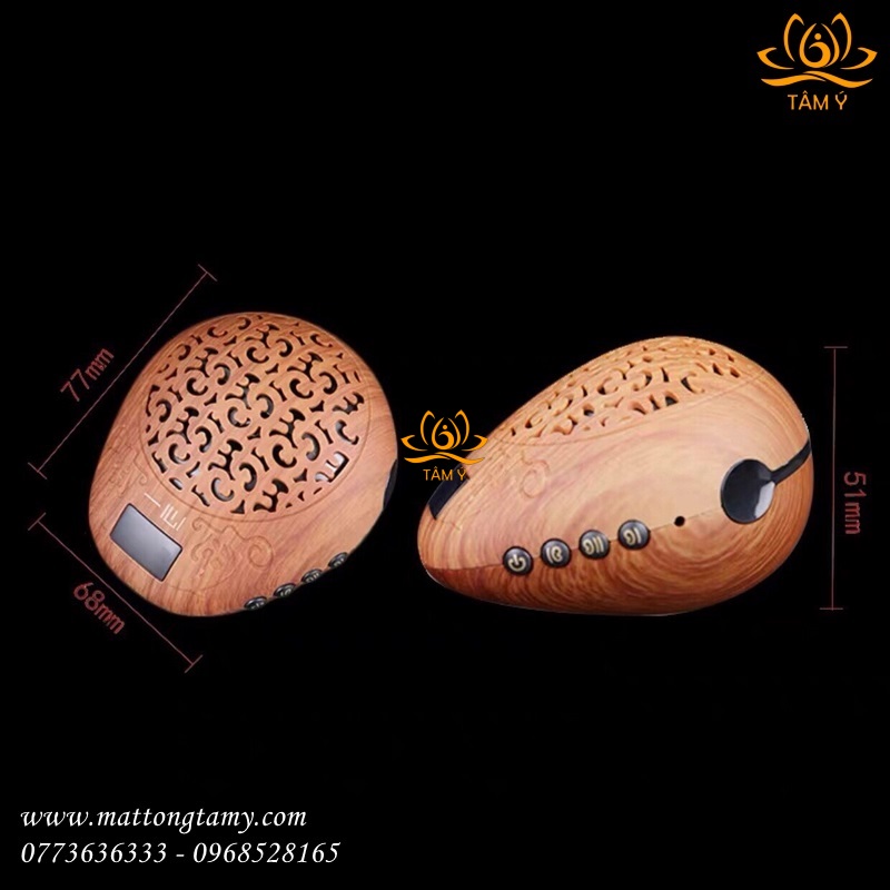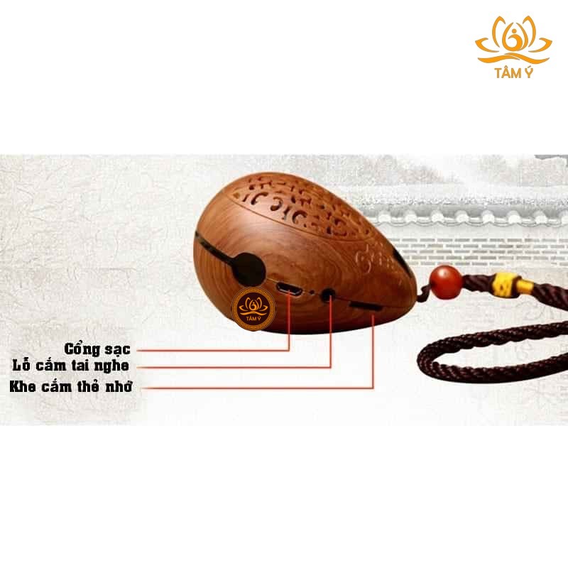 🌷Chất lượng âm thanh xuất sắc, trong veo 🌷Pin lithium siêu nhẹ tích trữ năng lượng lớn. 🌷Thiết kế hình chiếc mõ nhỏ gọn xinh xắn 🌷Vỏ ngoài bằng chất liệu giả gỗ được cắt gọt tinh xảo tạo hình hoa văn cổ xưa 🌷Trong máy có sẵn 35 bài pháp tiếng hoa và tiếng phạn 🌷Tặng kèm thẻ nhớ 16Gb