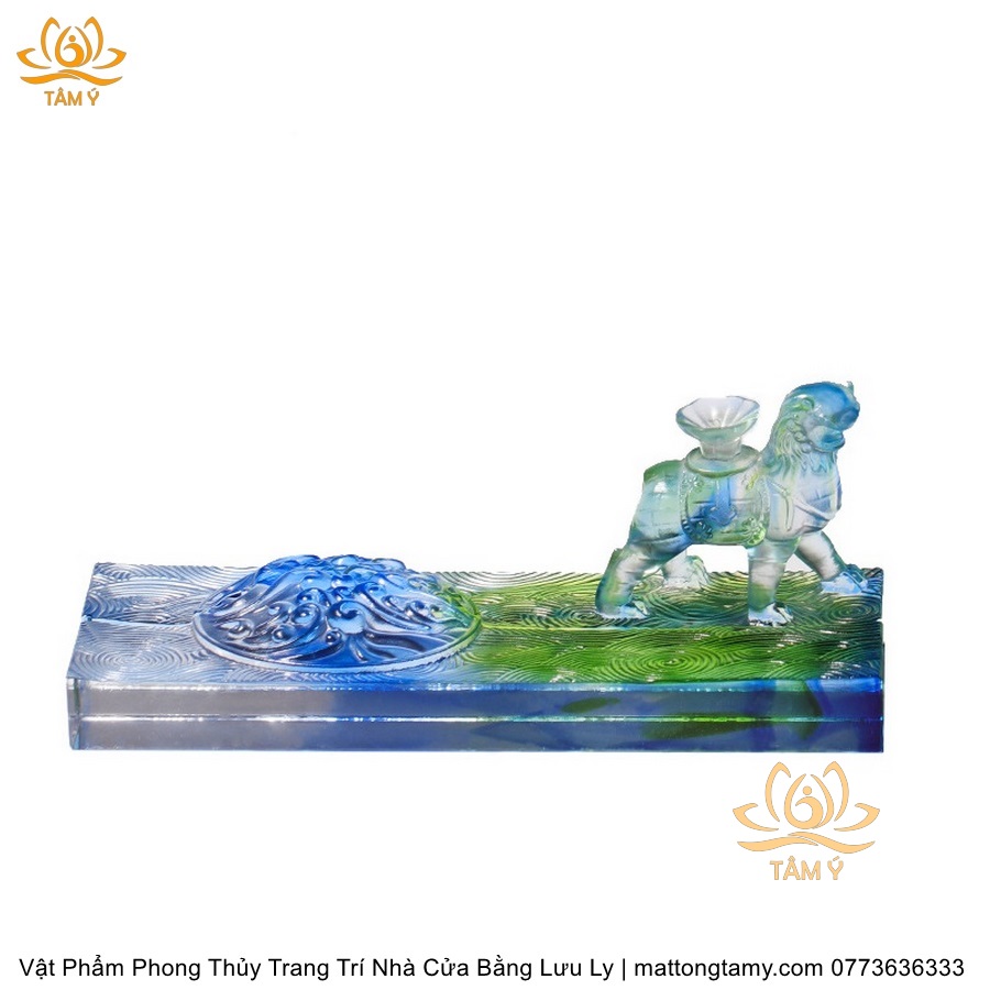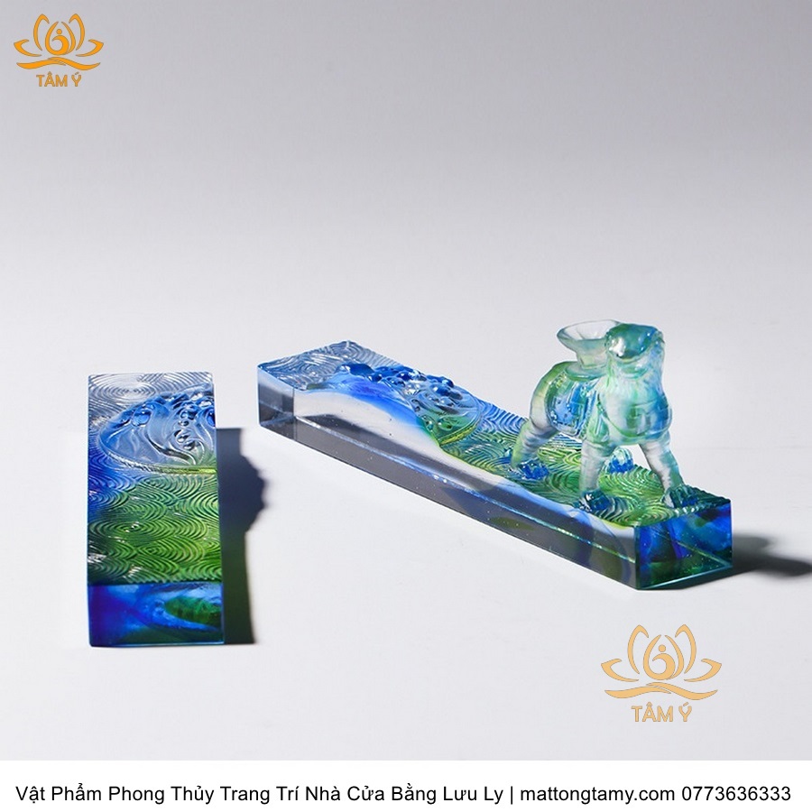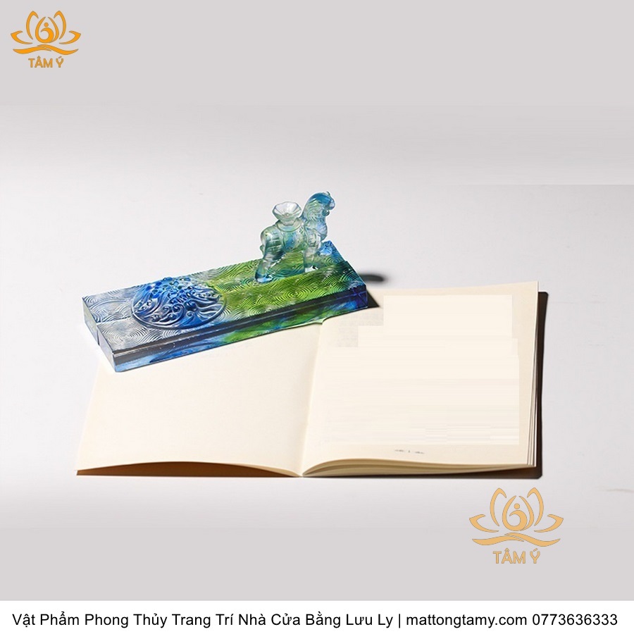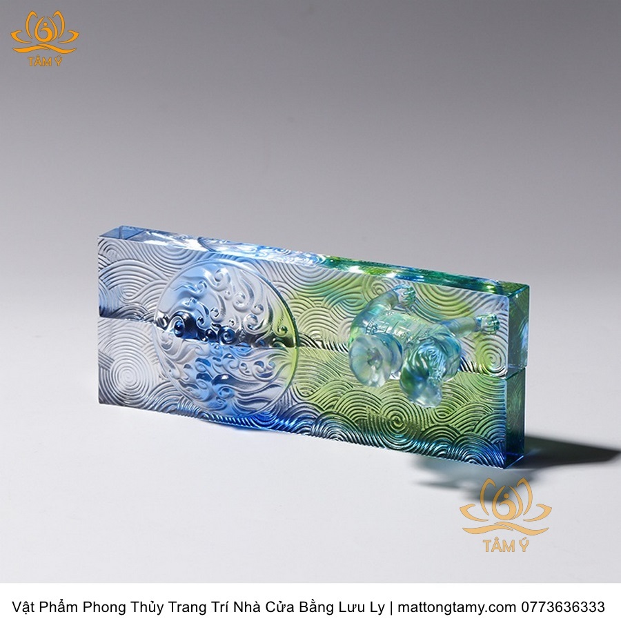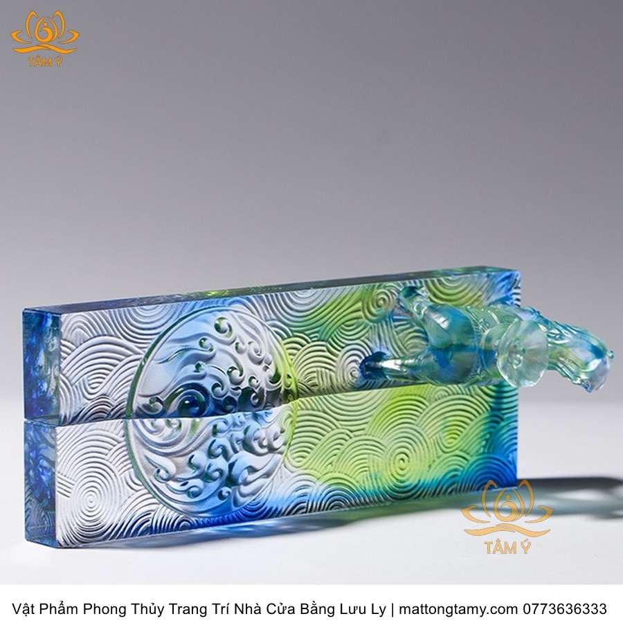 Miếng Chặn Giấy Sắc Xanh Bằng Lưu Ly Cao Cấp Vật Phẩm Phong Thủy Trang Trí Nhà Cửa DTT120
