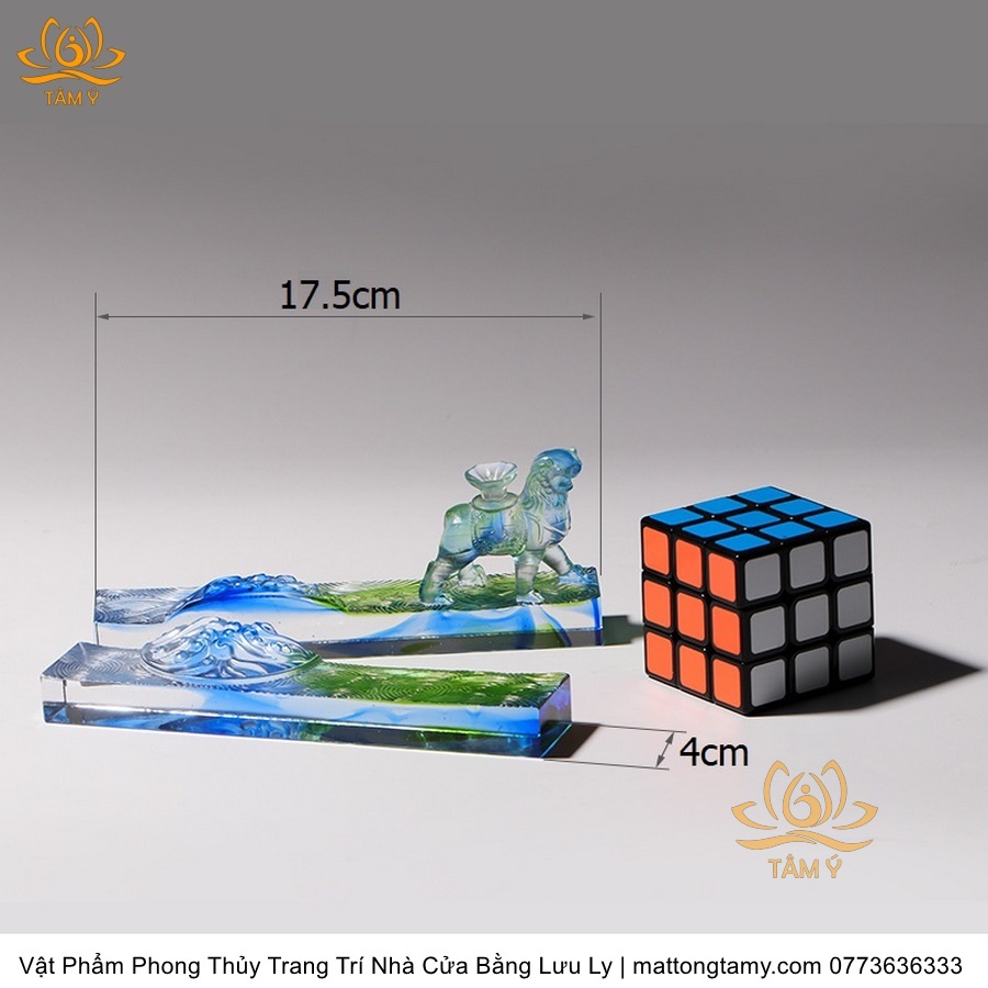 💫Chất liệu: Lưu ly cao cấp. Màu sắc: Sắc xanh.⚜️Kích thước: dài(đơn) 17.5cm, Cao (miếng có linh thú) 7cm và rộng (do sp tách làm 2 miếng) 3.5+3.5cm.💯Vật phẩm được làm vô cùng sắc sảo, rõ nét từng chi tiết...!!!
