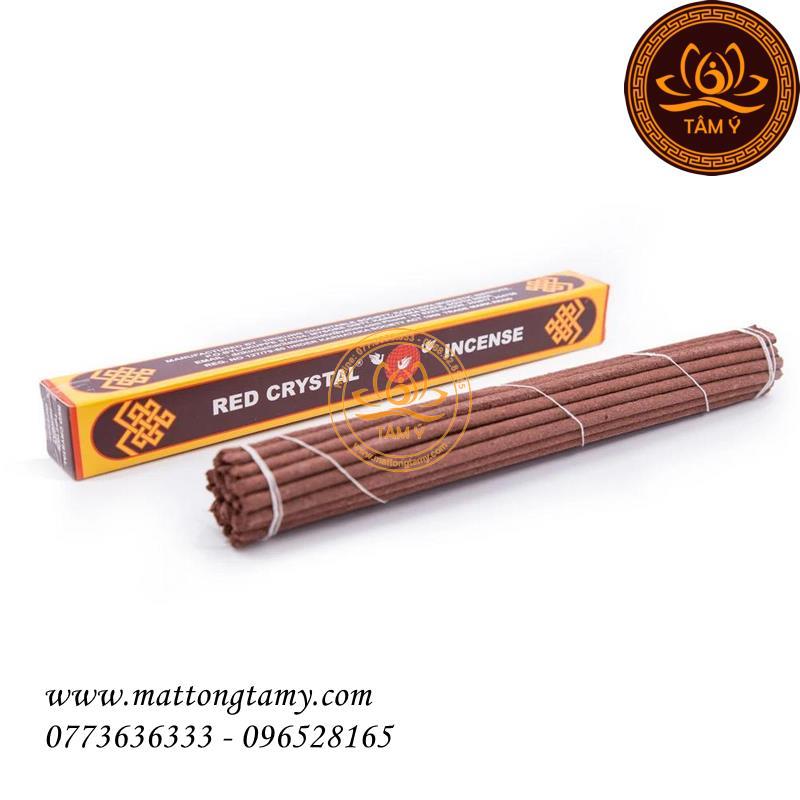 Red Crystal "Pha lê đỏ" có thể nói là dòng sản phẩm cao cấp nhất trong các loại nhang theo truyền thống Mật Thừa hiện nay. Sản phẩm là niềm tự hào của dòng truyền thừa Drikung, luôn xuất hiện trong những buổi lễ trịnh trọng nhất của các tu viện dòng này. Thành phần làm ra nhang Red Crystal luôn được tuyển chọn loại "đỉnh" nhất từ thảo dược thiên nhiên, hoàn toàn không sử dụng bất kỳ hóa chất tạo mùi gây hại nào cho chúng sanh, nhưng khi mỗi lần các vị Lạt Ma hỏa tịnh hương Red Crystal, không gian như tràn ngập trong hương thơm thuần khiết, ngọt ngào, sâu lắng, không nhầm lẫn với bất cứ loại nhang nào khác!