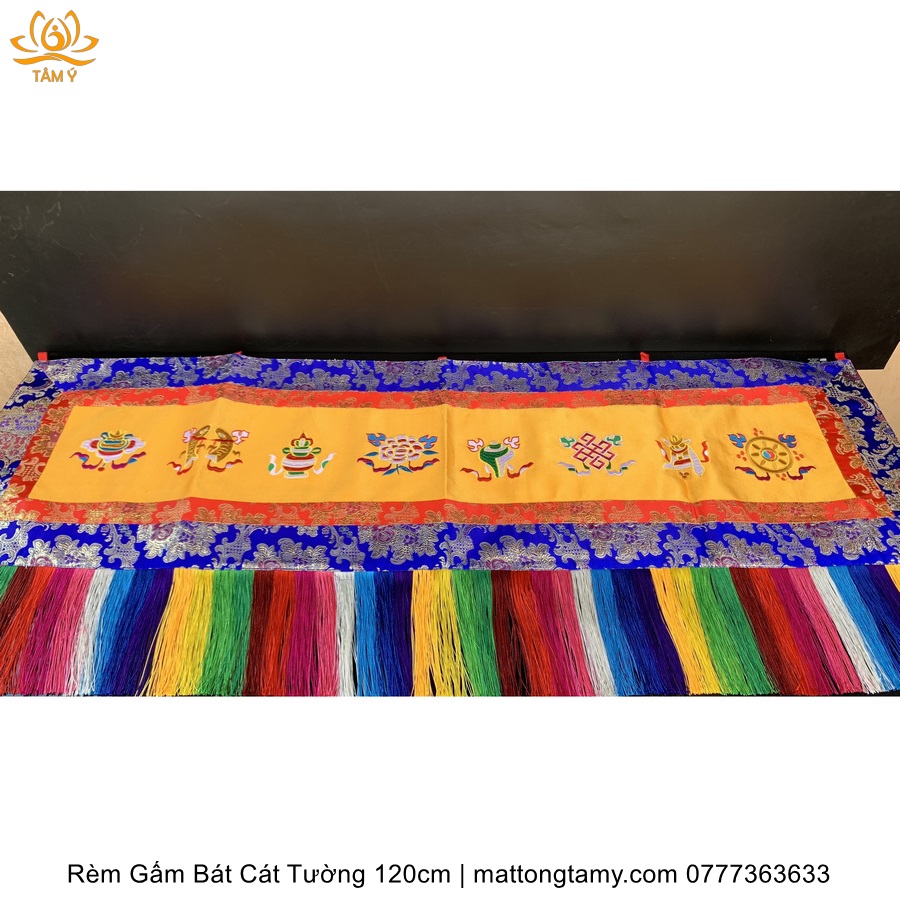 Rèm Gấm Bát Cát Tường Trang Trí Phòng Thờ Dài 120cm