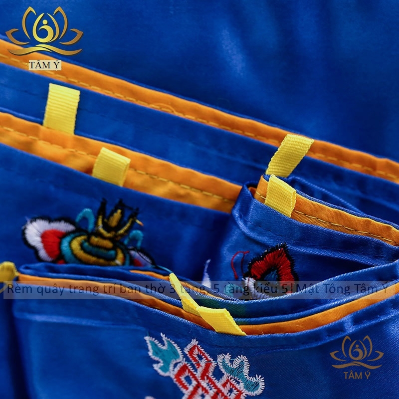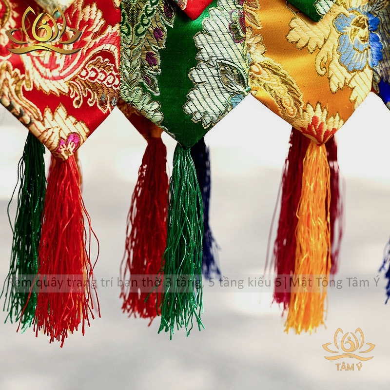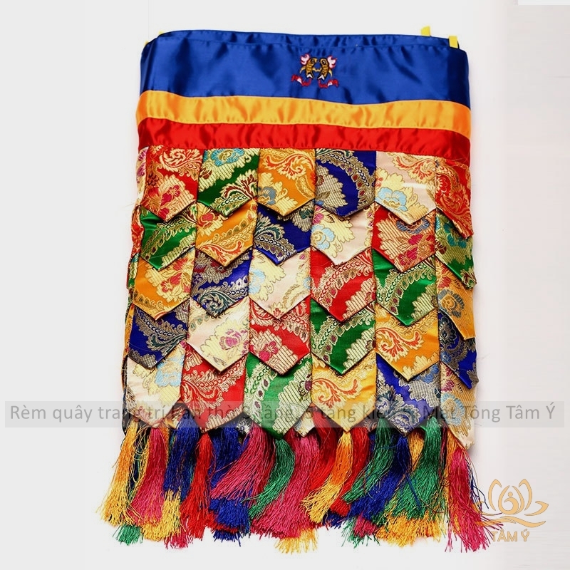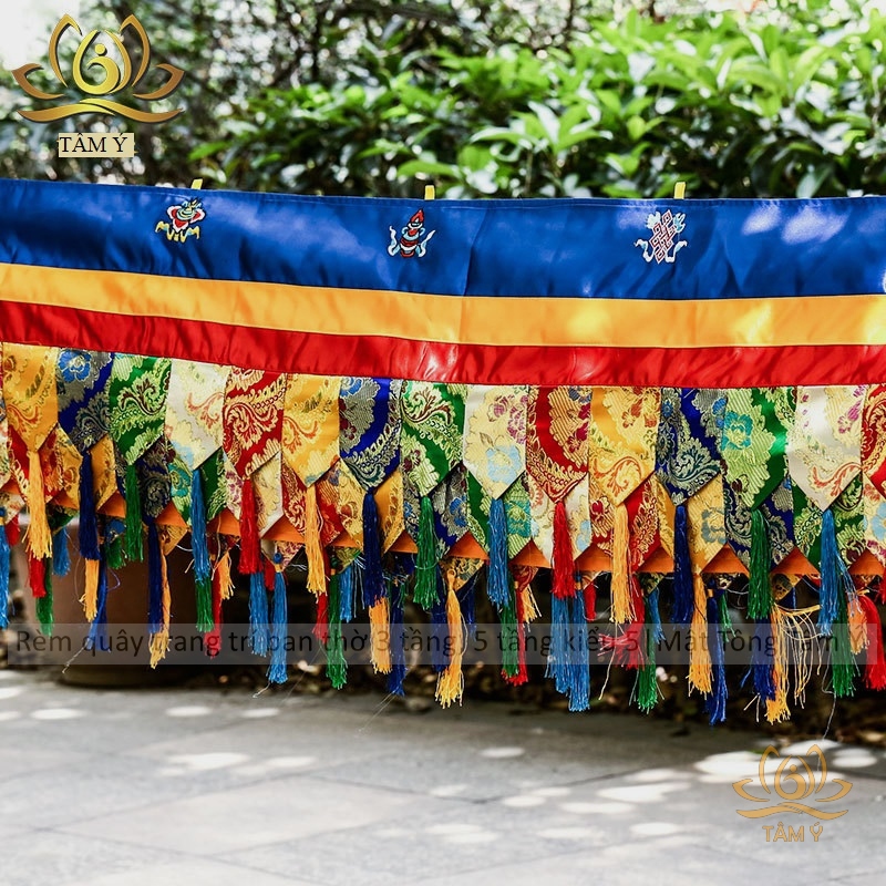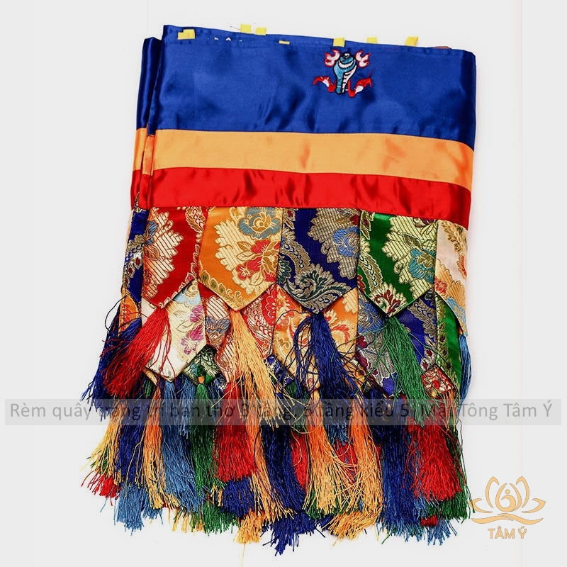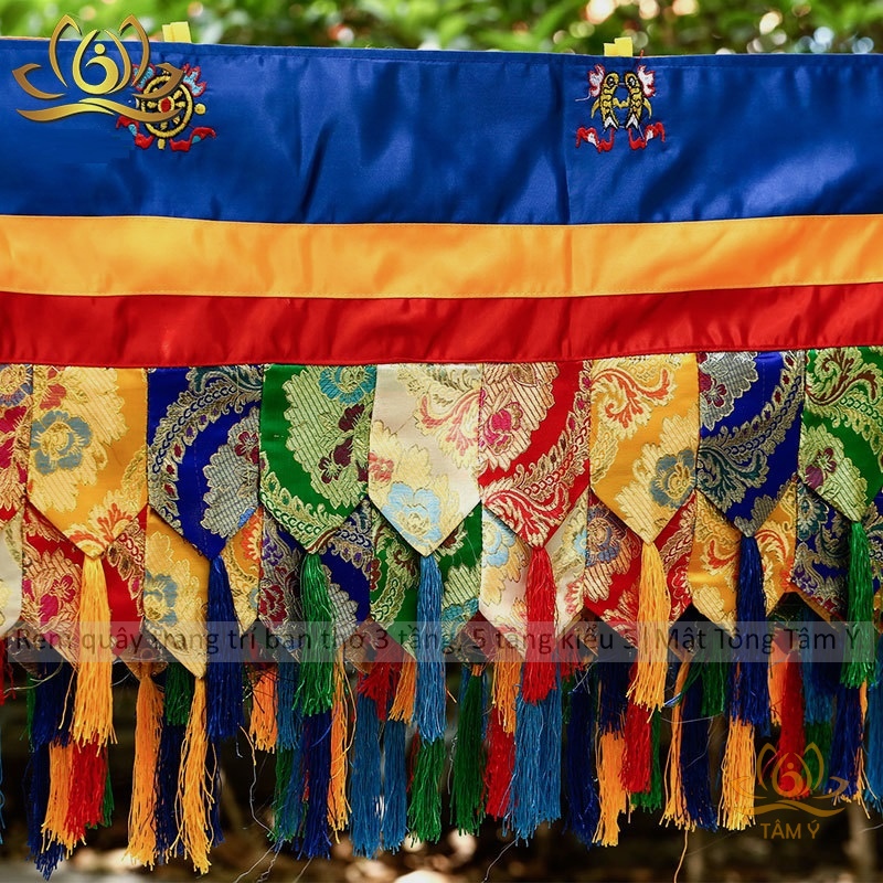 Rèm quây trang trí ban thờ mật tông chất liệu vải gấm thêu Tây Tạng kiểu 5 mật tông Tâm Ý
