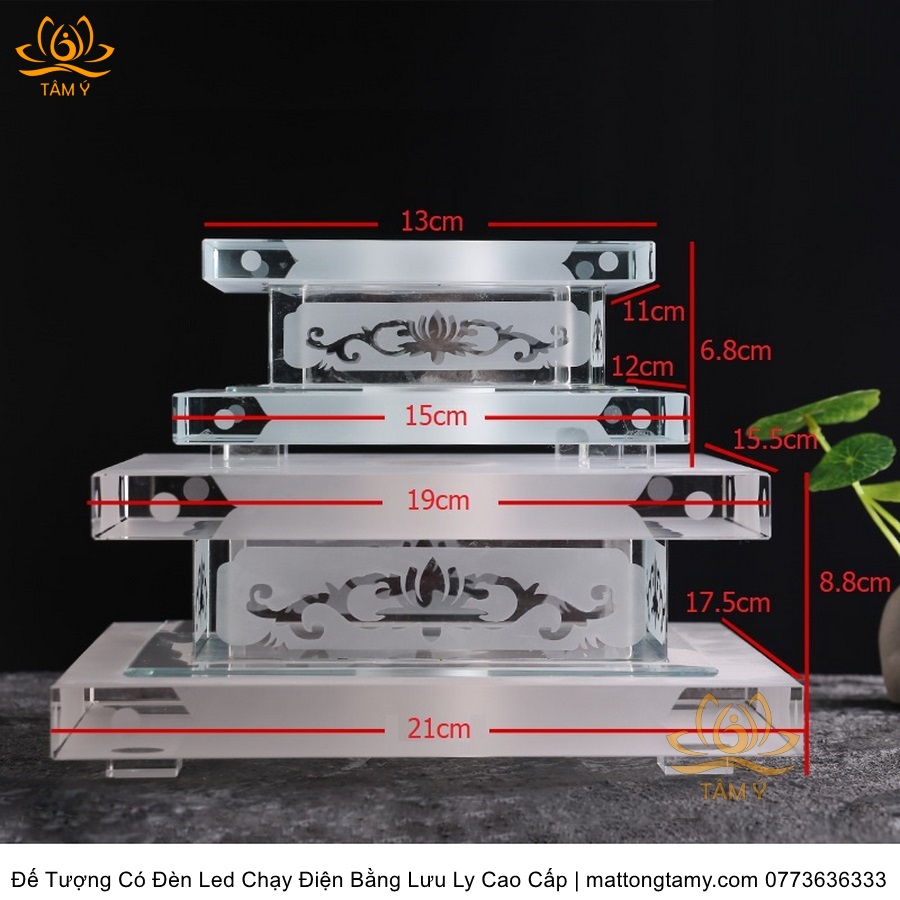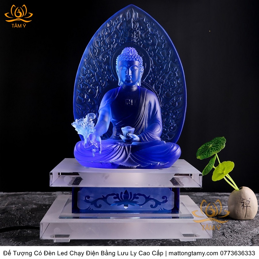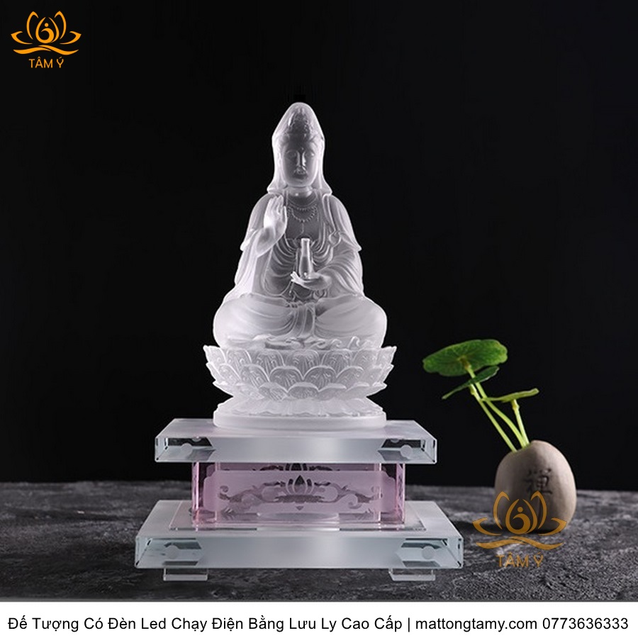 |Rộng 21cm| Đế Tượng Phật - Bồ Tát Có Đèn Led Chạy Điện Trực Tiếp Và Bằng Lưu Ly Cao Cấp Nhiều Màu Sắc Lựa Chọn, Thiết Kế Sang Trọng TP222