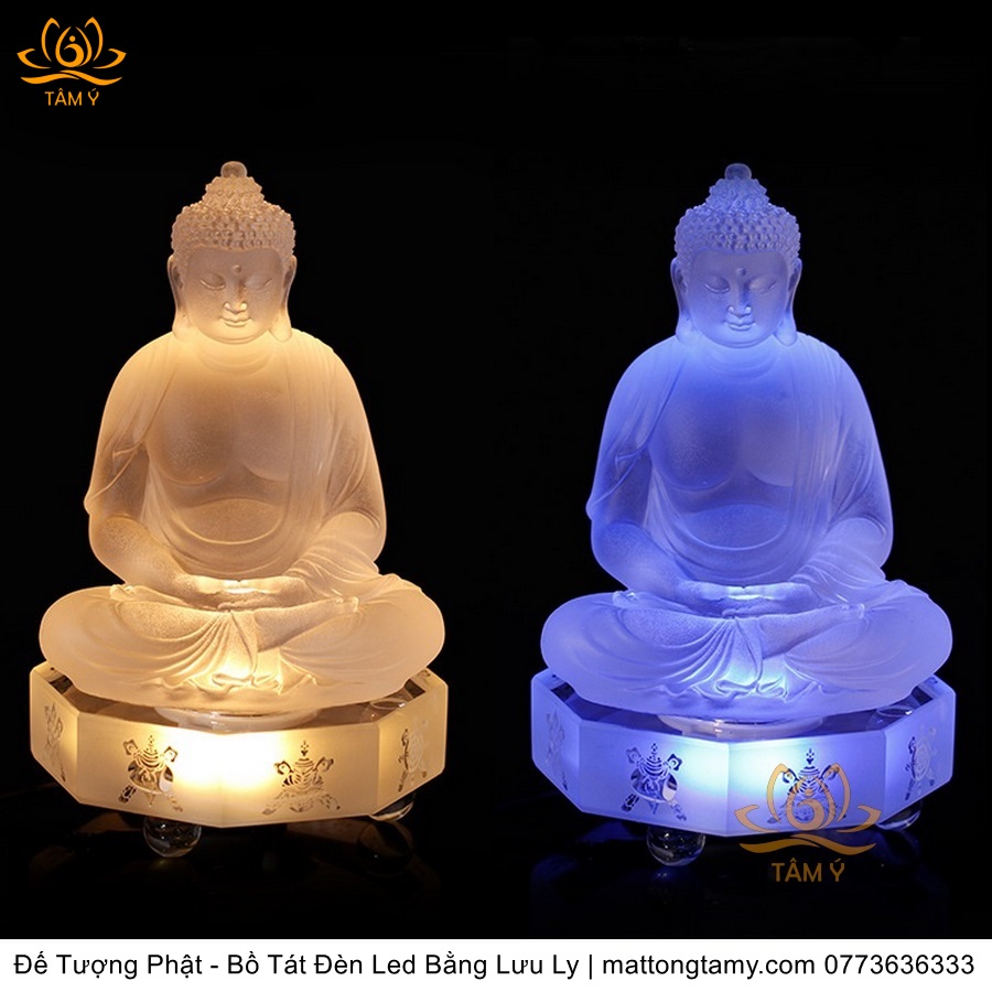 |Rộng 21cm| Đế Tượng Phật - Bồ Tát Có Đèn Led Chạy Điện Trực Tiếp Và Bằng Lưu Ly Cao Cấp Nhiều Màu Sắc Lựa Chọn, Thiết Kế Sang Trọng TP222