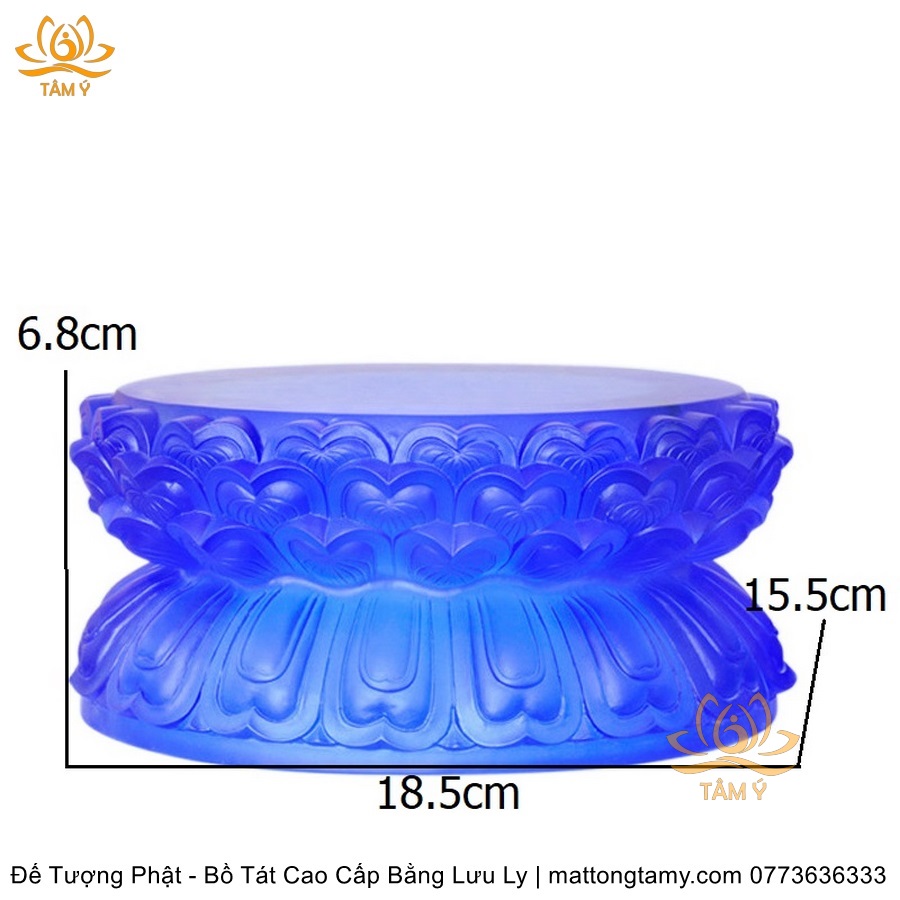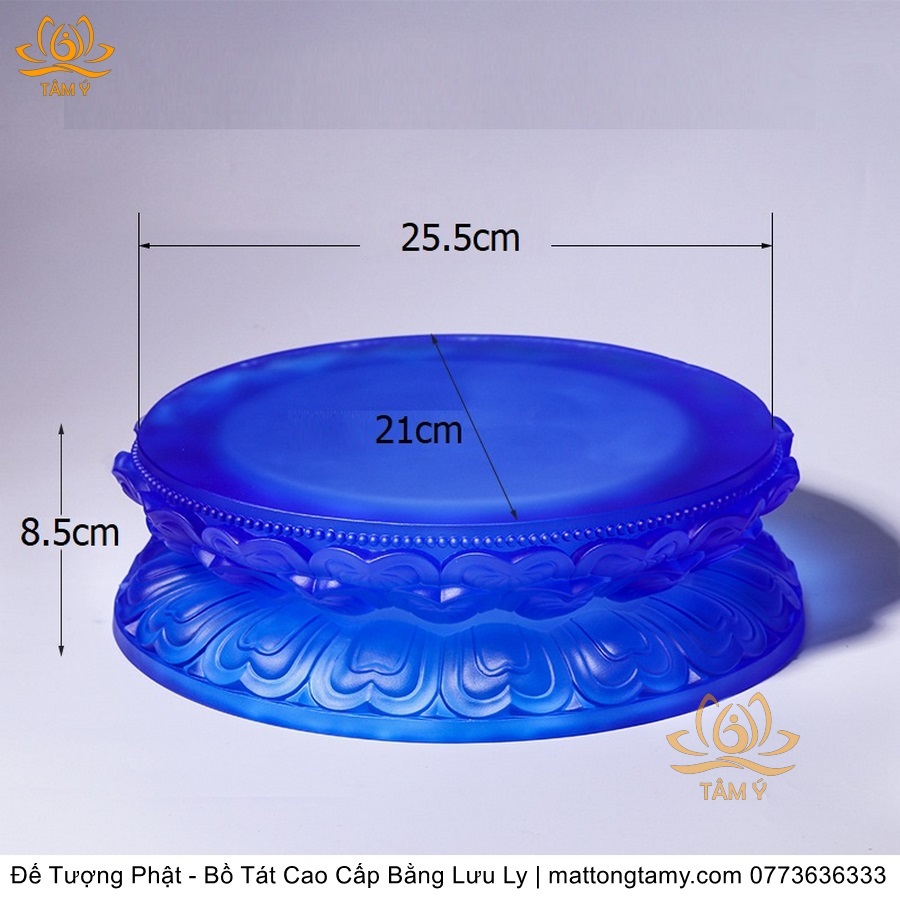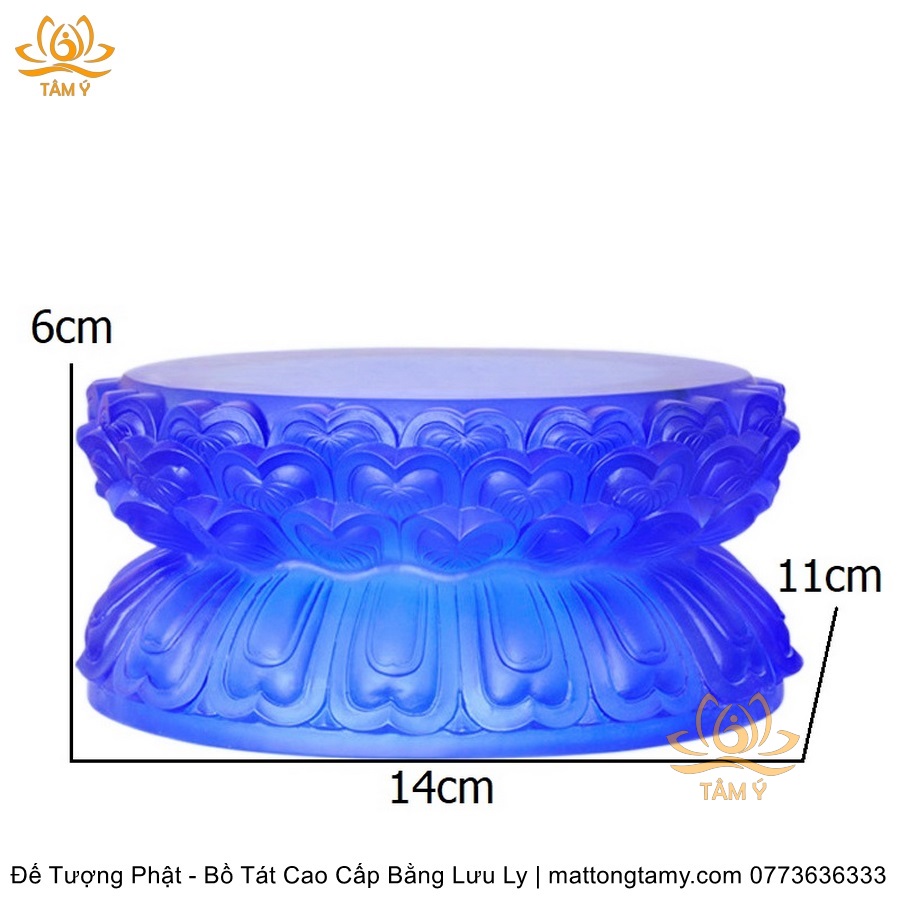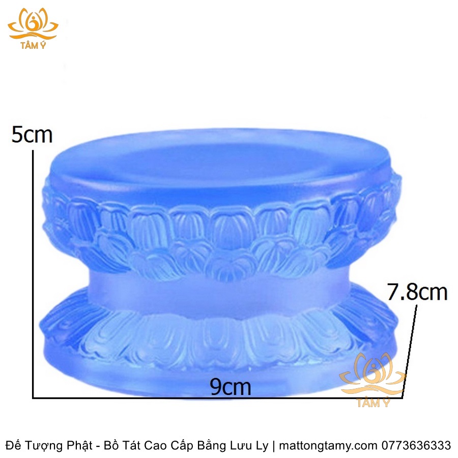 Chất liệu: Lưu Ly Cao Cấp. Phân Loại: Đế tượng. Kích thước: Siêu Nhỏ: Cao 5cm, dài 9cm, rộng 7.8cm. Nhỏ: Cao 6cm, dài 14cm, rộng 11cm. Vừa: Cao 6.8cm, dài 18.5cm, rộng 15.5cm. Lớn: Cao 7cm, dài 22.5cm, rộng 18cm. Siêu Lớn: Cao 8.5cm, dài 27.5cm, rộng 23cm. Siêu Siêu Lớn: Cao 10.5cm, dài 34cm, rộng 29cm. Màu sắc: xanh dương, xanh lá, hổ phách, trắng.