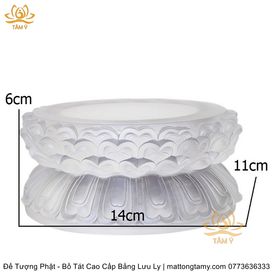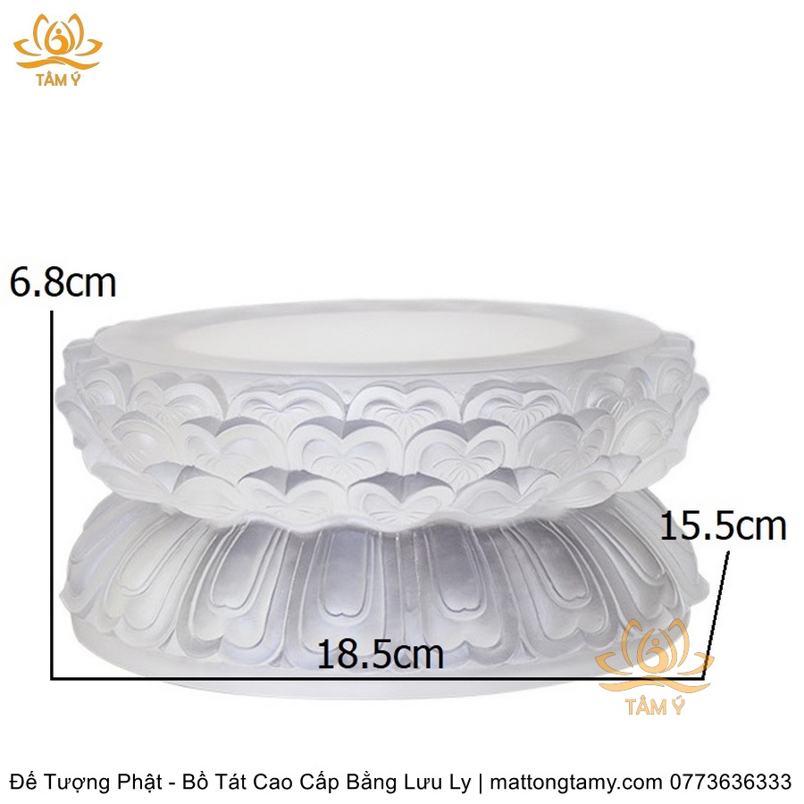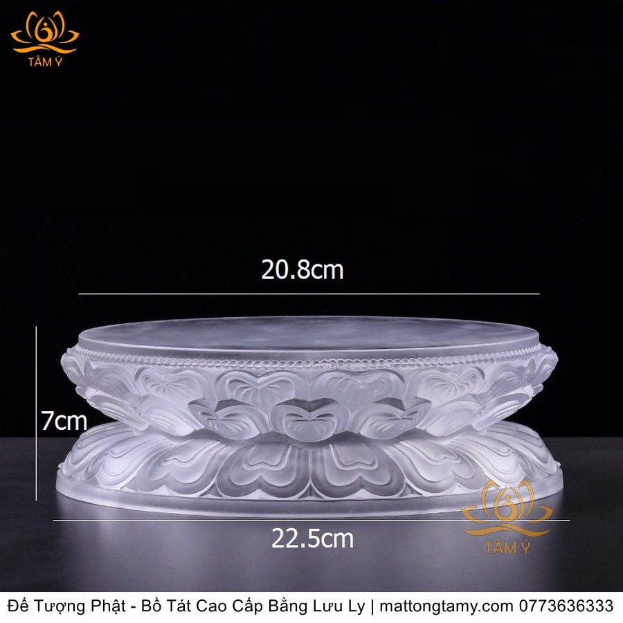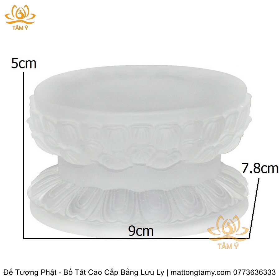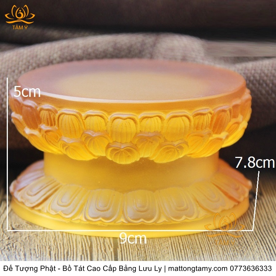 Chất liệu: Lưu Ly Cao Cấp. Phân Loại: Đế tượng. Kích thước: Siêu Nhỏ: Cao 5cm, dài 9cm, rộng 7.8cm. Nhỏ: Cao 6cm, dài 14cm, rộng 11cm. Vừa: Cao 6.8cm, dài 18.5cm, rộng 15.5cm. Lớn: Cao 7cm, dài 22.5cm, rộng 18cm. Siêu Lớn: Cao 8.5cm, dài 27.5cm, rộng 23cm. Siêu Siêu Lớn: Cao 10.5cm, dài 34cm, rộng 29cm. Màu sắc: xanh dương, xanh lá, hổ phách, trắng.
