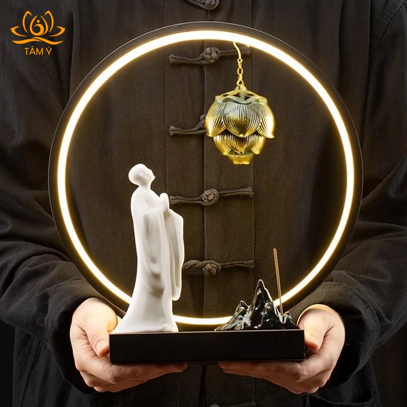 Thác Khói Trầm Hương Tịnh Tâm Liên cao cấp khi kết hợp với nhang trầm nụ là một tuyệt tác nghệ thuật. Sản phẩm đem đến tính thẩm mỹ cao, thích hợp cho mọi không gian (nhà ở, văn phòng v.v). Với chất liệu gốm sứ tráng men cao cấp, cùng với đèn led sáng kết hợp với các mẫu tiểu cảnh chú tiểu cùng dòng khói chảy từ viên trầm nụ xuống. Cả hai hòa cùng nhau tạo nên không gian thưởng trầm vô cùng lý tưởng.