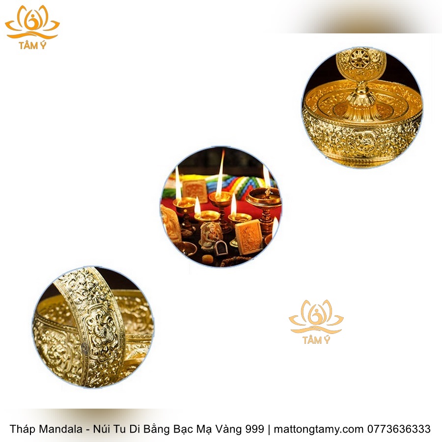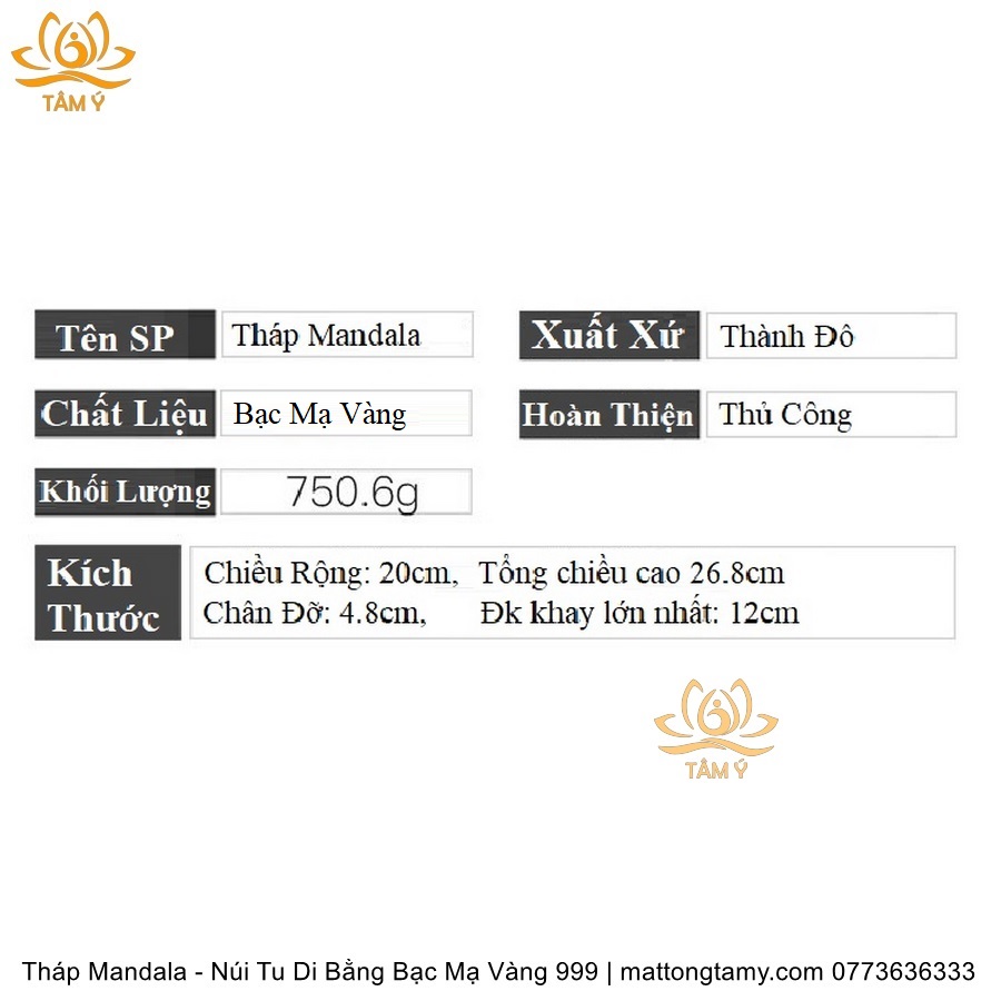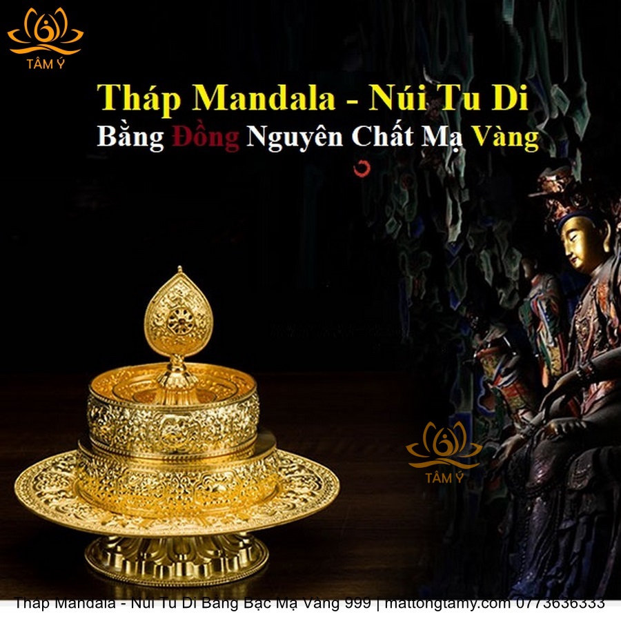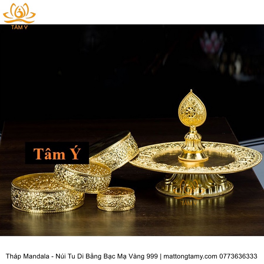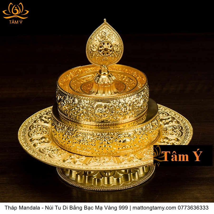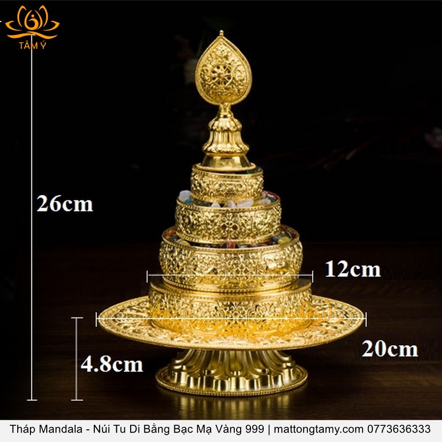 Tháp Madala - Núi Tu Di Bằng Bạc Nguyên Chất Mạ Vàng 999 Sang Trọng TMDL02