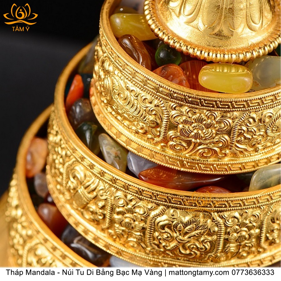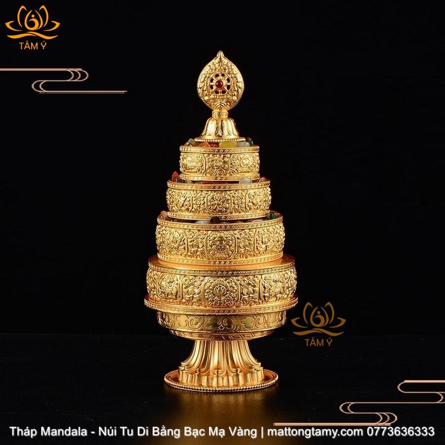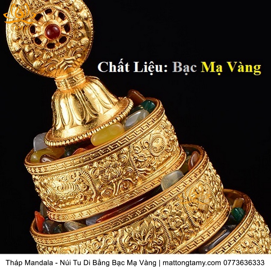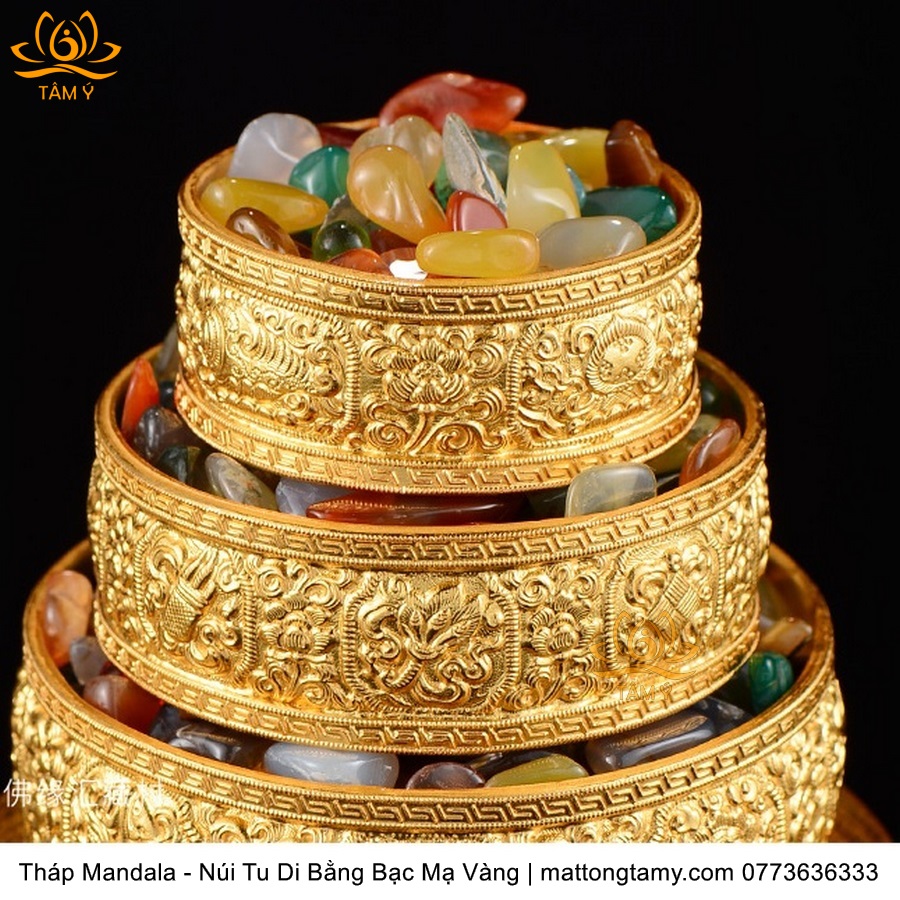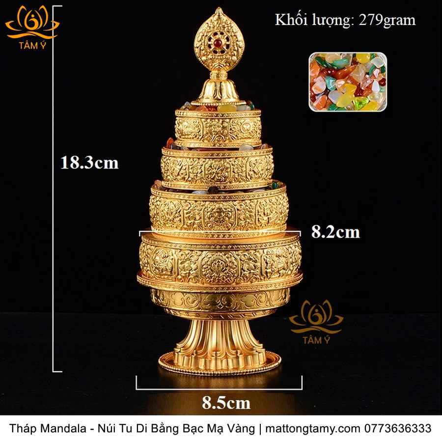 Tháp Madala - Núi Tu Di, Bằng Bạc Nguyên Chất Mạ Vàng, Thiết Kế Sang Trọng Bắt Mắt TMDL34