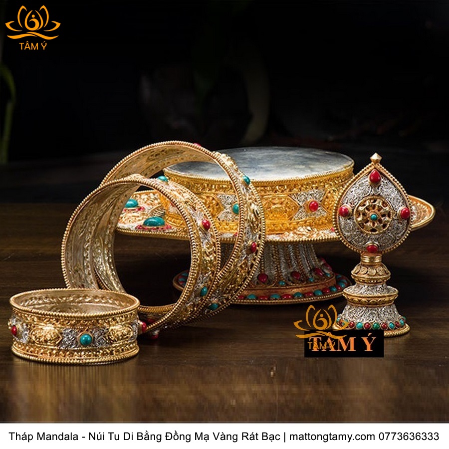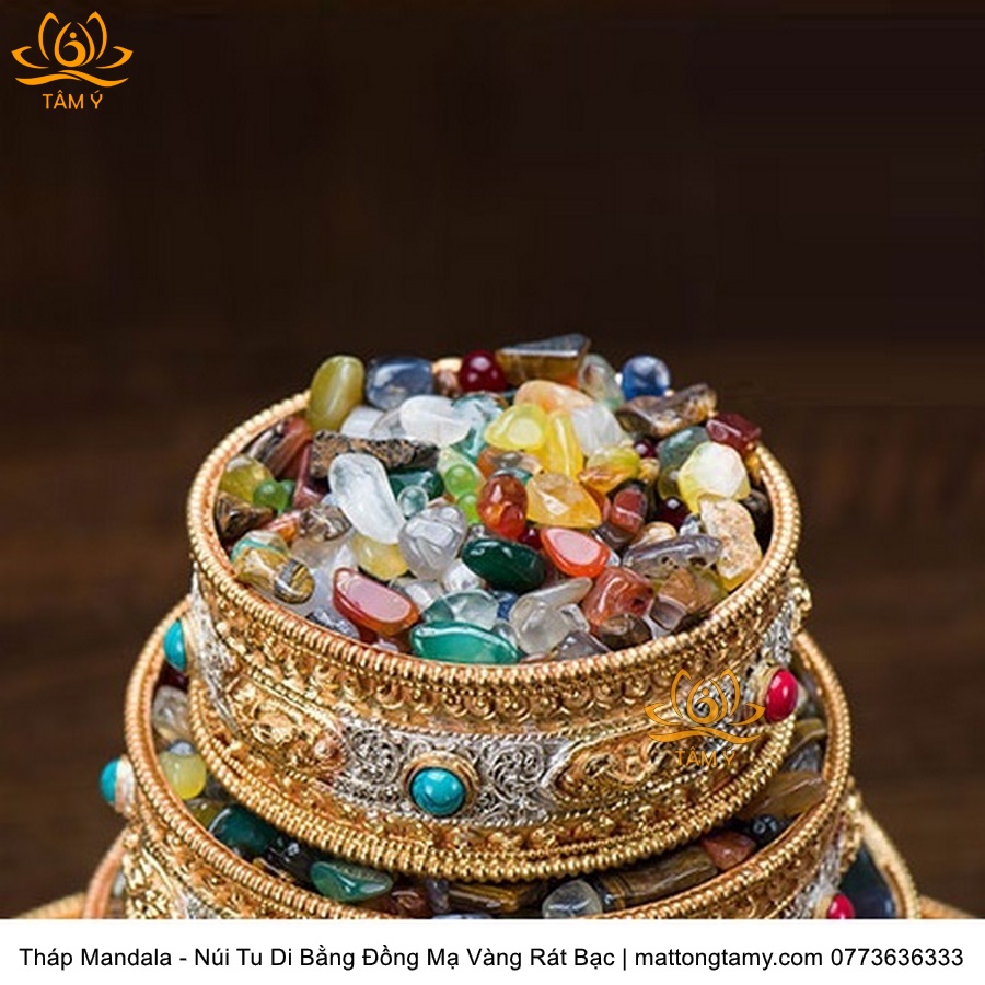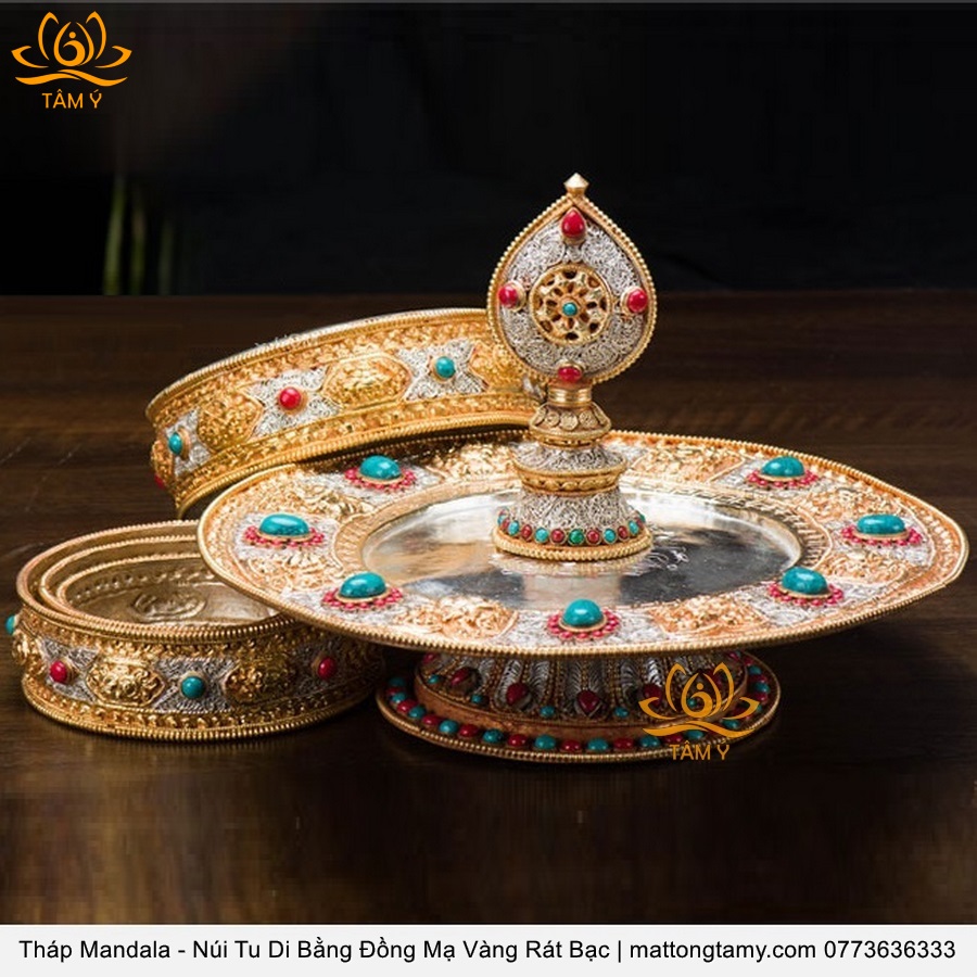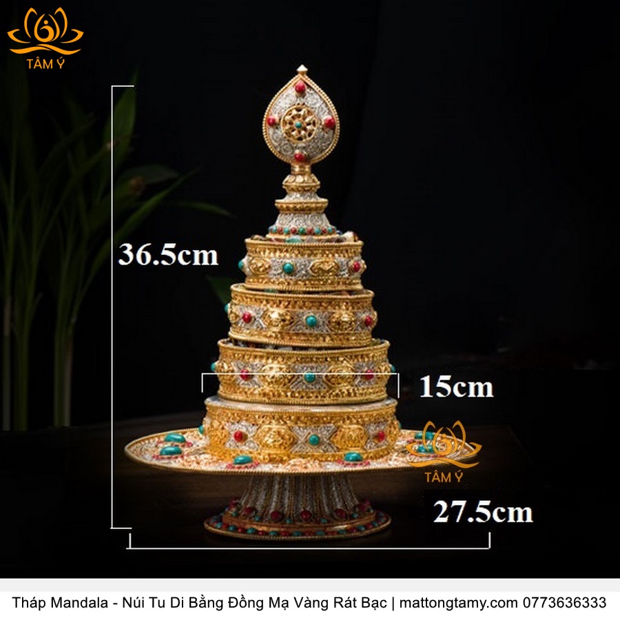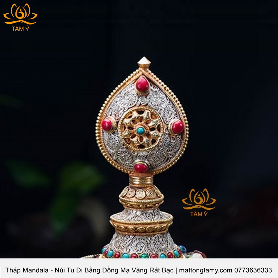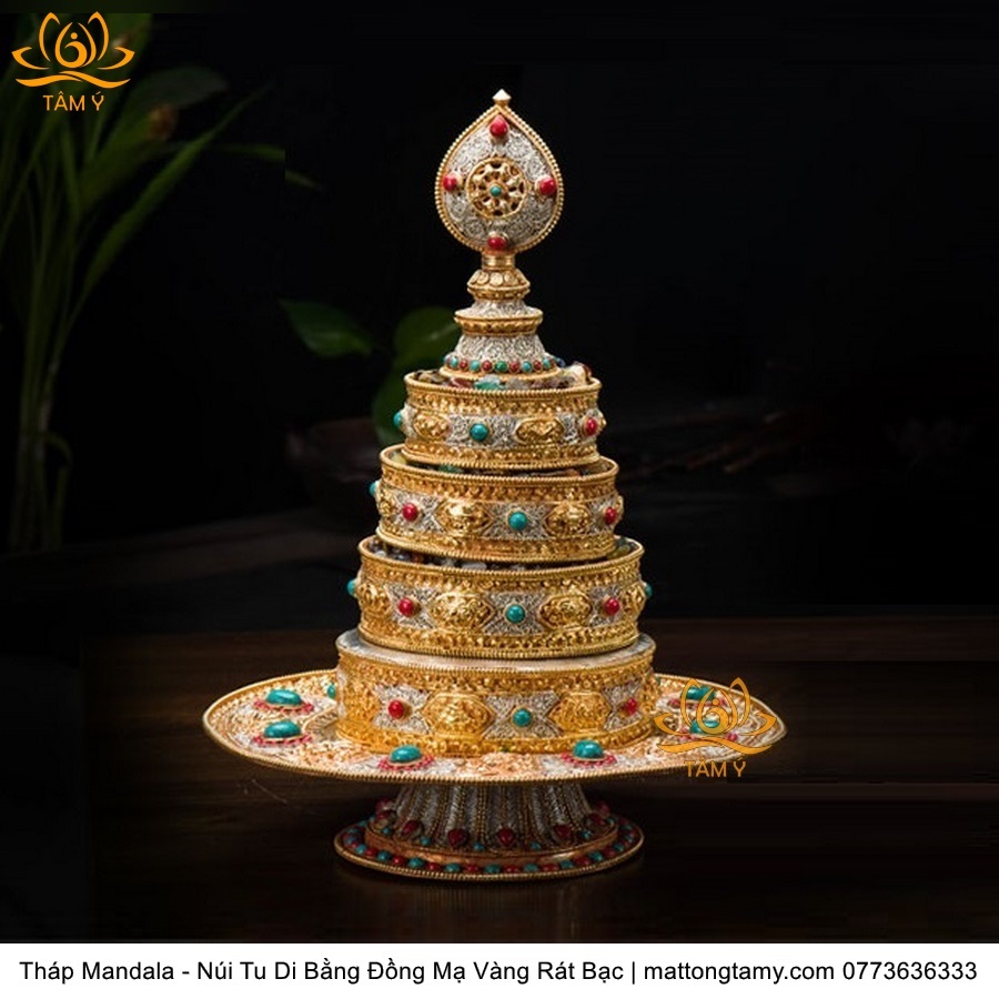 Tháp Madala - Núi Tu Di, Bằng Đồng Nguyên Chất Rát Bạc Mạ Vàng, Thiết Kế Sang Trọng TMDL41