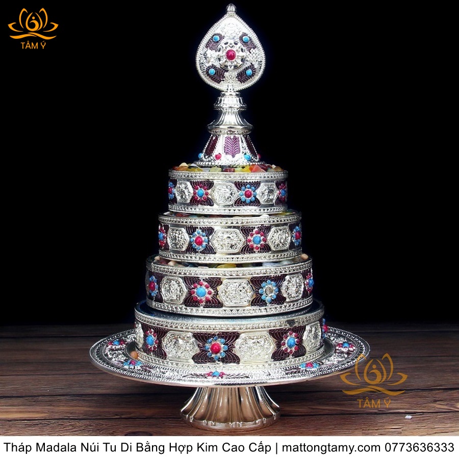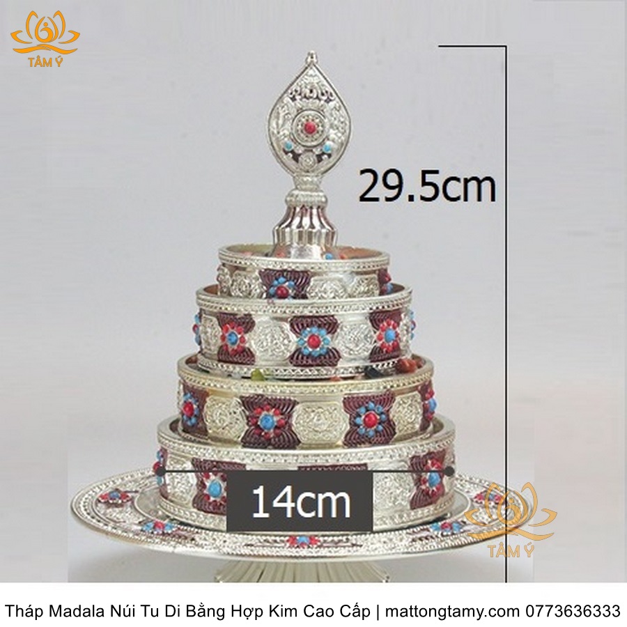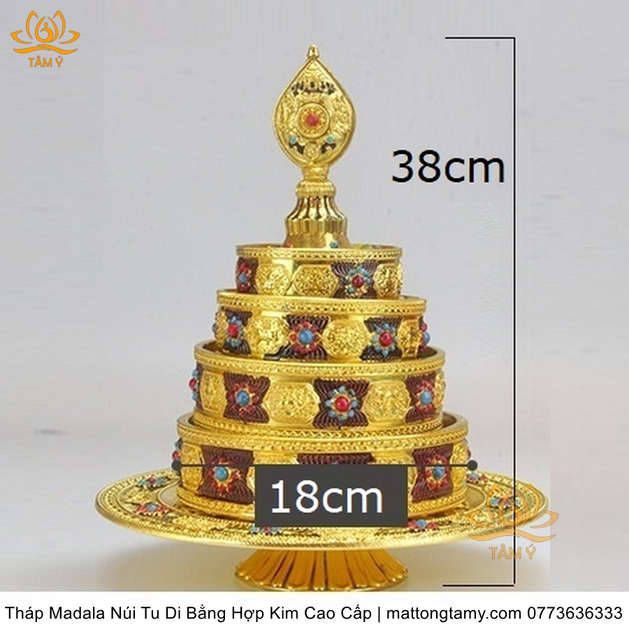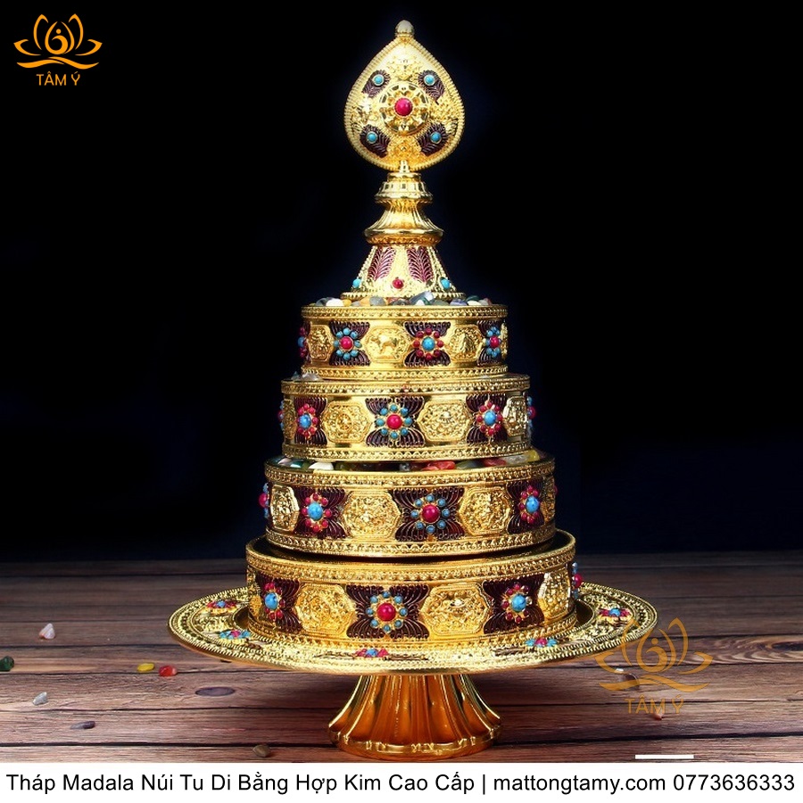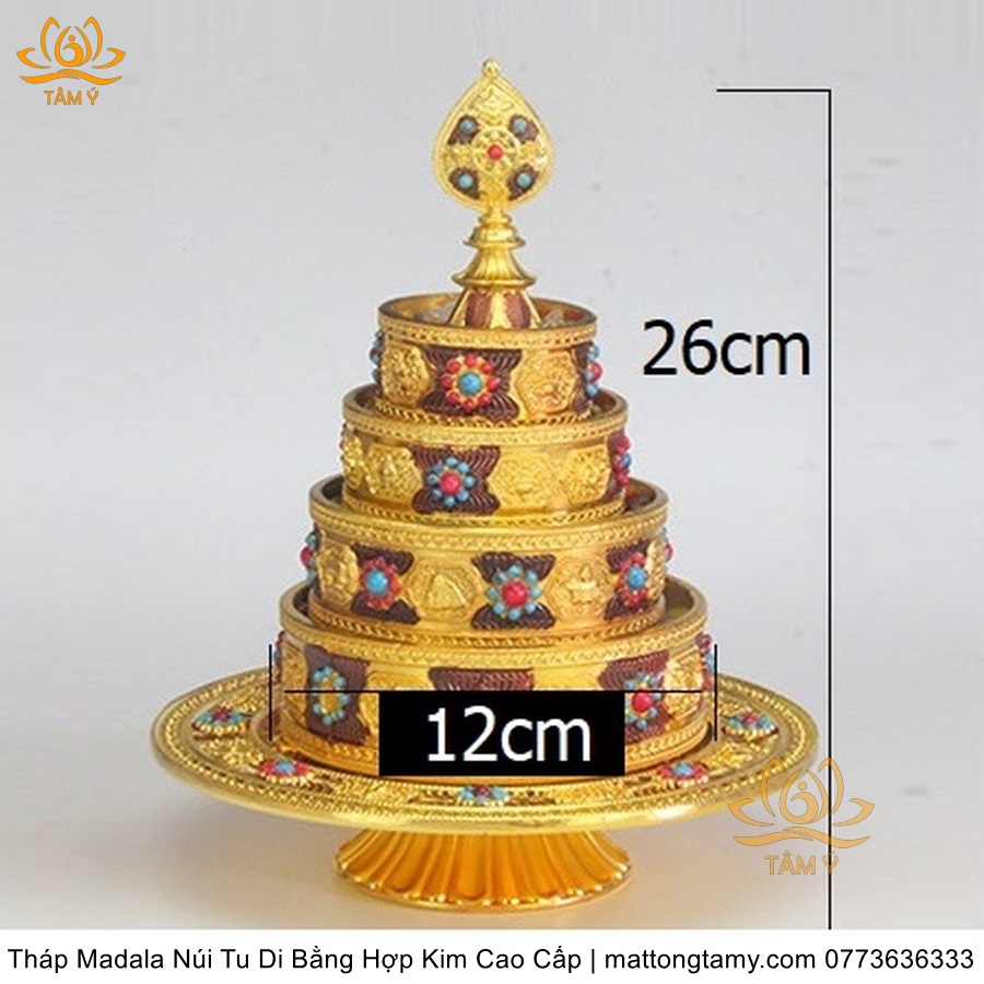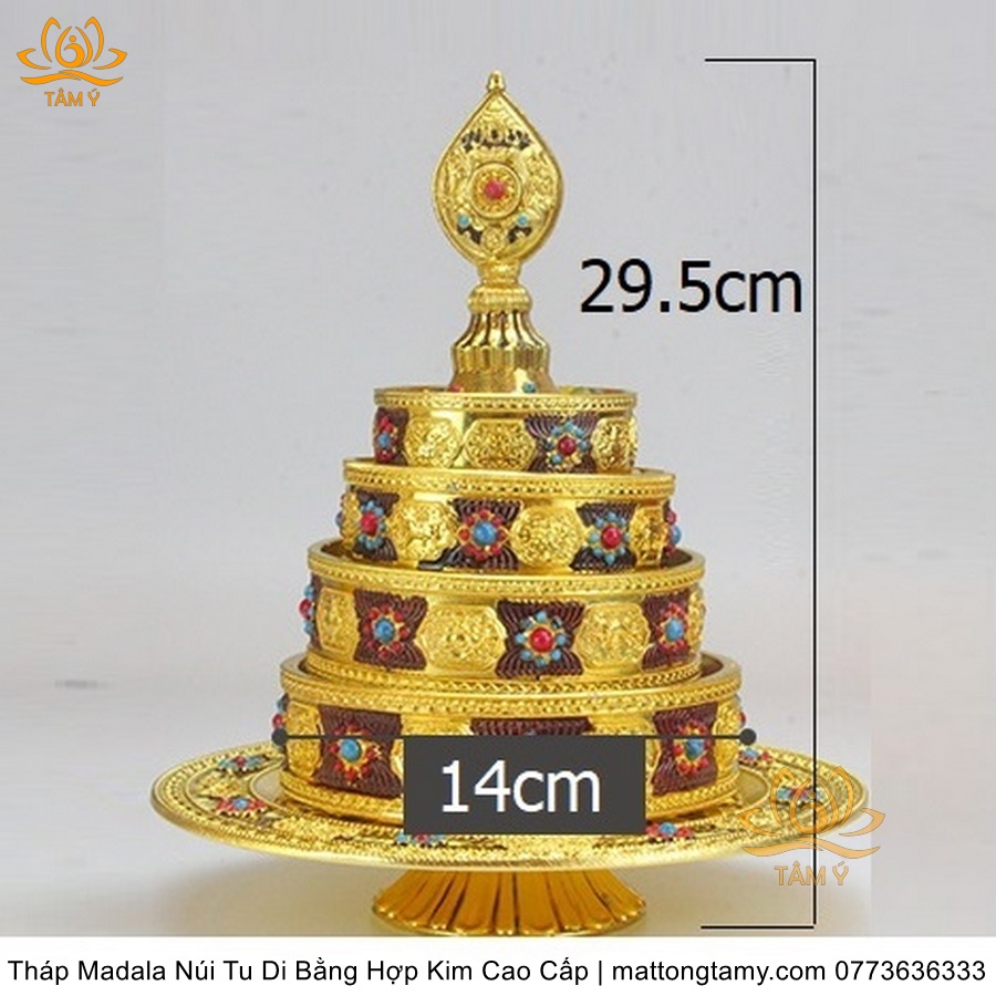 Tháp Madala - Núi Tu Di bằng hợp kim - vật phẩm ban thờ mật tông chất lượng cao TMDL140