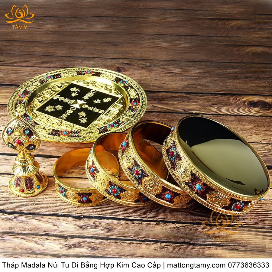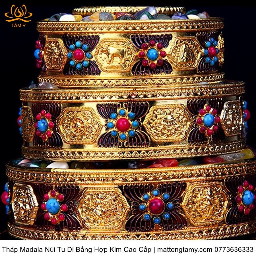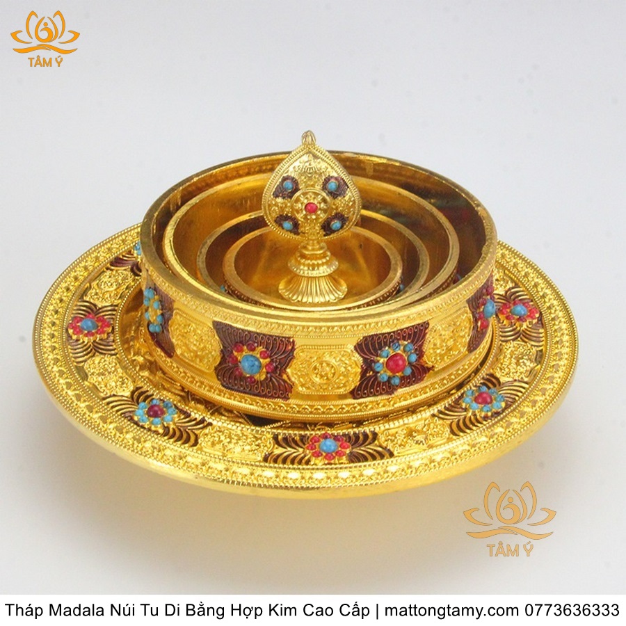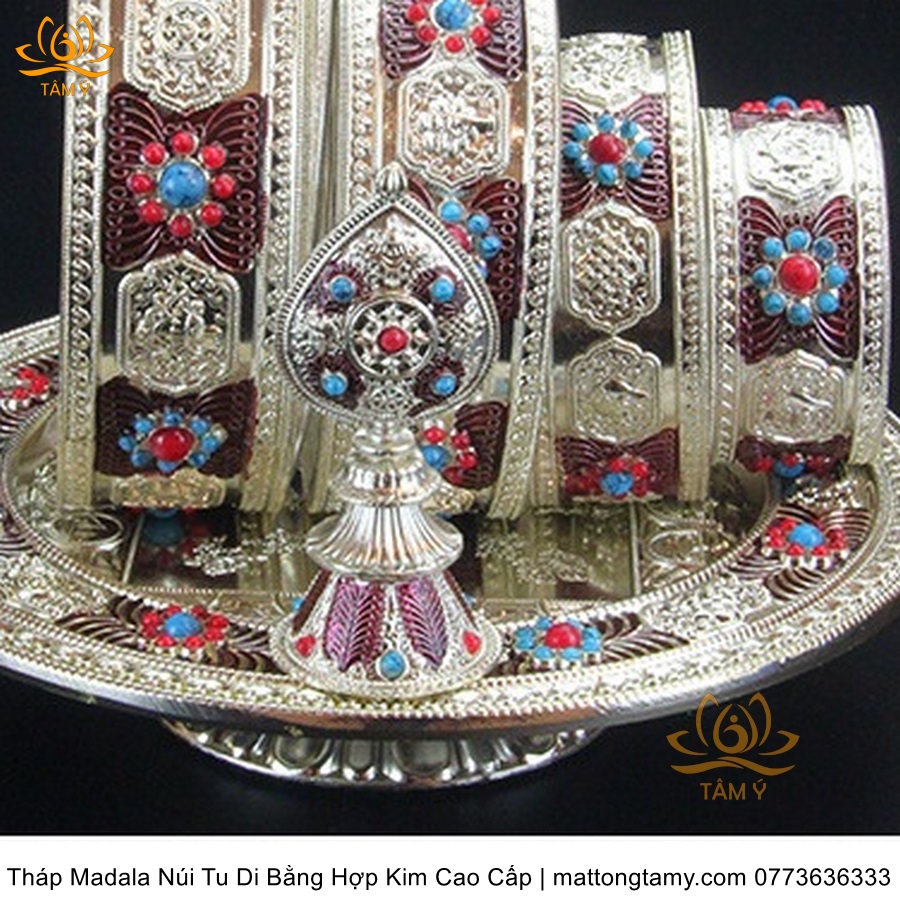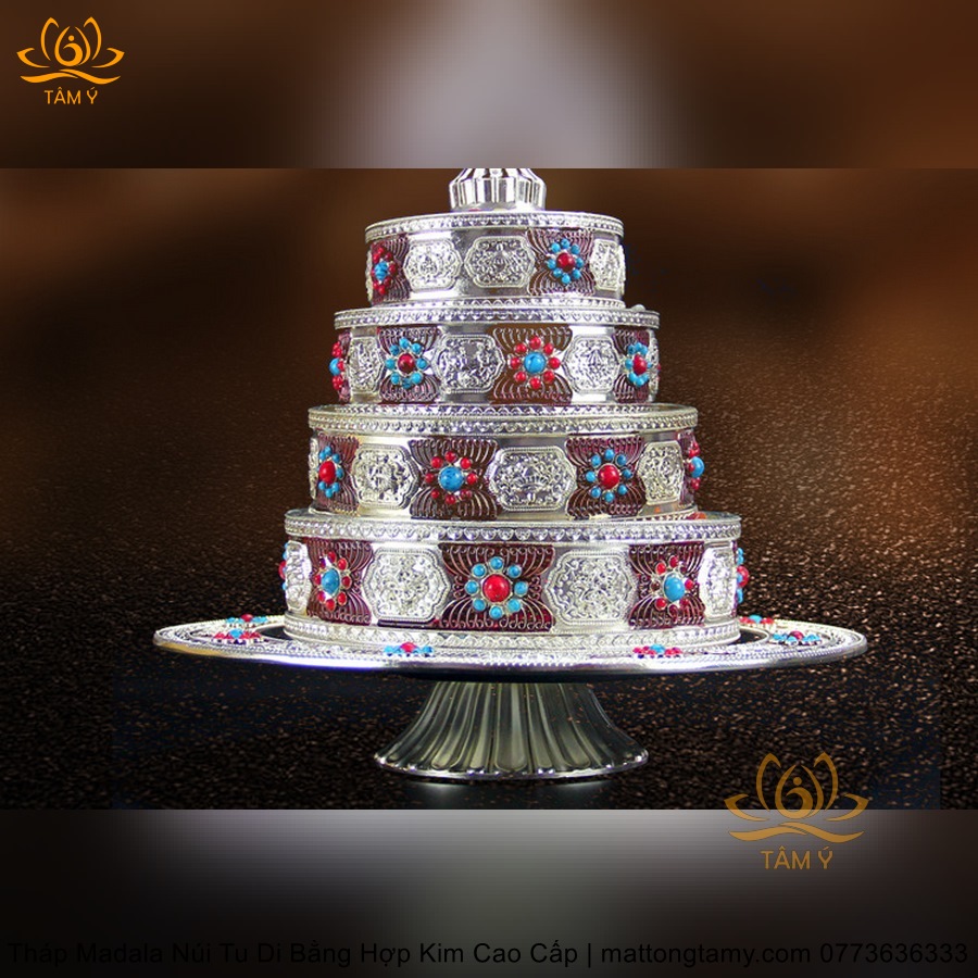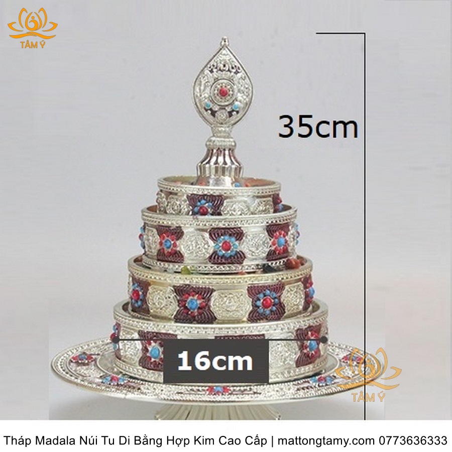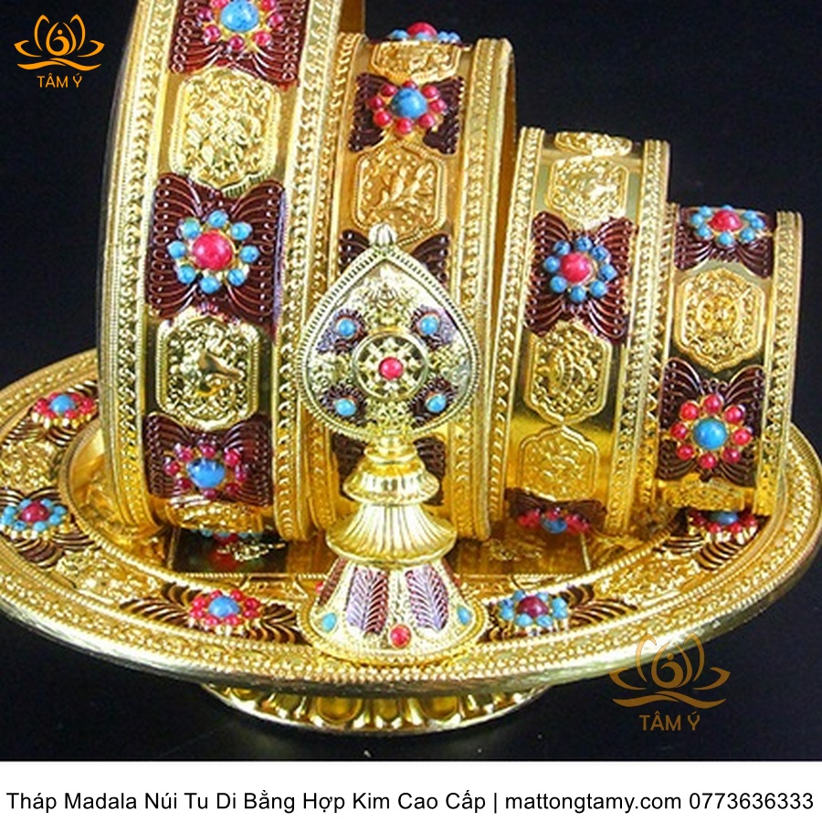 Tháp Madala - Núi Tu Di bằng hợp kim - vật phẩm ban thờ mật tông chất lượng cao TMDL140