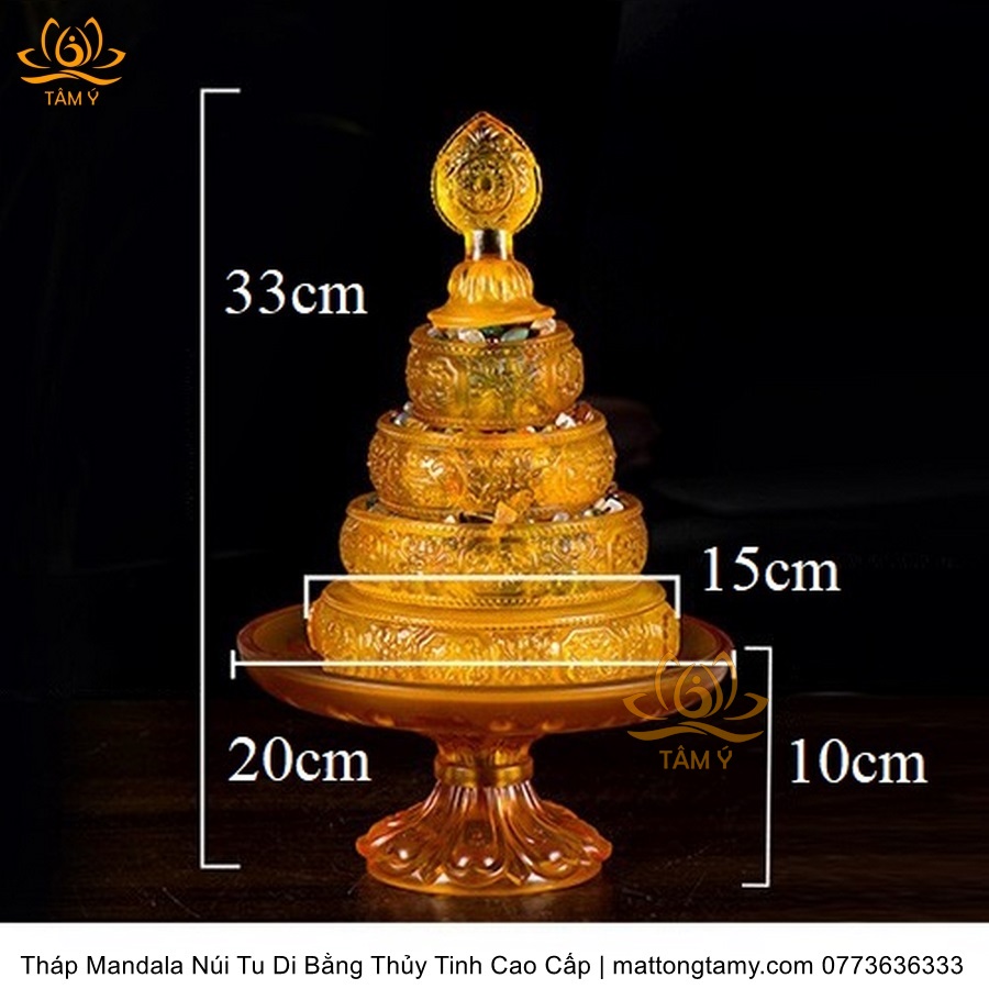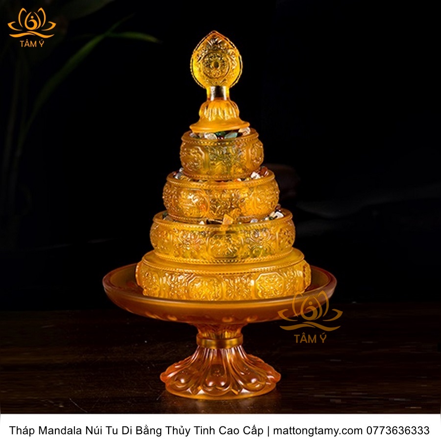 Tháp Madala - Núi Tu Di, Bằng Thủy Tinh Cao Cấp Màu Vàng, Thiết Kế Độc Đáo Sang Trọng TMDL118