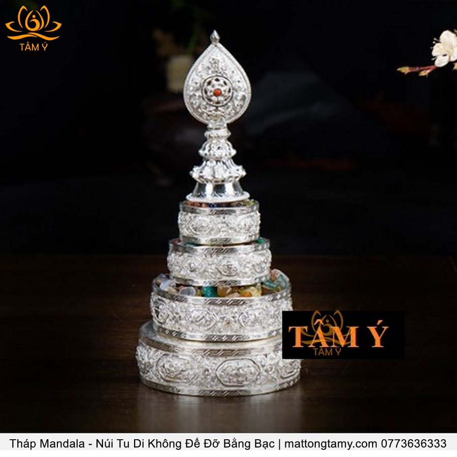 Tháp Madala - Núi Tu Di Không Đế Đỡ Bằng Bạc Nguyên Chất Sang Trọng TMDL24