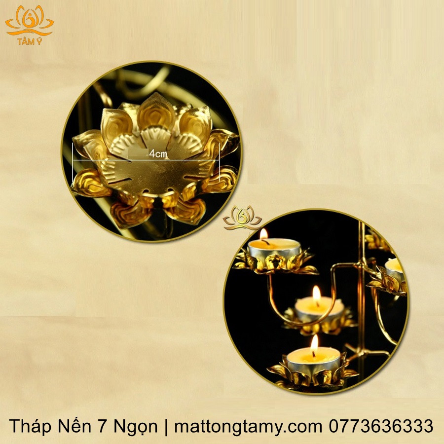 Cao 3 tầng, có 7 ô nến, mỗi ô là 1 bông sen có 2 lớp cánh có thể tùy chỉnh cánh hoa rất đẹp