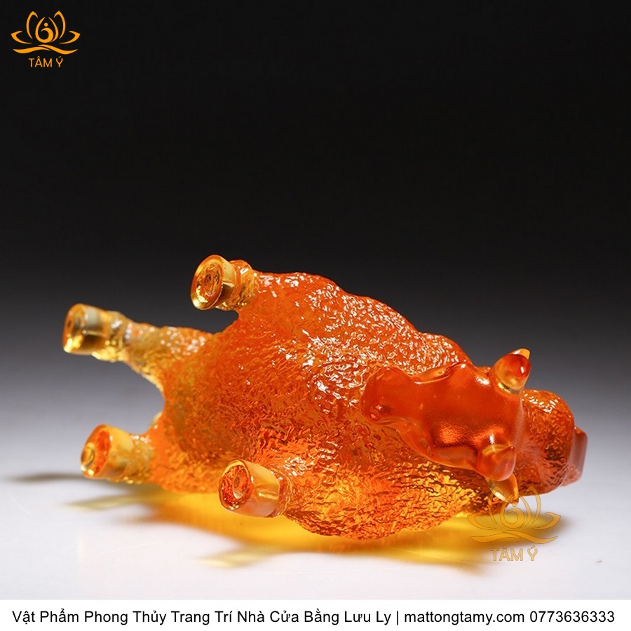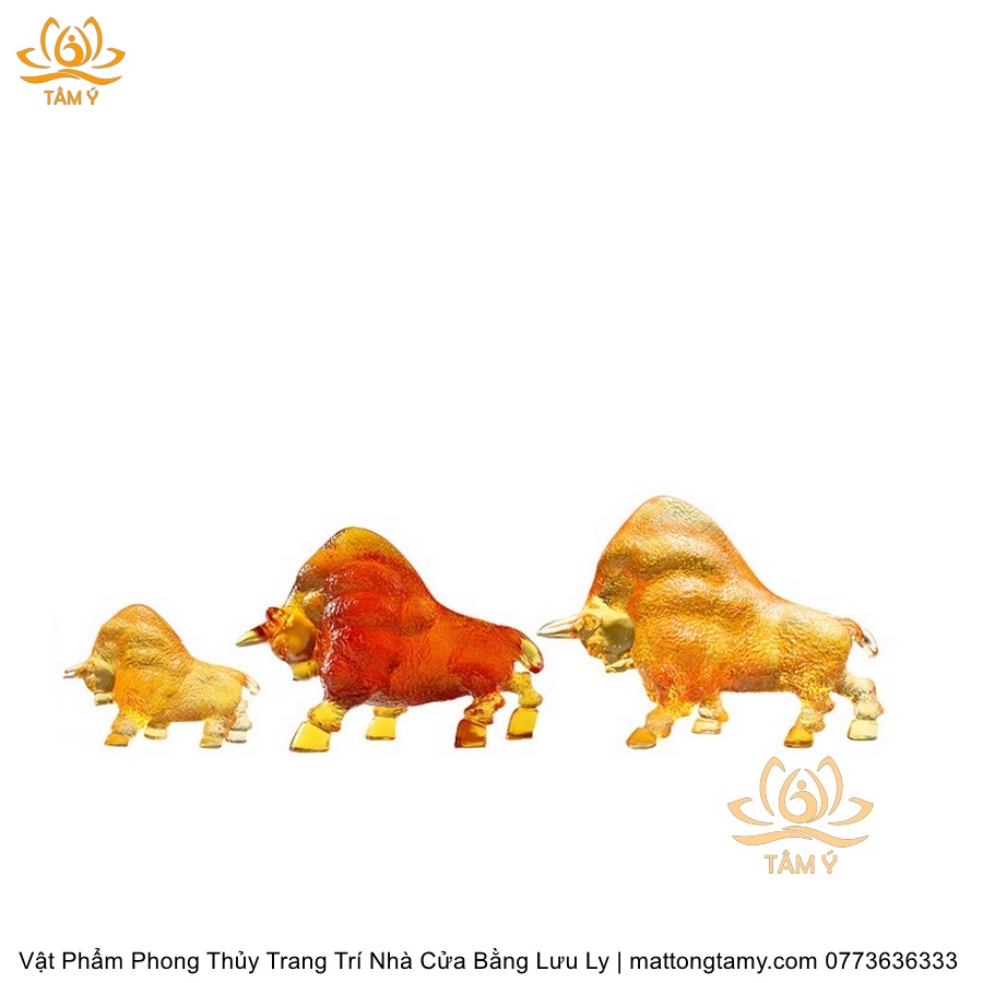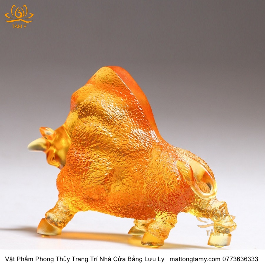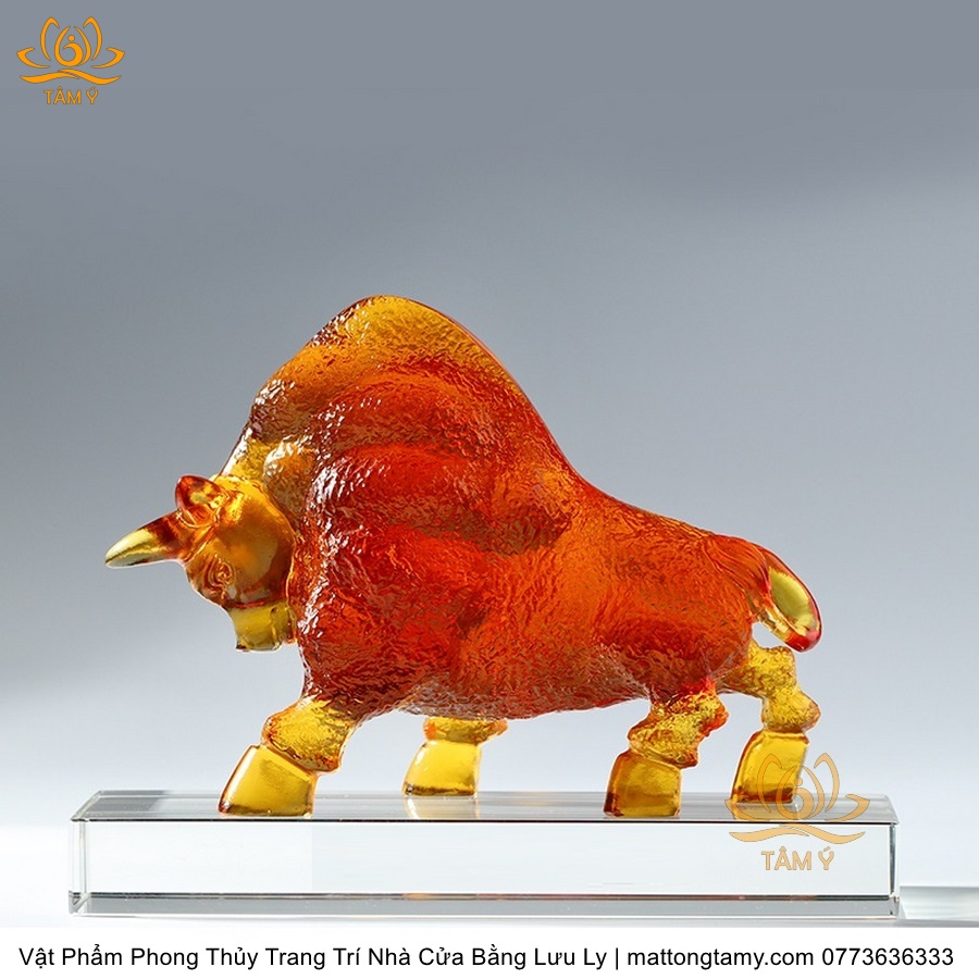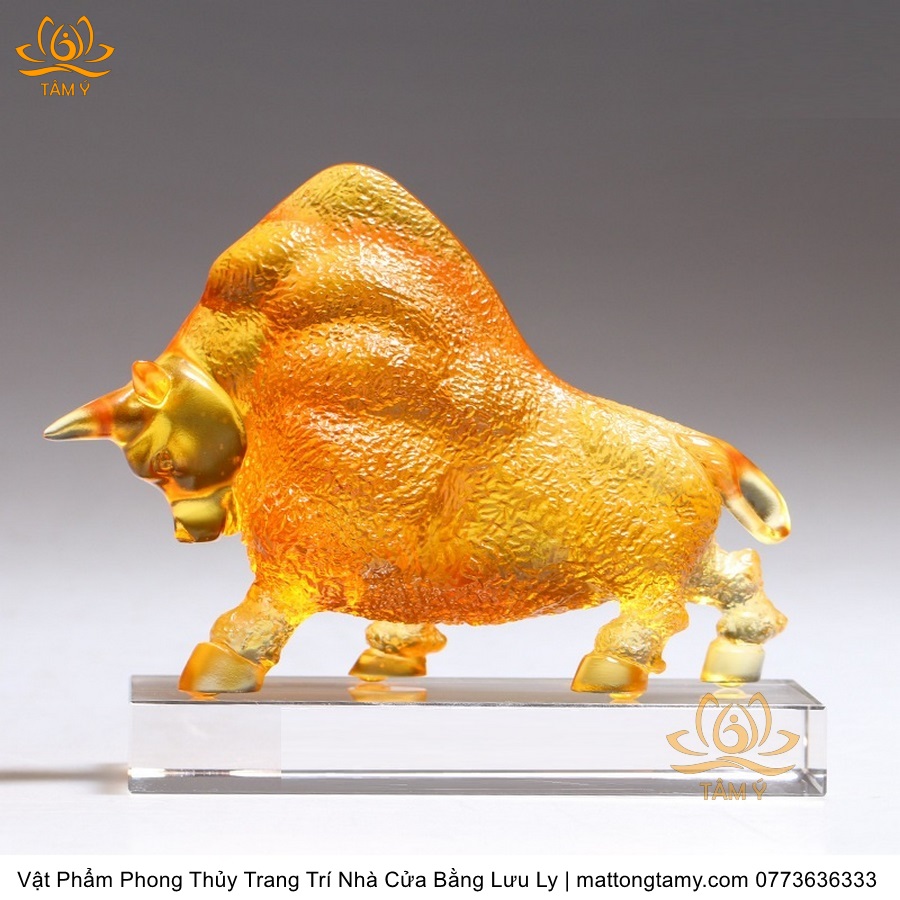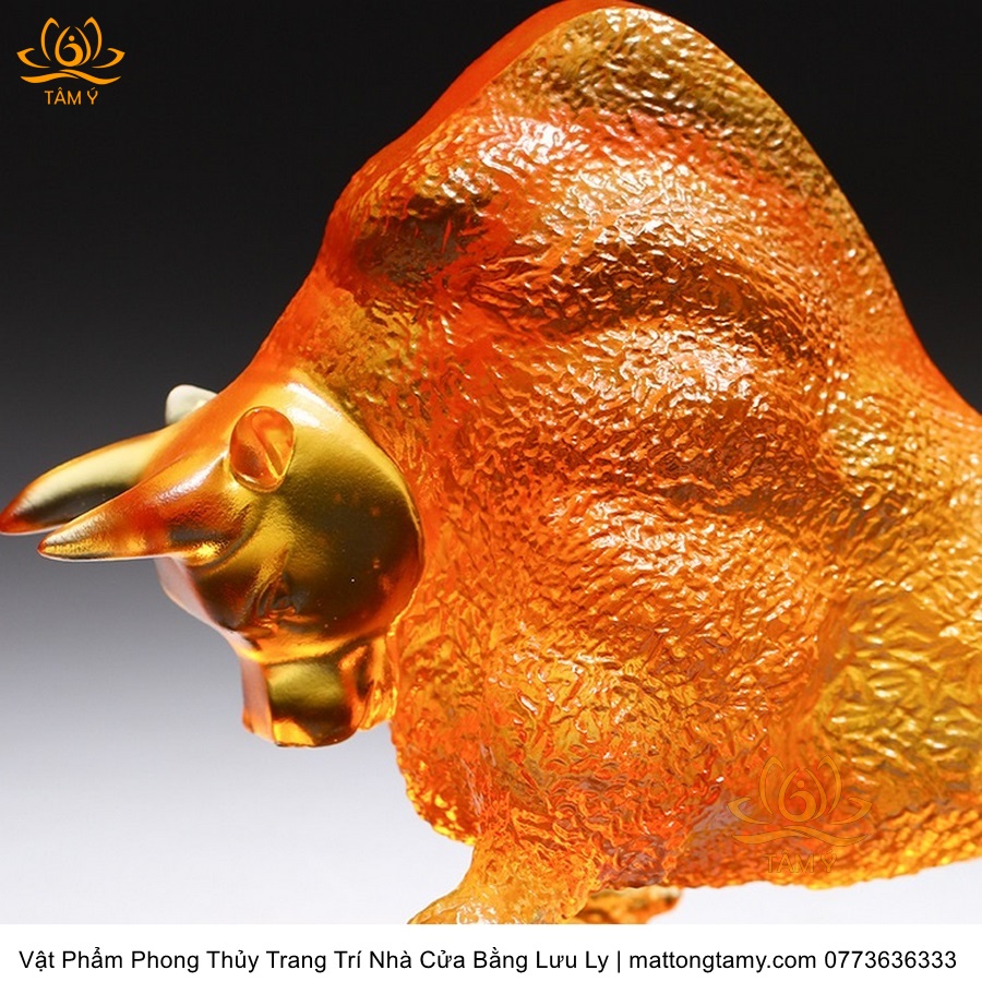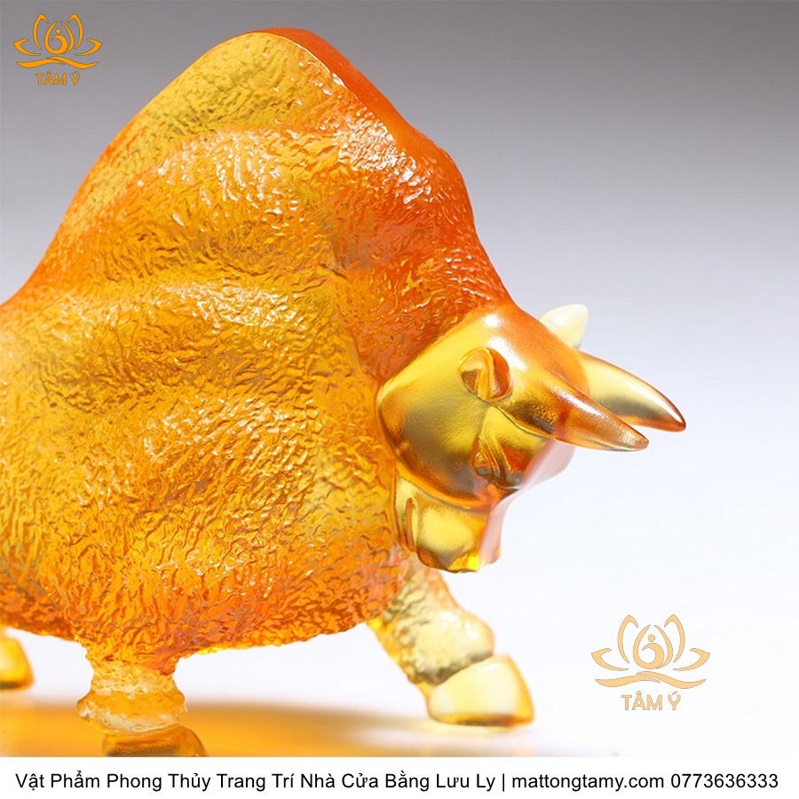 Tượng Bò Tót To Khỏe Màu Hổ Phách Bằng Lưu Ly Cao Cấp Vật Phẩm Phong Thủy Trang Trí Nhà Cửa DTT263