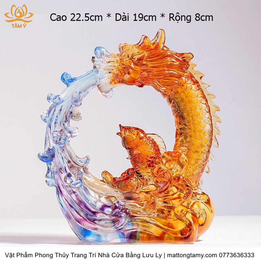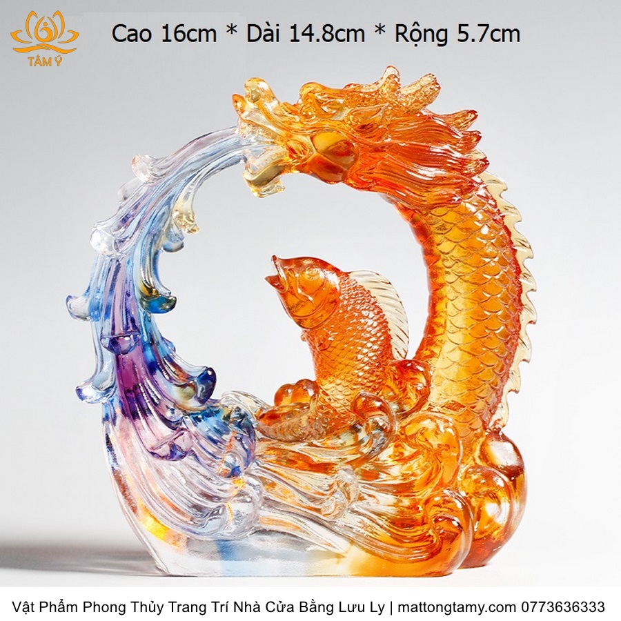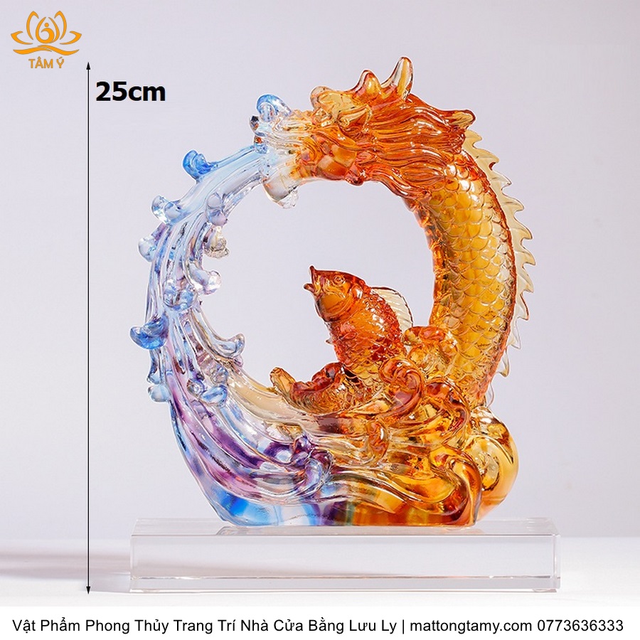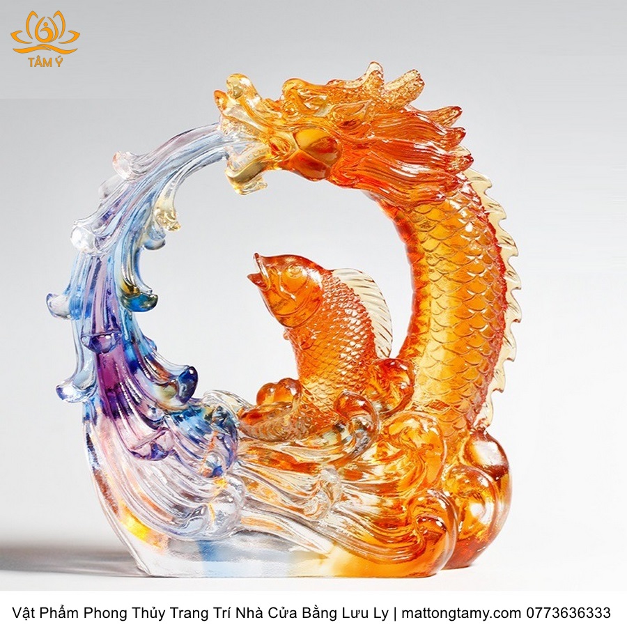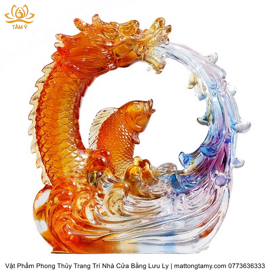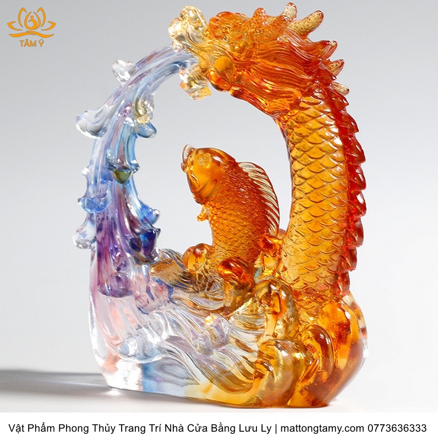 Tượng Cá Chép Hóa Rồng Bằng Lưu Ly Cao Cấp Vật Phẩm Phong Thủy Trang Trí Nhà Cửa DTT221