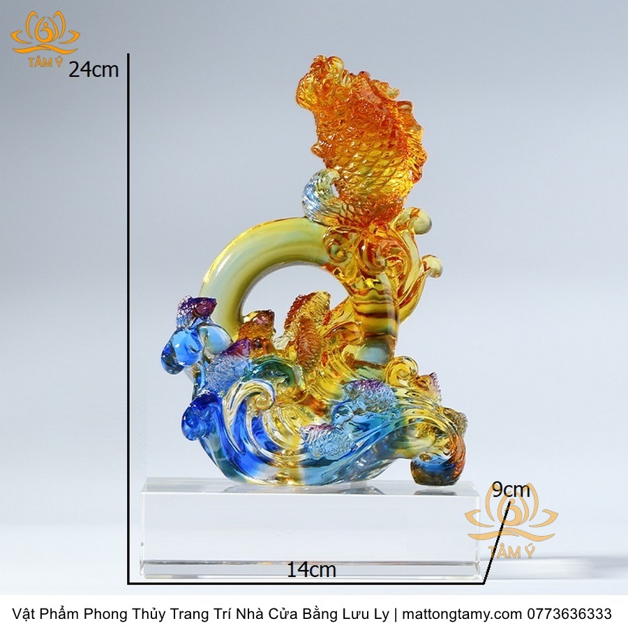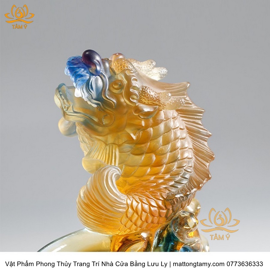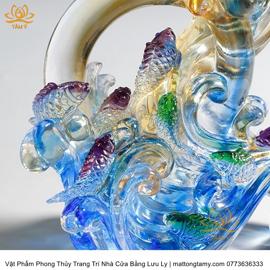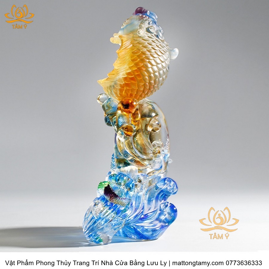 Tượng Cá Chép Hóa Rồng Vật Phẩm Phong Thủy Trang Trí Nhà Cửa Bằng Lưu Ly Cao Cấp DTT180
