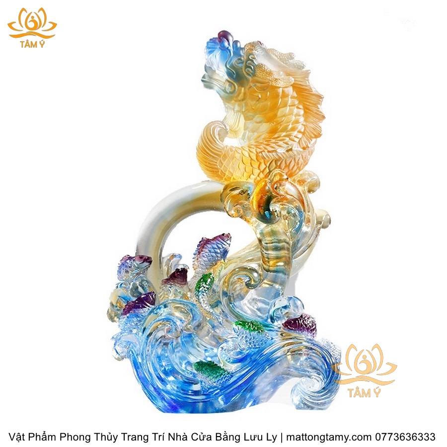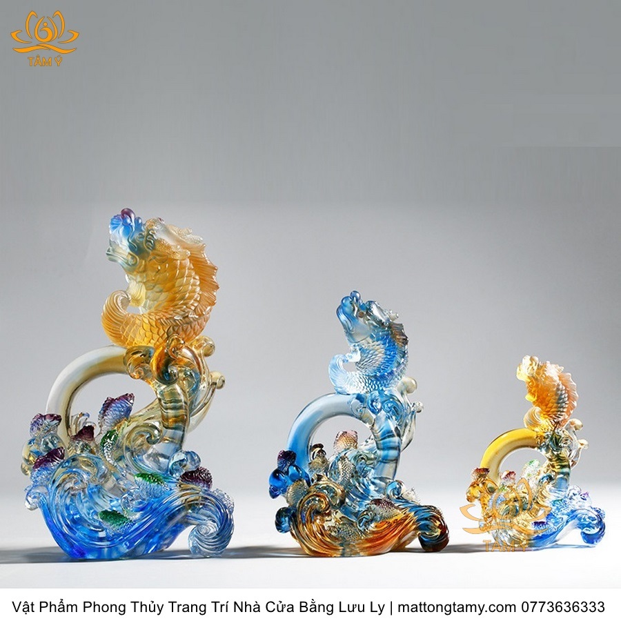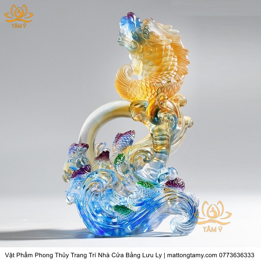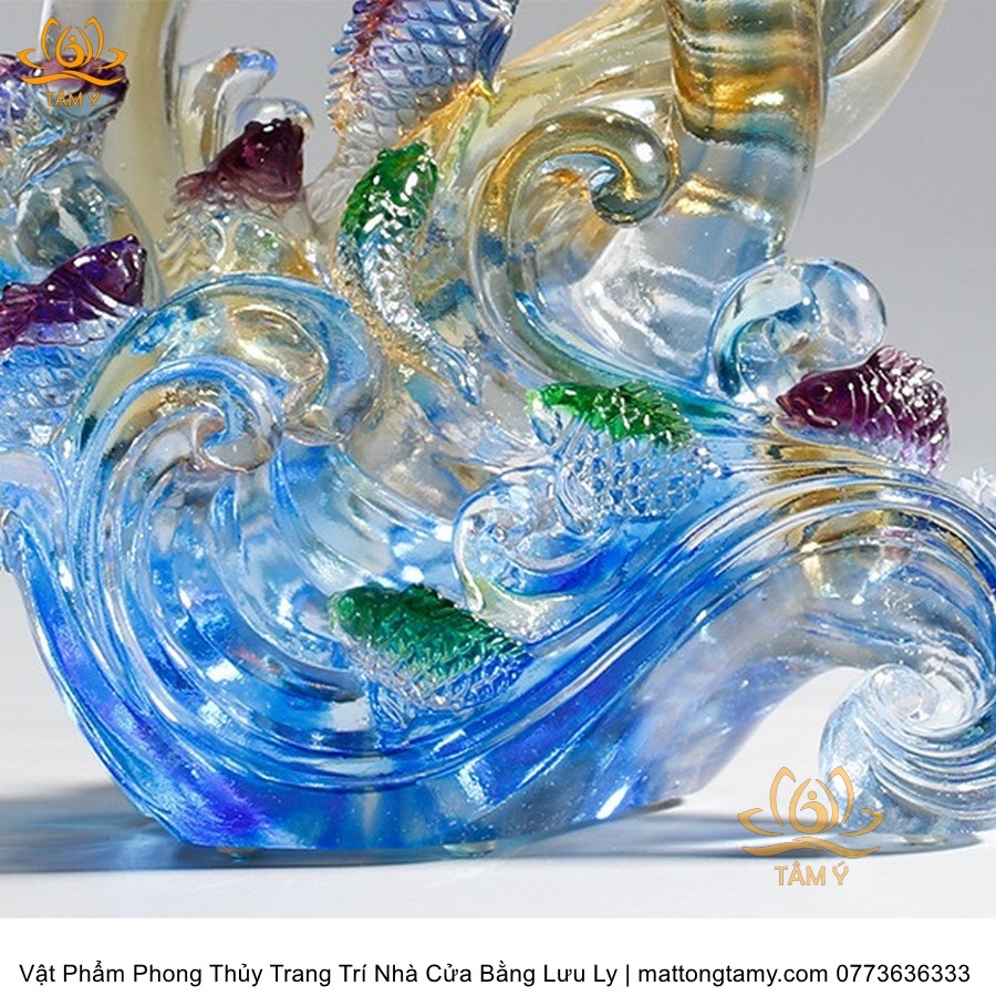 Tượng Cá Chép Hóa Rồng Vật Phẩm Phong Thủy Trang Trí Nhà Cửa Bằng Lưu Ly Cao Cấp DTT180