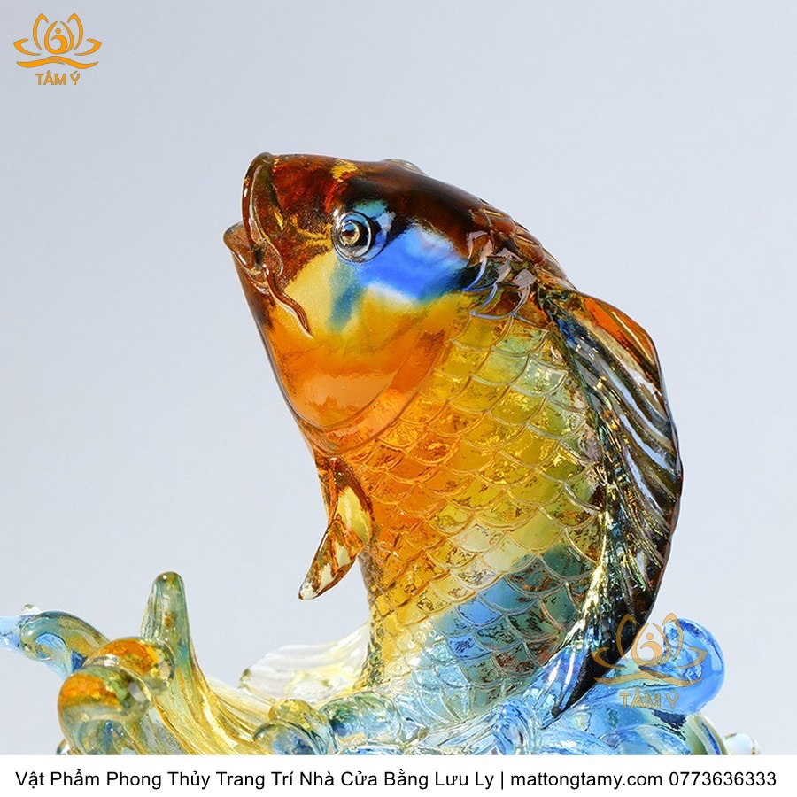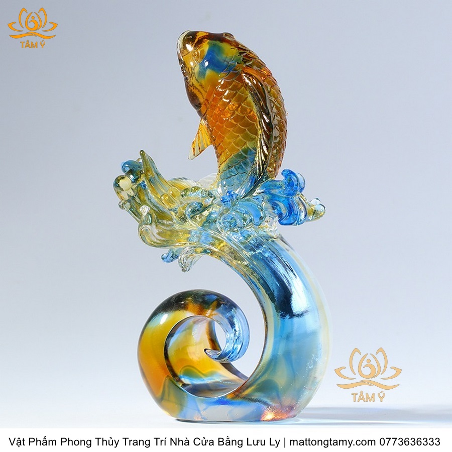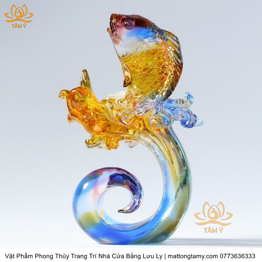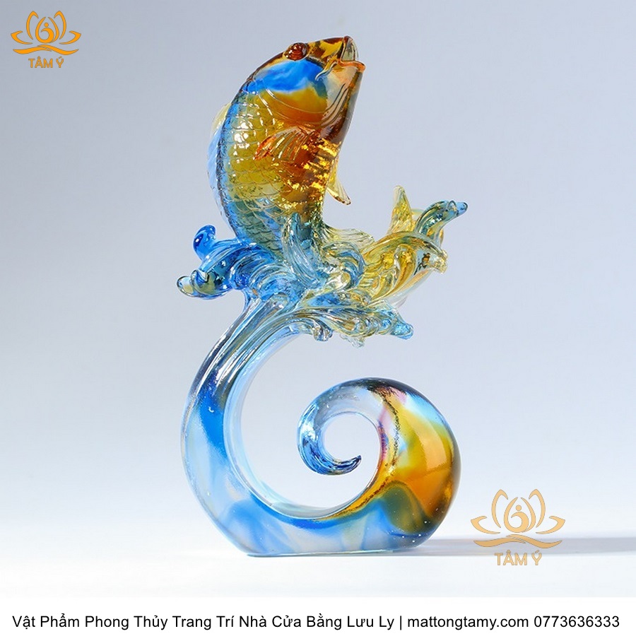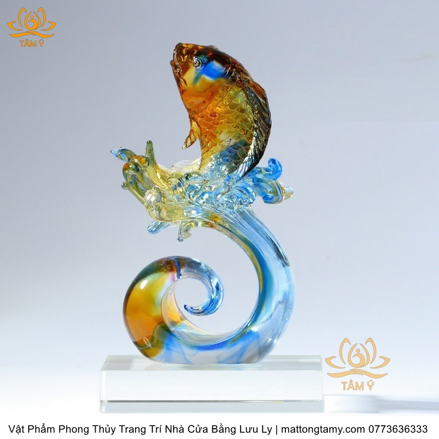 Tượng Cá Chép Vượt Sóng Bằng Lưu Ly Cao Cấp Vật Phẩm Phong Thủy Trang Trí Nhà Cửa DTT245