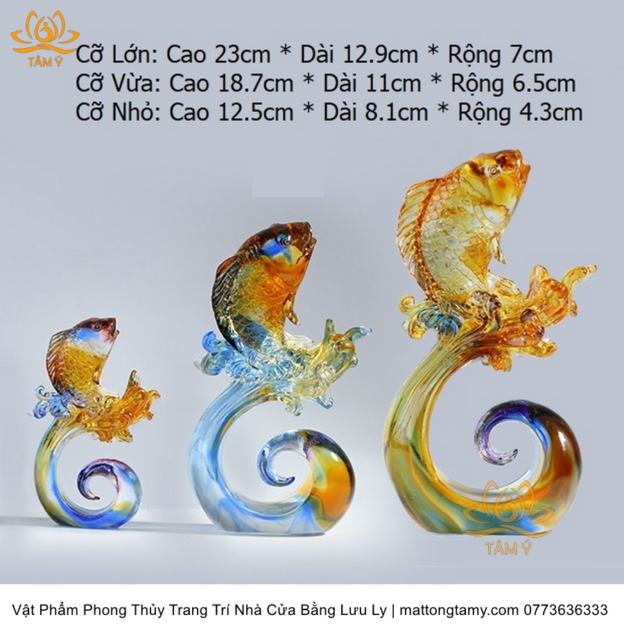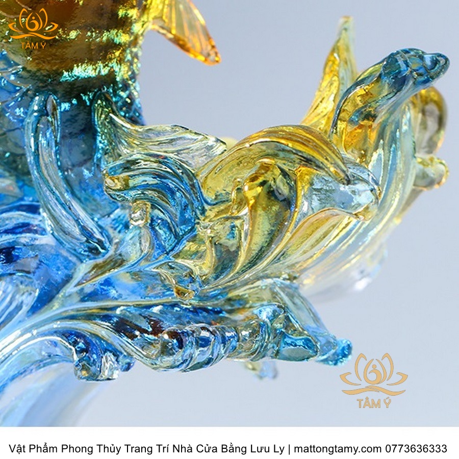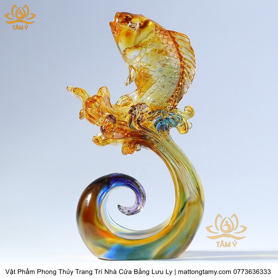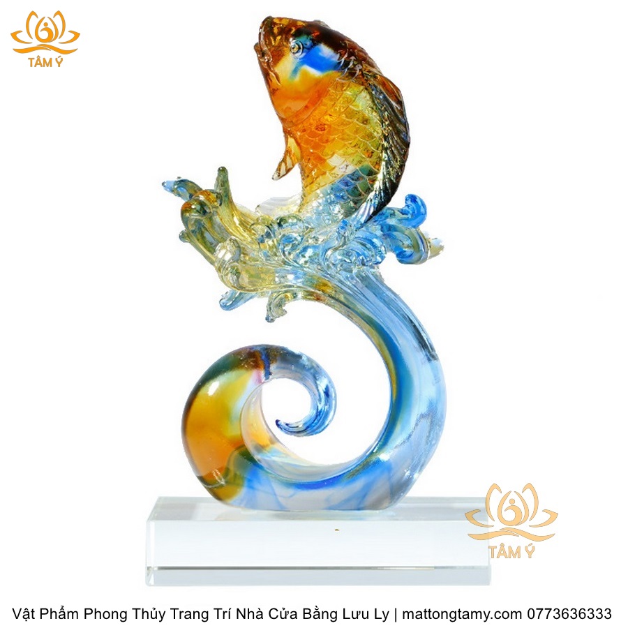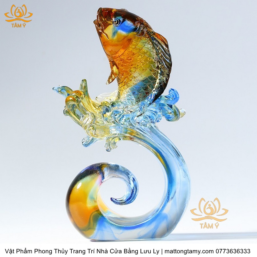 Tượng Cá Chép Vượt Sóng Bằng Lưu Ly Cao Cấp Vật Phẩm Phong Thủy Trang Trí Nhà Cửa DTT245