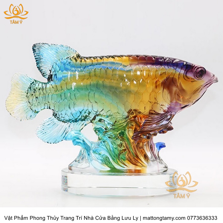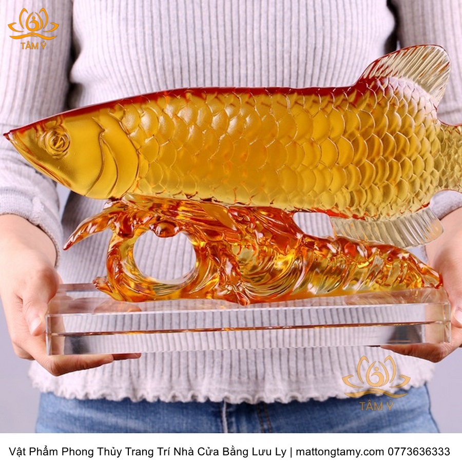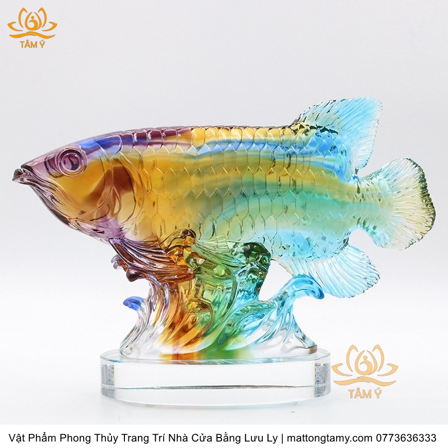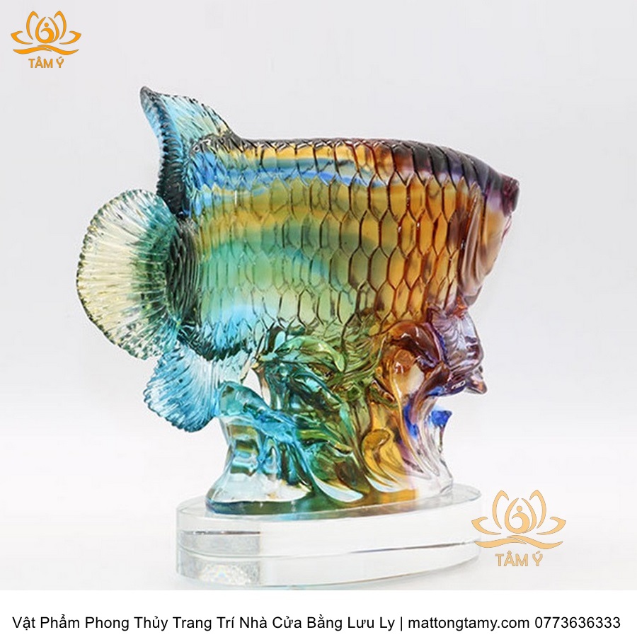 Tượng Cá Rồng Cao Quý Vật Phẩm Phong Thủy Trang Trí Nhà Cửa Bằng Lưu Ly Cao Cấp DTT48