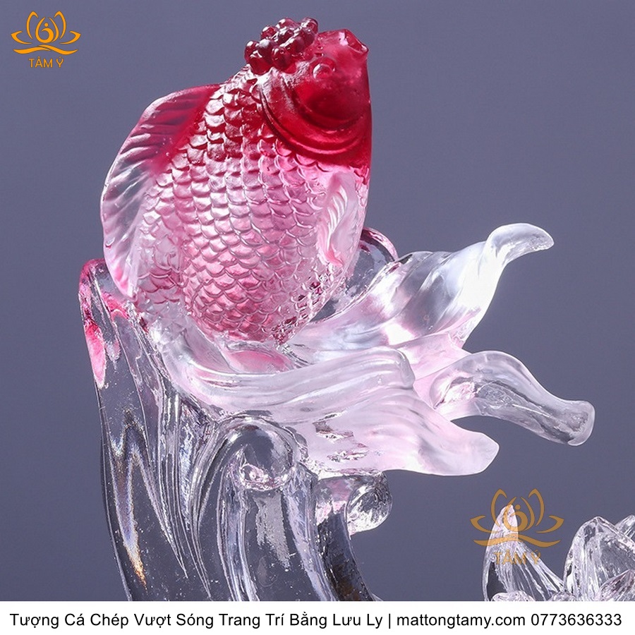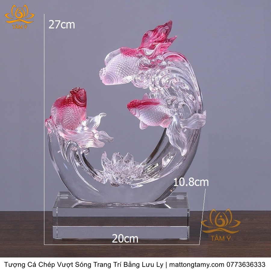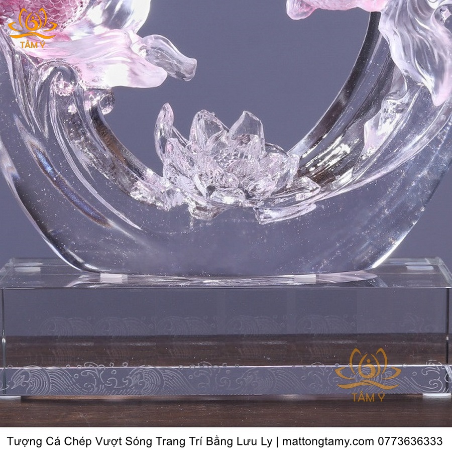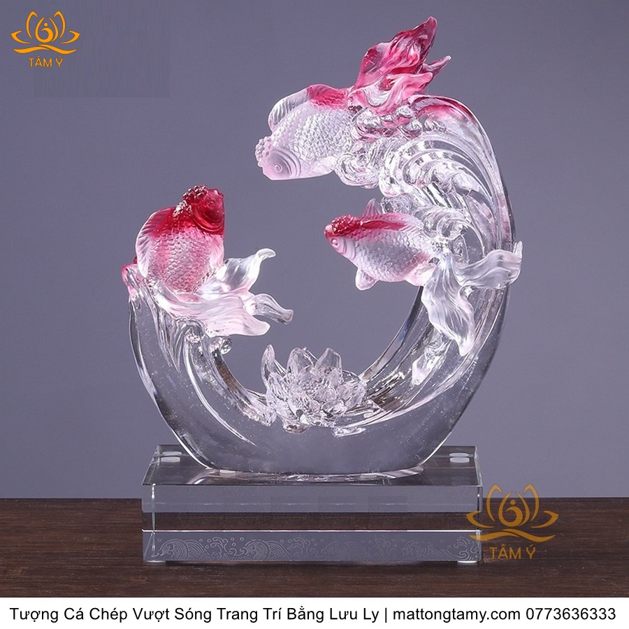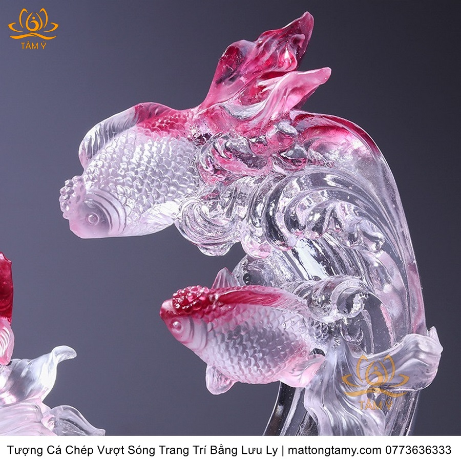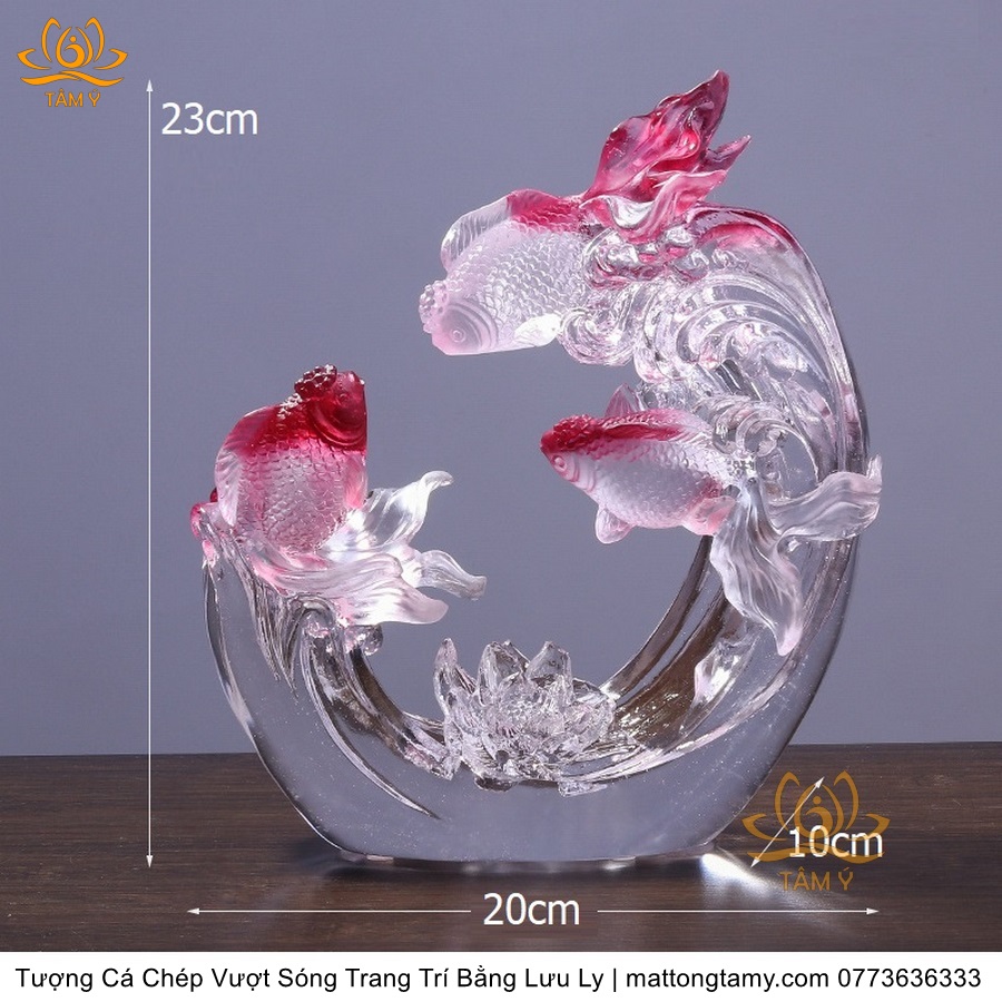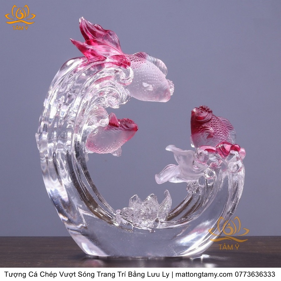 Tượng Cá Vàng Vượt Sóng Trang Trí Nhà Cửa Bằng Lưu Ly Cao Cấp DTT07