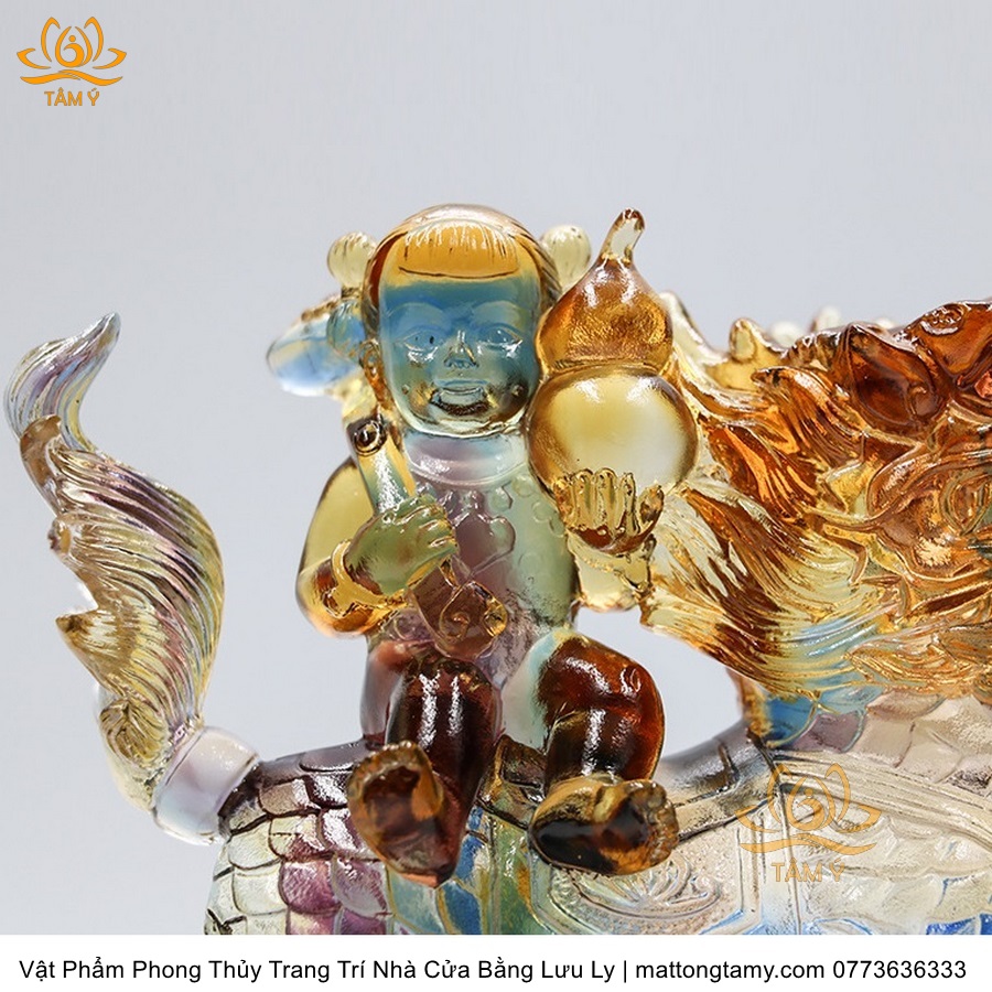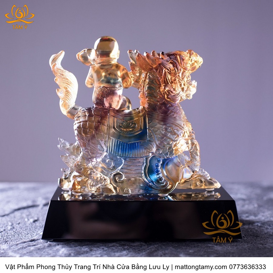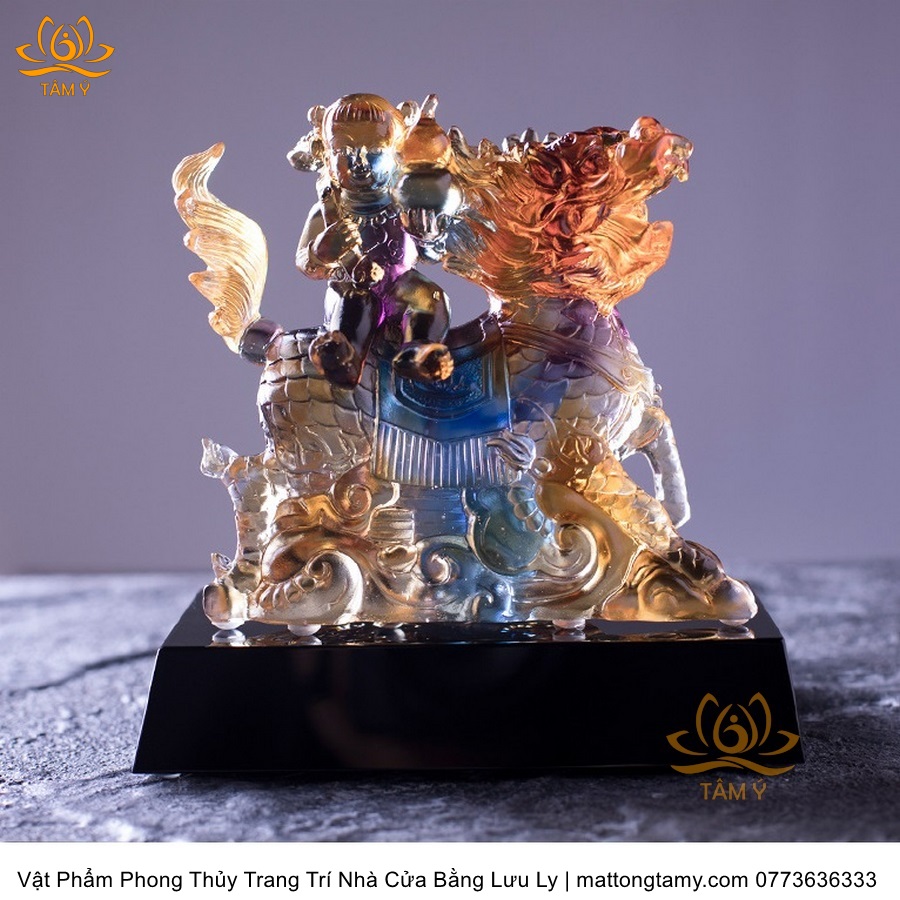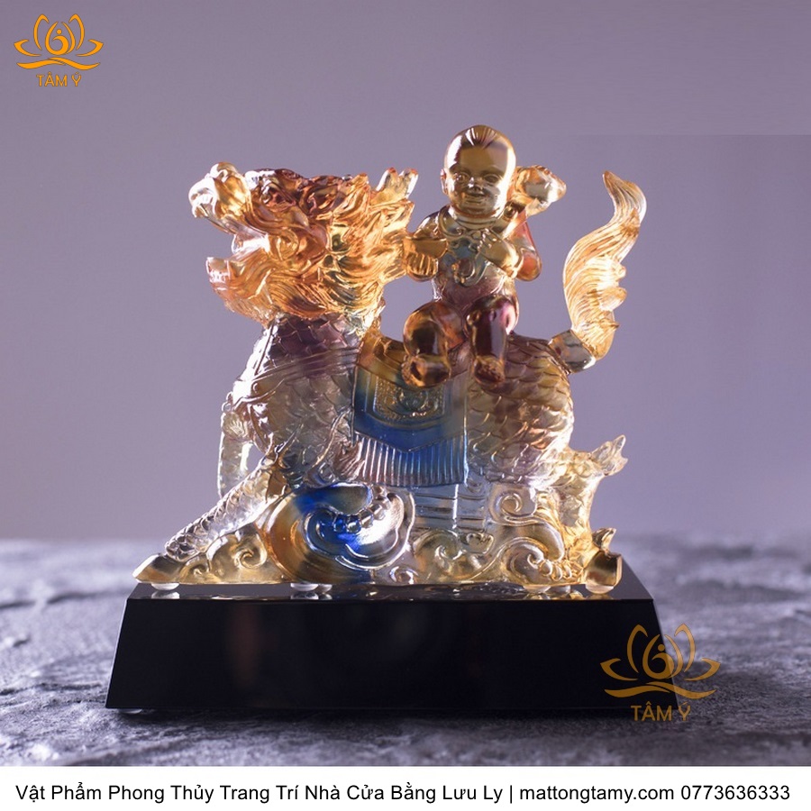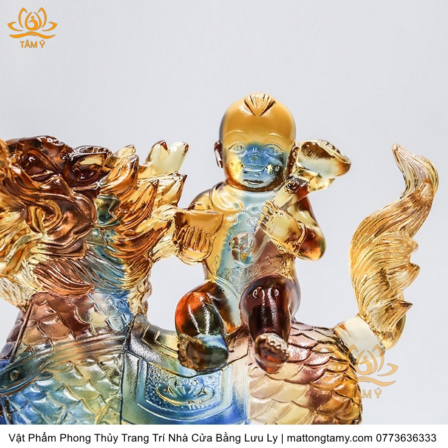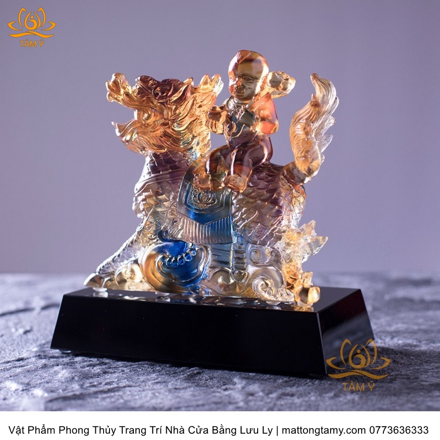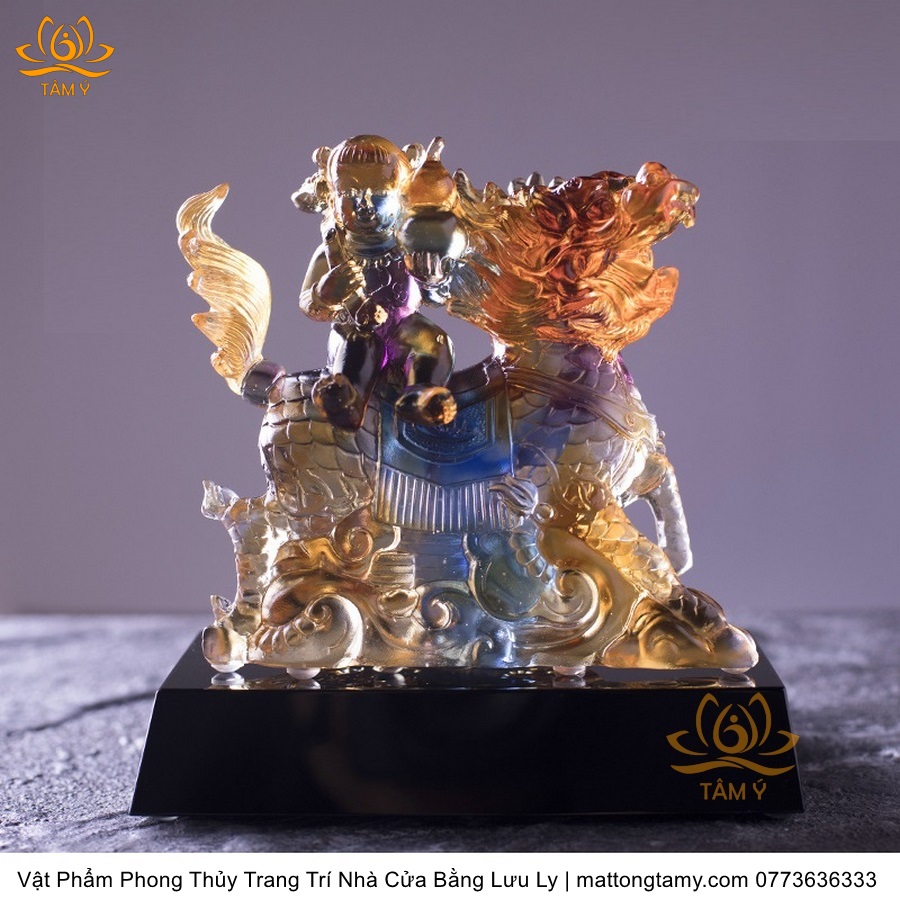 Tượng Chú Tiểu Cưỡi Kỳ Lân Ngũ Sắc Bằng Lưu Ly Cao Cấp Trang Trí Nhà Cửa, DTT108