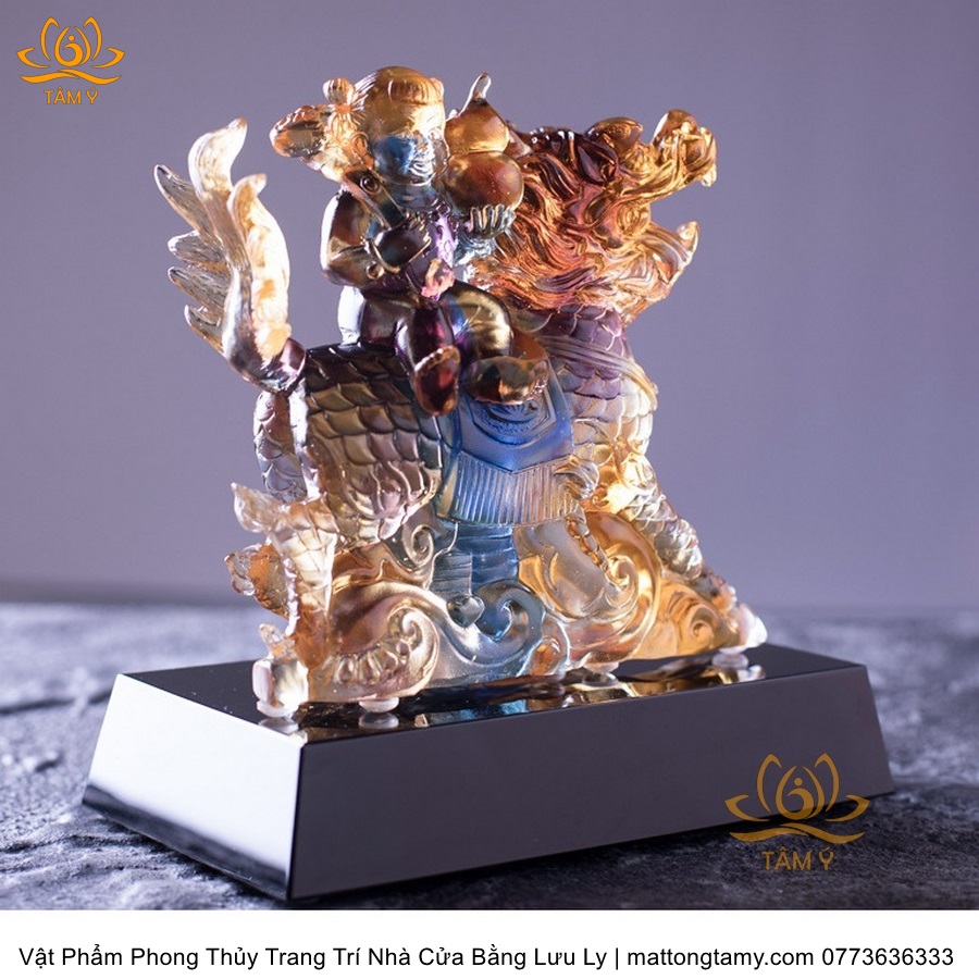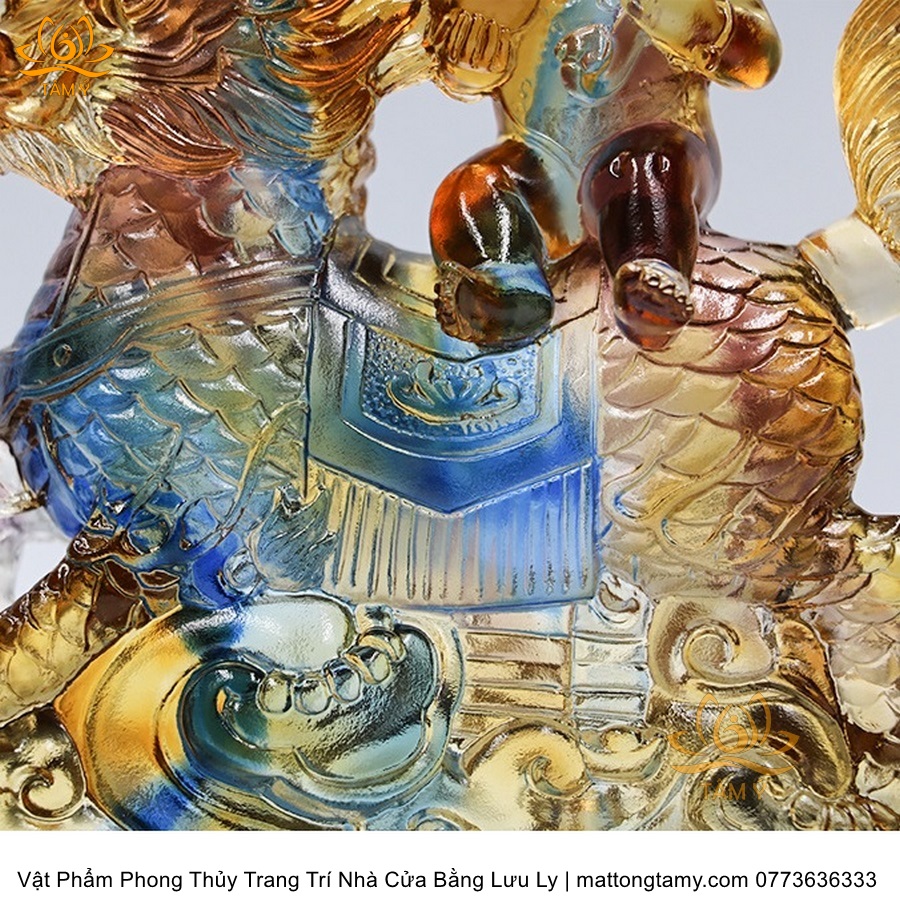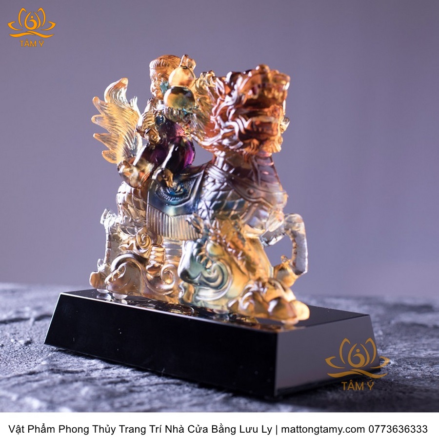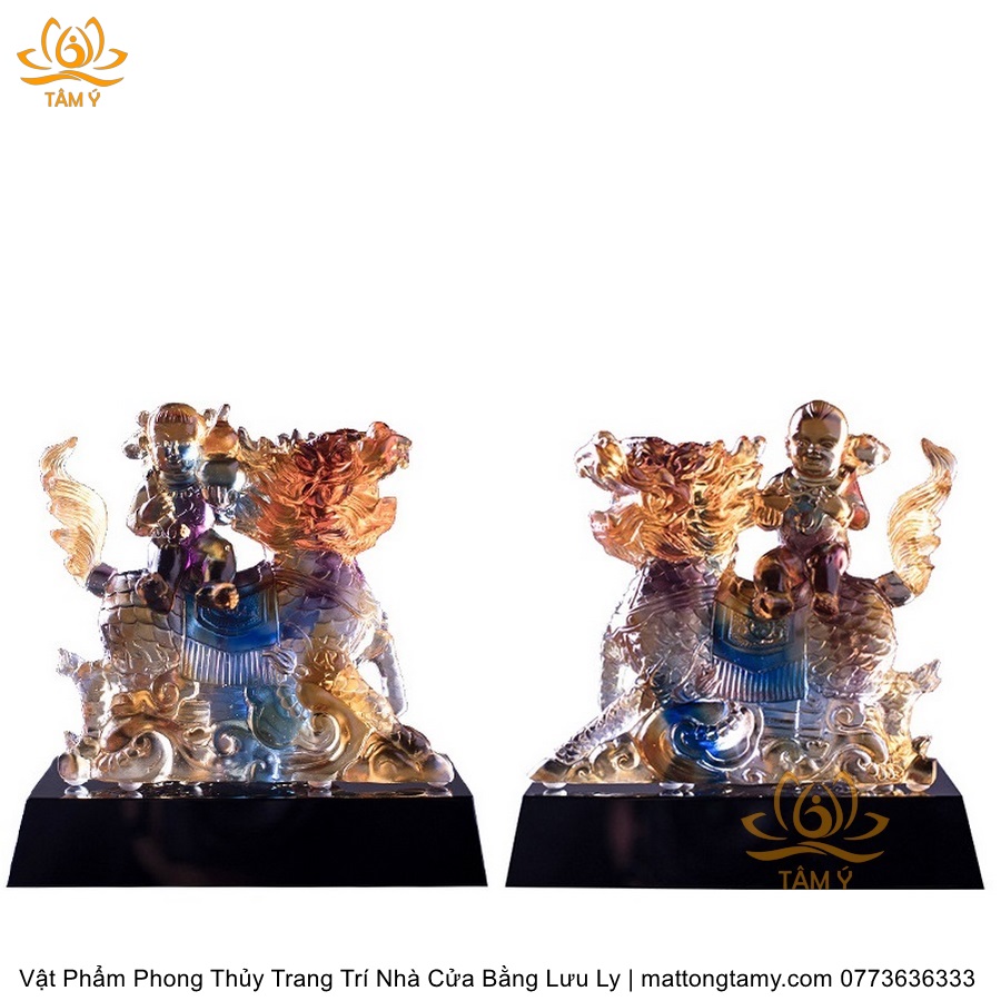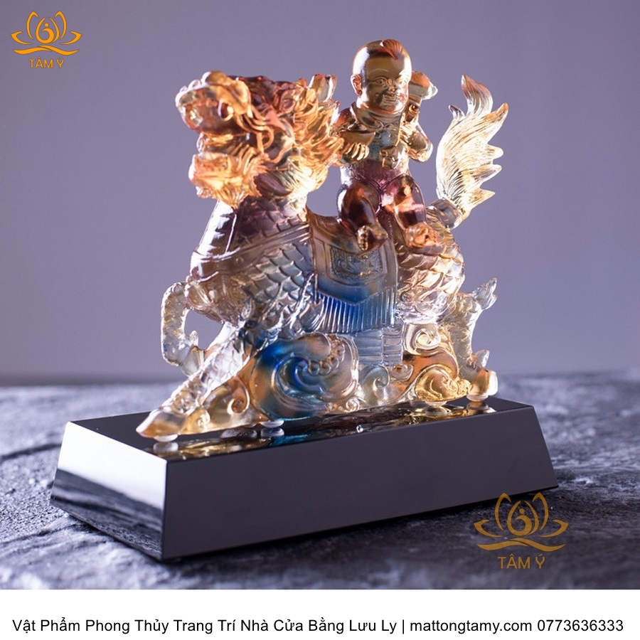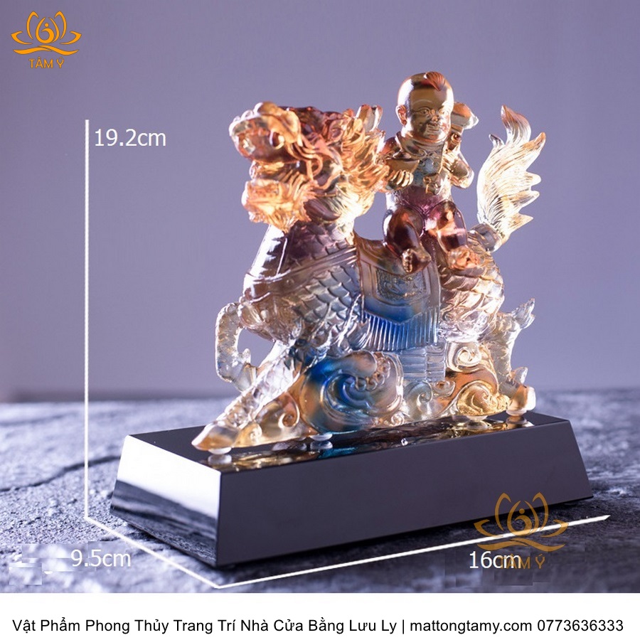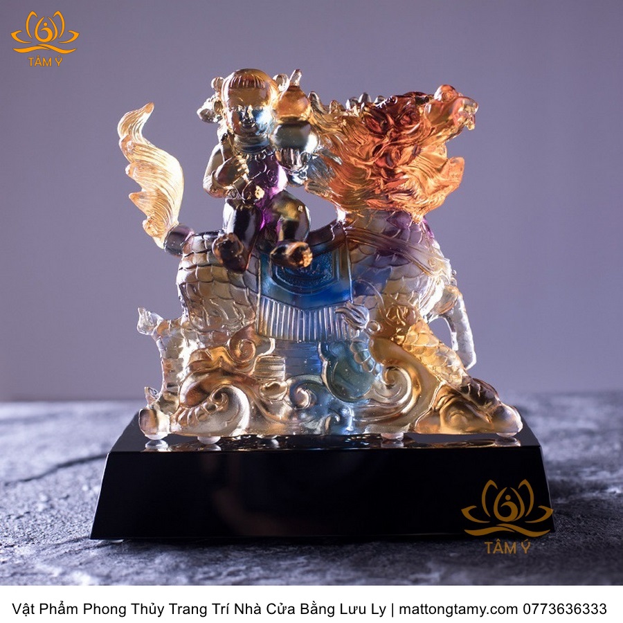 Tượng Chú Tiểu Cưỡi Kỳ Lân Ngũ Sắc Bằng Lưu Ly Cao Cấp Trang Trí Nhà Cửa, DTT108