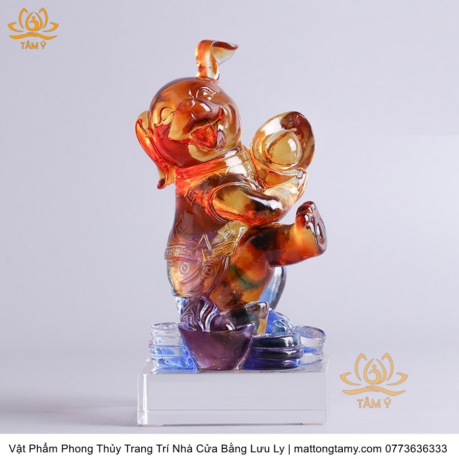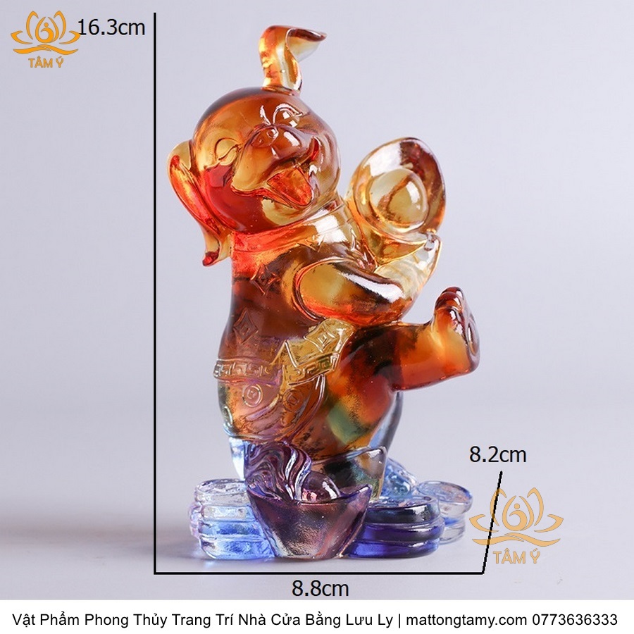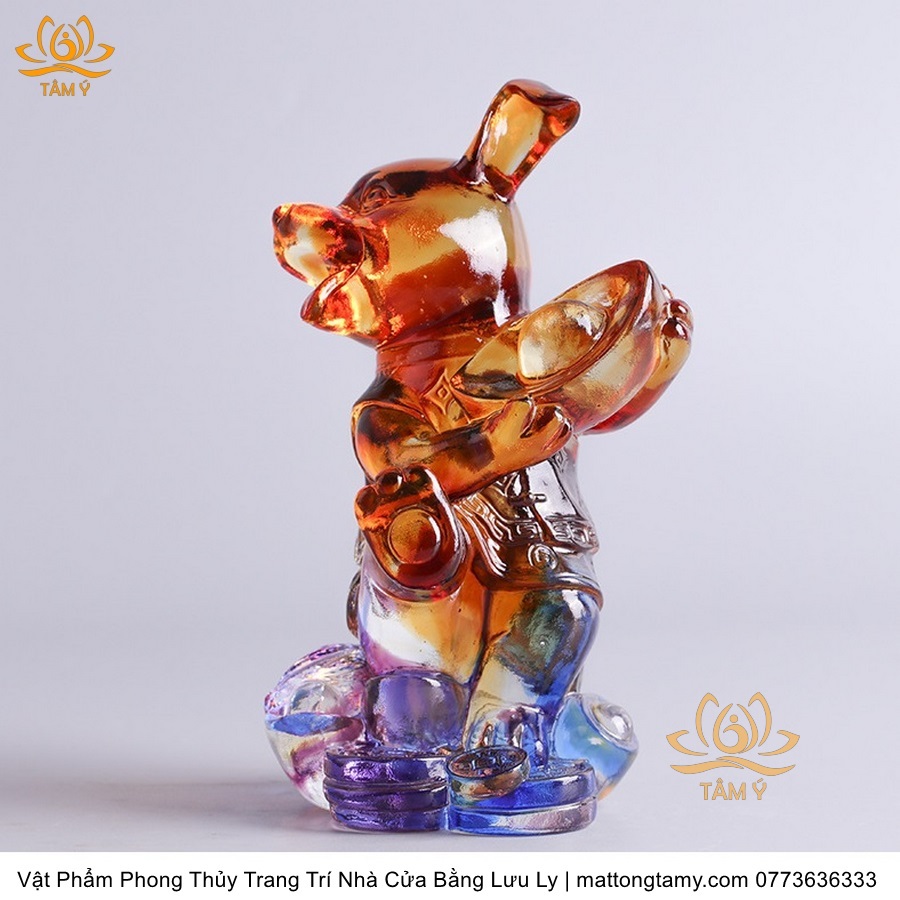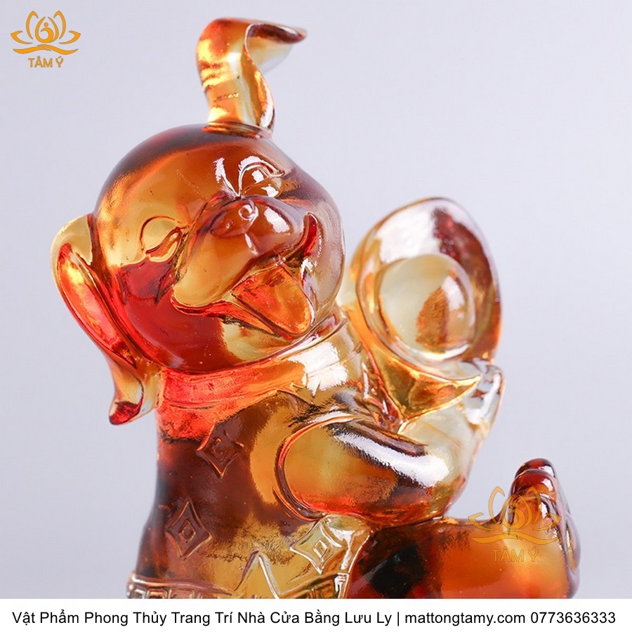 Tượng Con Chó(Tuất) Ôm Thỏi Vàng Bằng Lưu Ly Cao Cấp Tài Lộc May Mắn Vật Phẩm Phong Thủy Trang Trí Nhà Cửa, DTT150