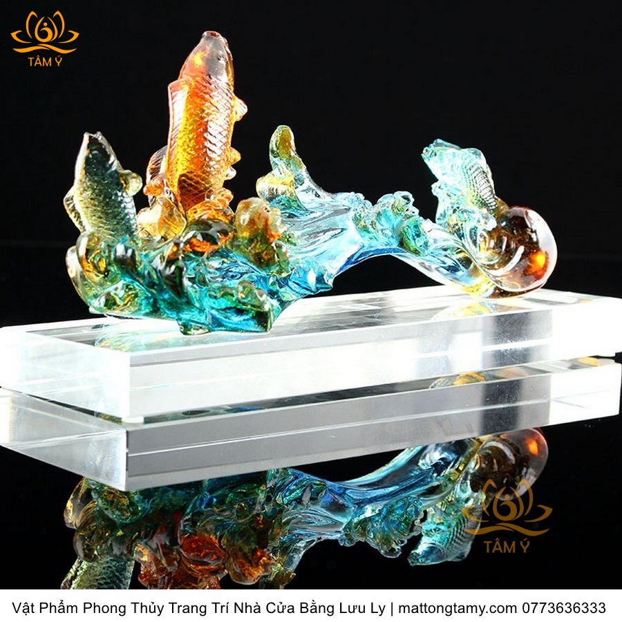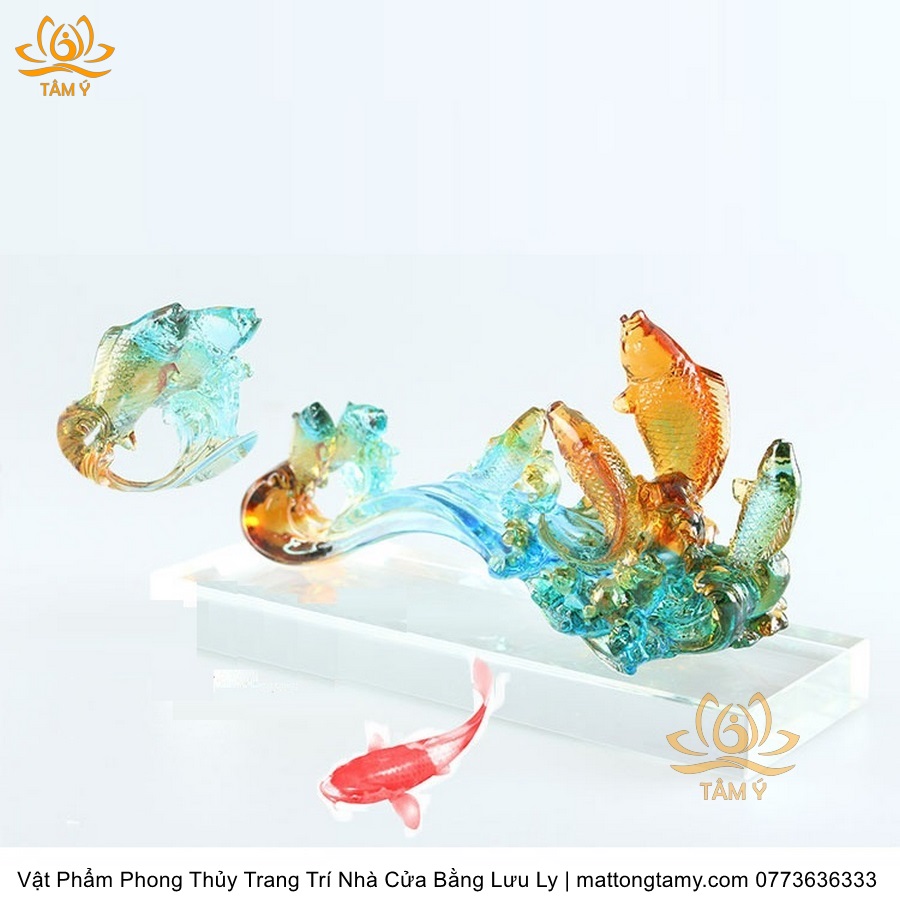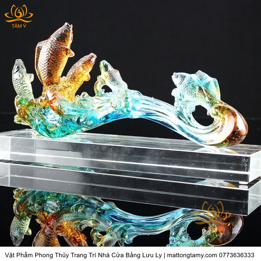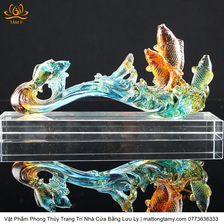 Tượng Đàn Cá Chép Dáng Gậy Như Ý Vật Phẩm Phong Thủy Trang Trí Nhà Cửa Bằng Lưu Ly Cao Cấp DTT185